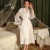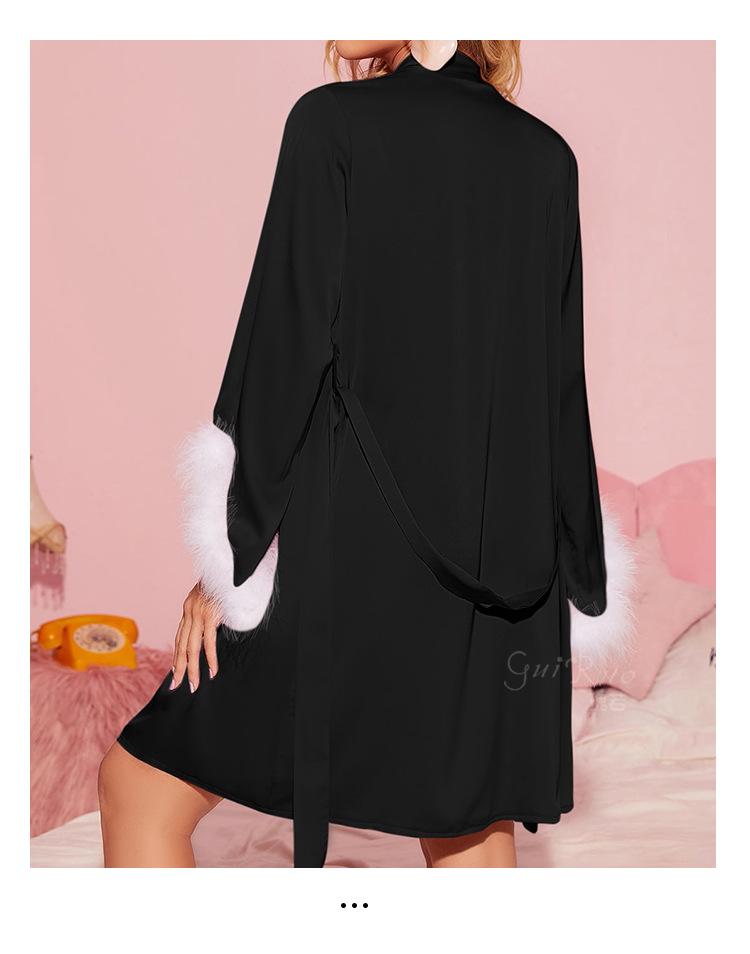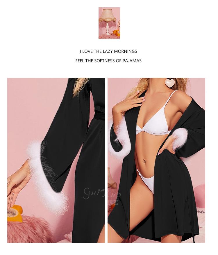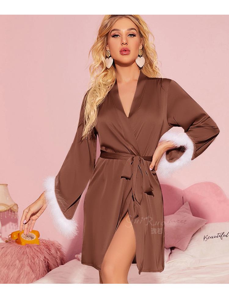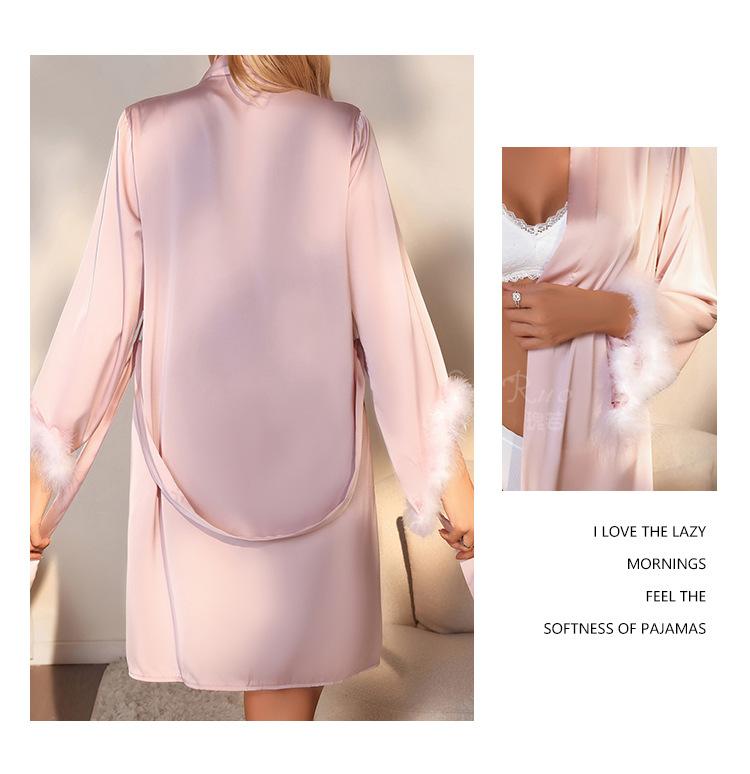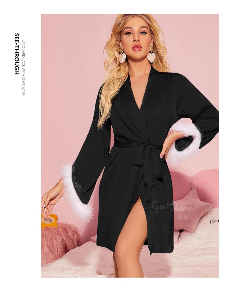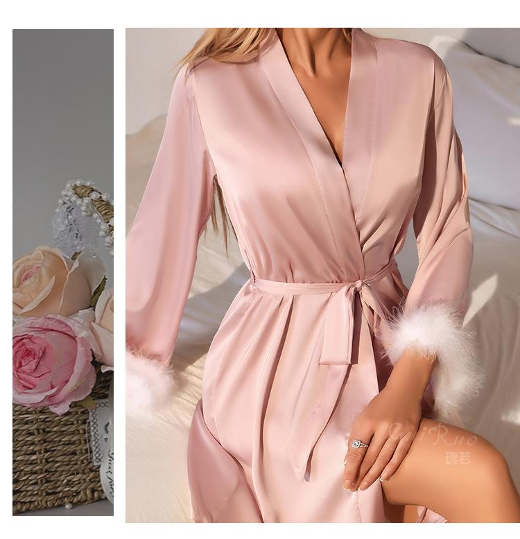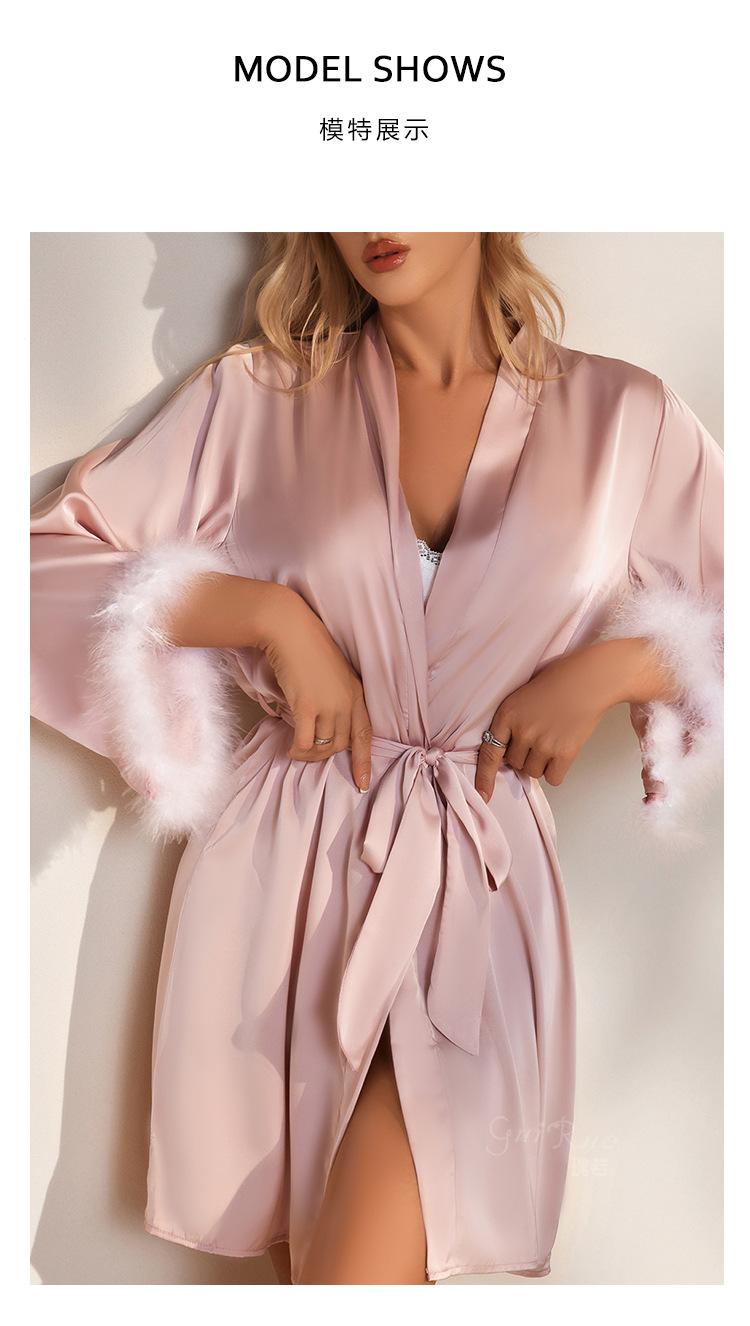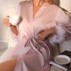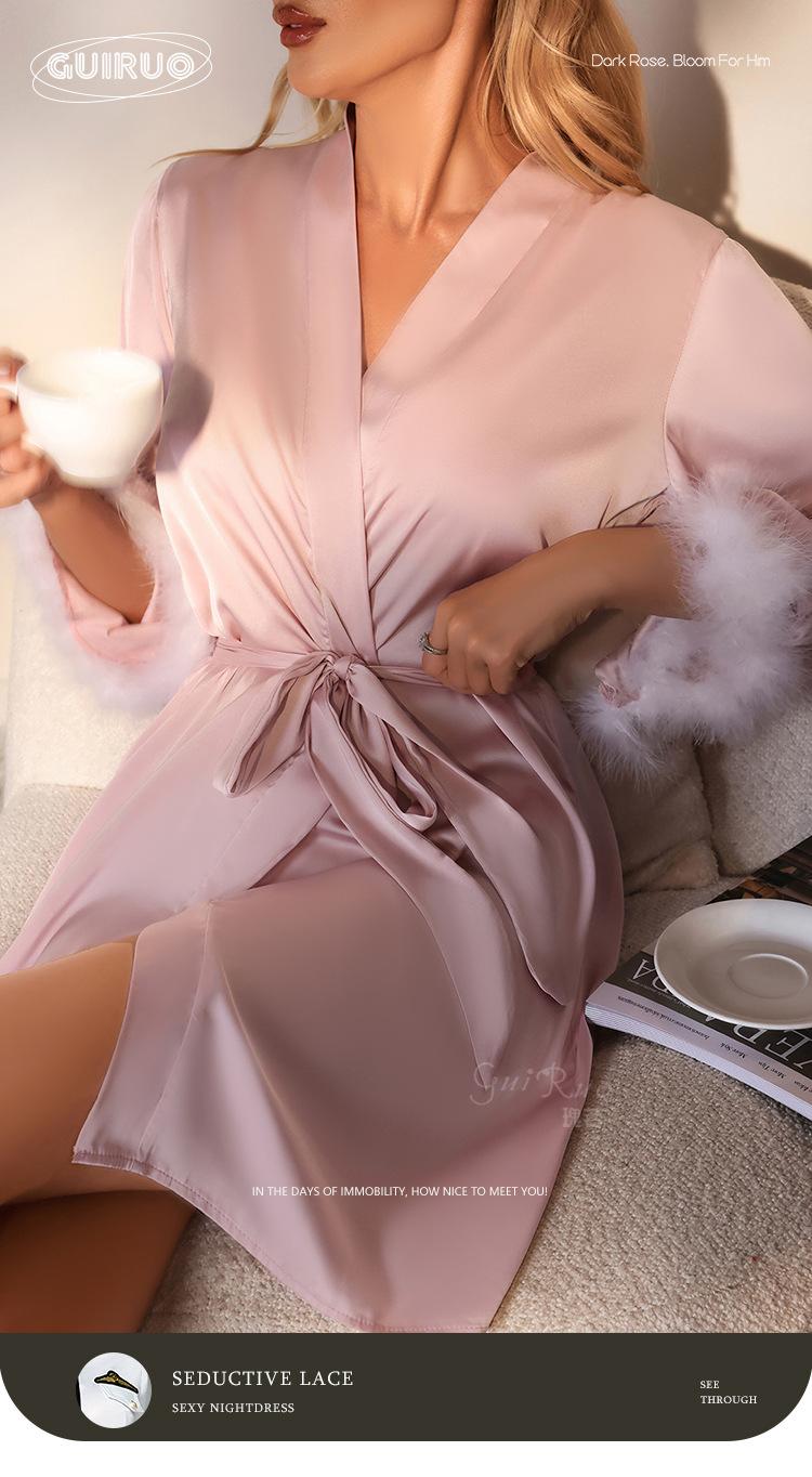 Ropa interior de comercio exterior para damas de Guiruo, bata sexy de seda pura con cordones y cinturón, ropa para el hogar, traje 9055