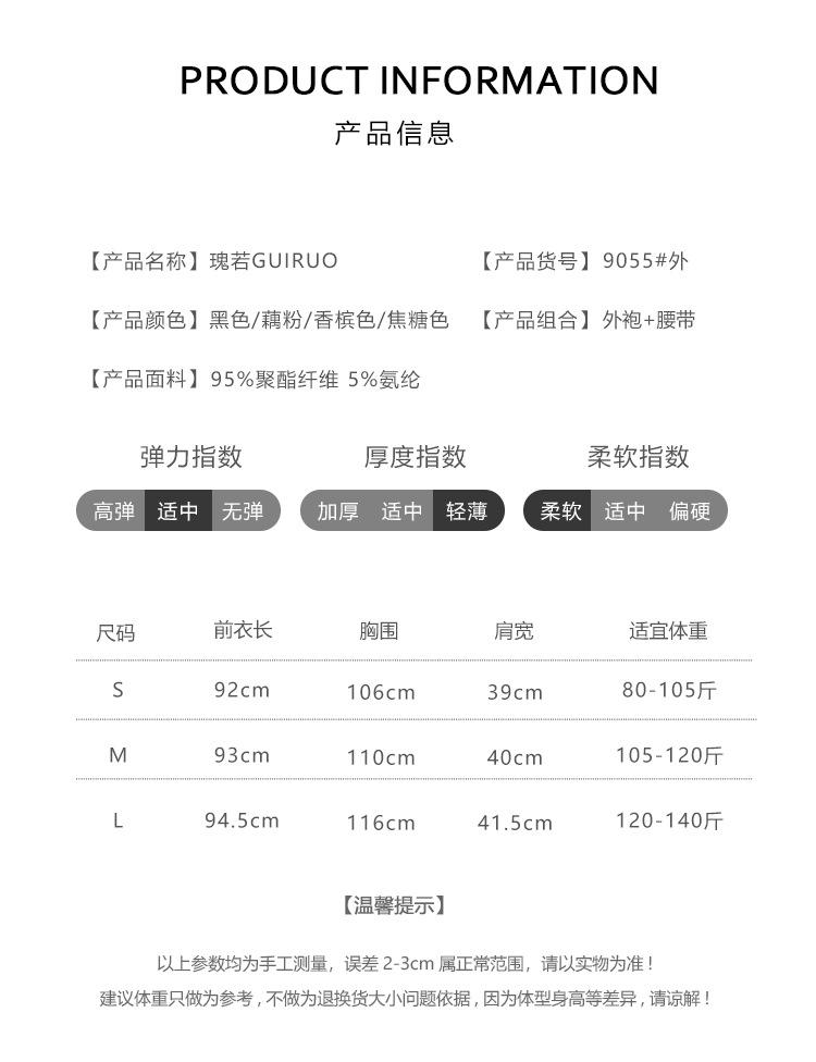 Black (robe belt), caramel (robe belt), Lotus root starch (robe belt), Champagne (robe belt)