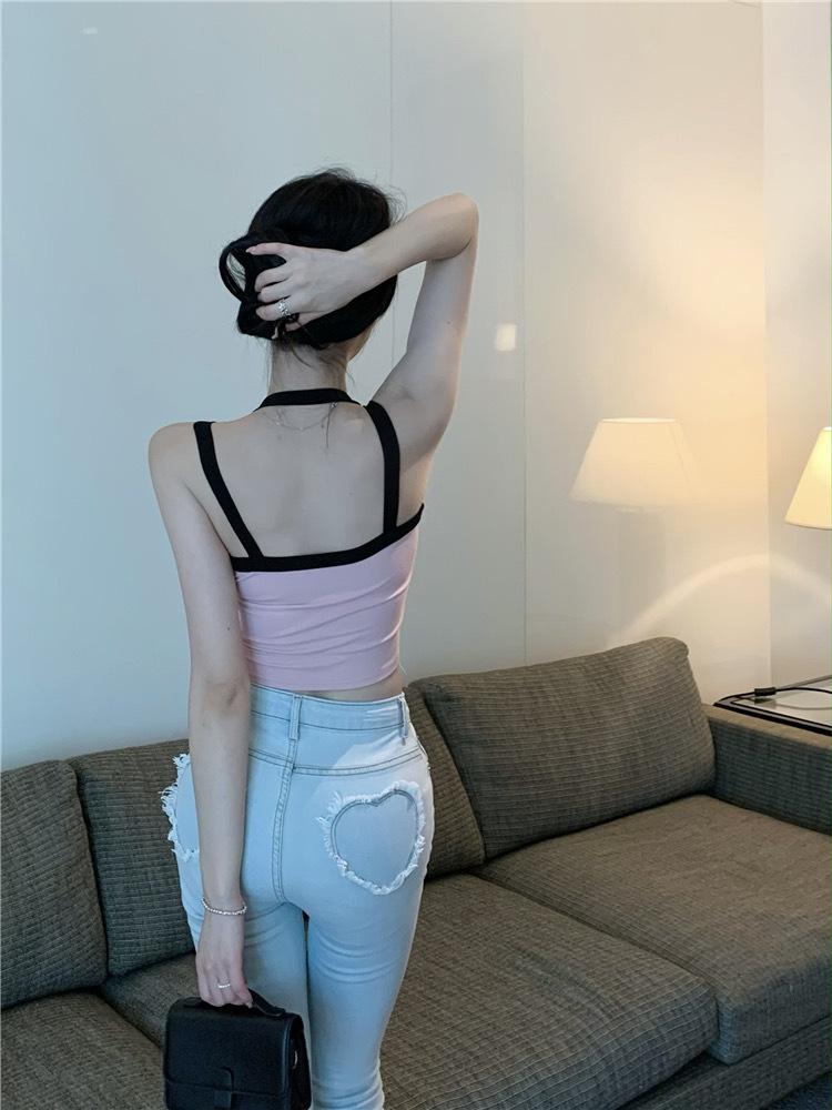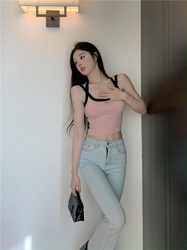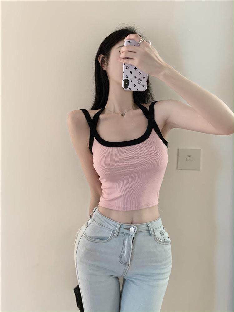 Camisola de verano para mujer, sexy, corta, con tirantes finos y espalda descubierta, con colores dulces y picantes