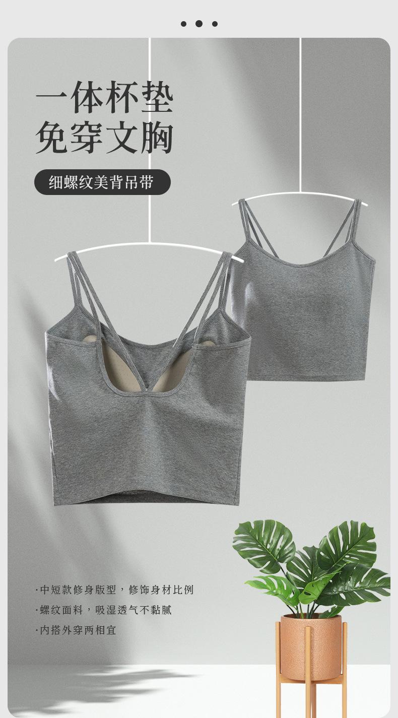 Chaleco de Verano Delgado con Espalda Hermosa para Mujer para Usar Afuera, Interior Acanalado de Algodón con Tirantes Finos para Hombro Fijos con Cabestrillo de Copa de Pecho Integrada