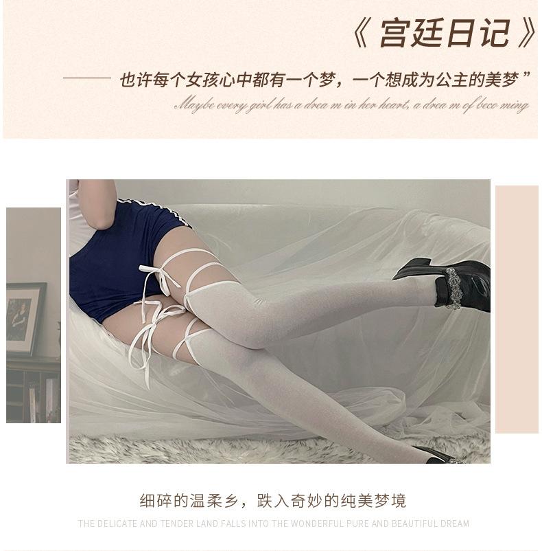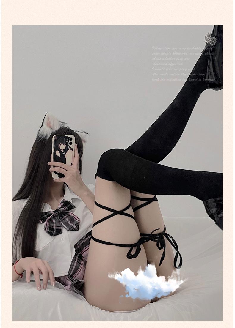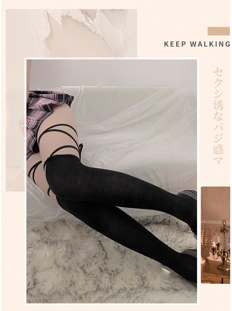 Calcetines largos hasta la rodilla con tiras cruzadas, estilo japonés, para mujer, estilo Lolita, de algodón, hasta la rodilla.