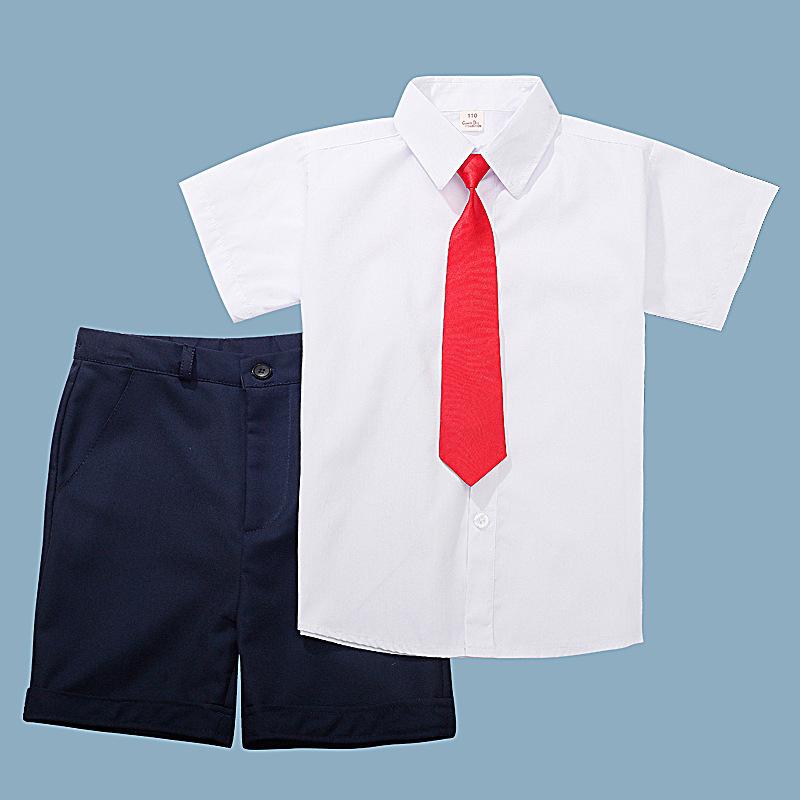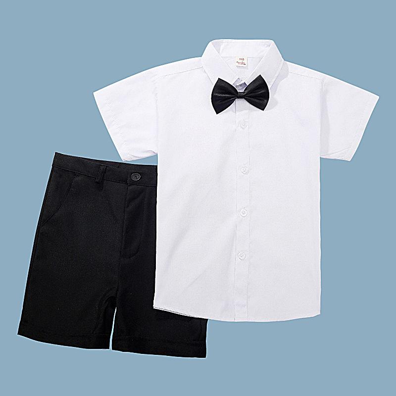 Traje de recitación infantil con pajarita de manga corta y camisa blanca, uniforme escolar, ropa de actuación
