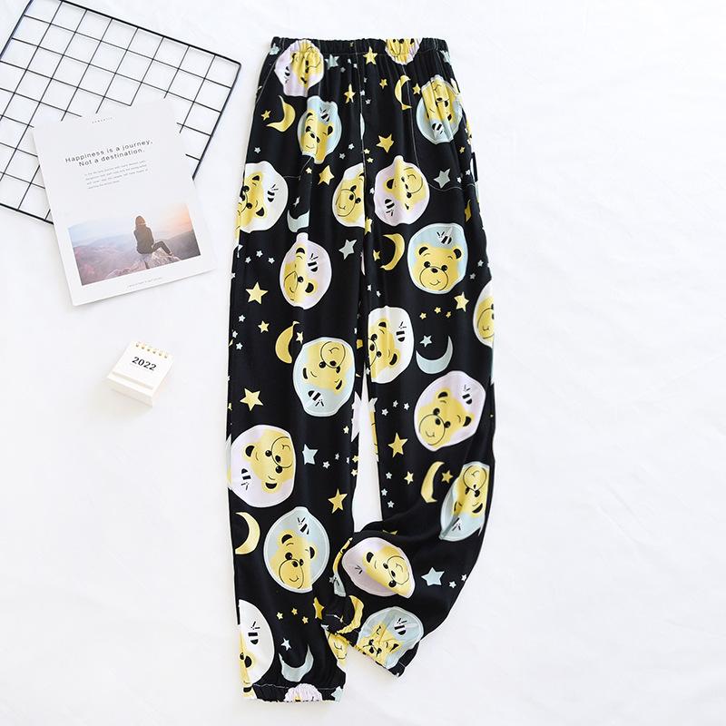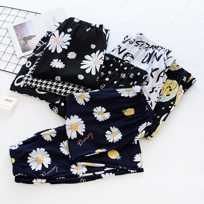 Pantalones de verano de algodón y seda para mujer, bombachos finos, antimosquitos, para playa, pijamas holgados informales de algodón artificial