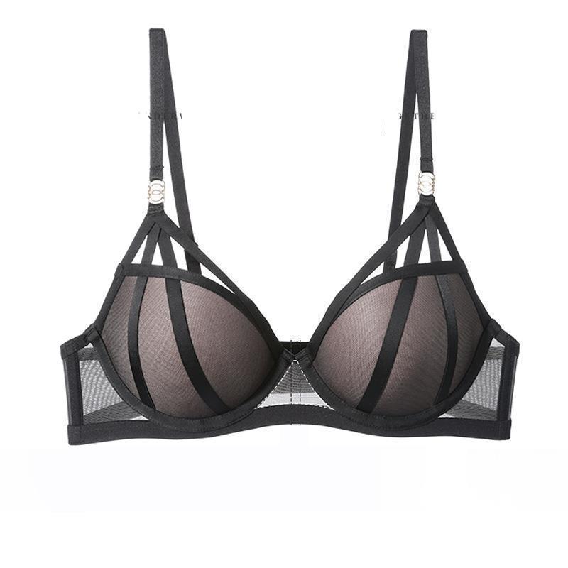 Sujetador transparente ultrafino de encaje sexy sin esponja, ropa interior para mujer, conjunto de sujetador pequeño con pechos grandes