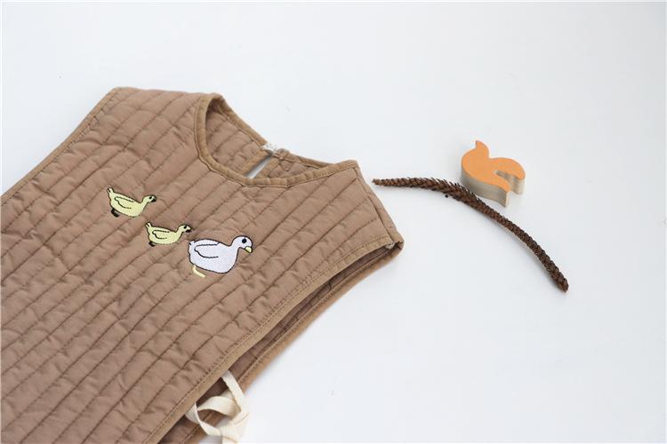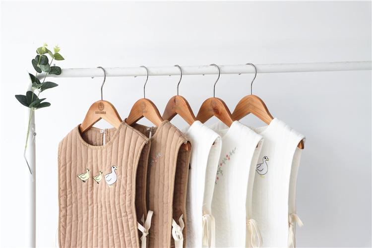 Fábrica de ropa infantil de marca japonesa y coreana, chaleco bordado de primavera para bebés, saco de dormir para niños, chaleco exterior para bebés, niños y niñas.