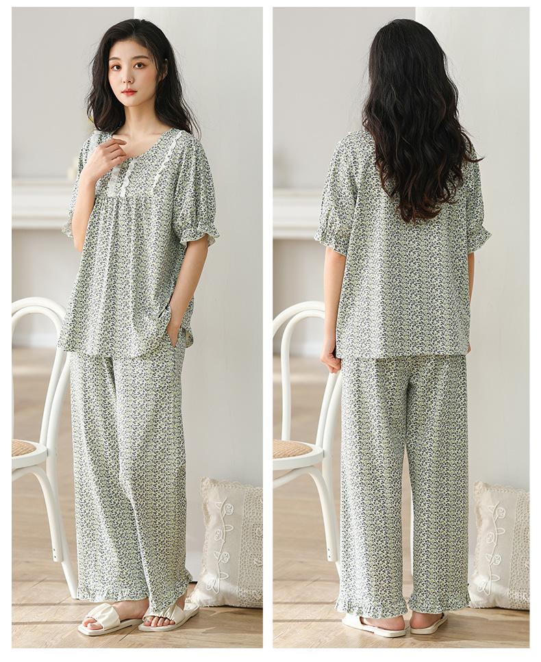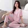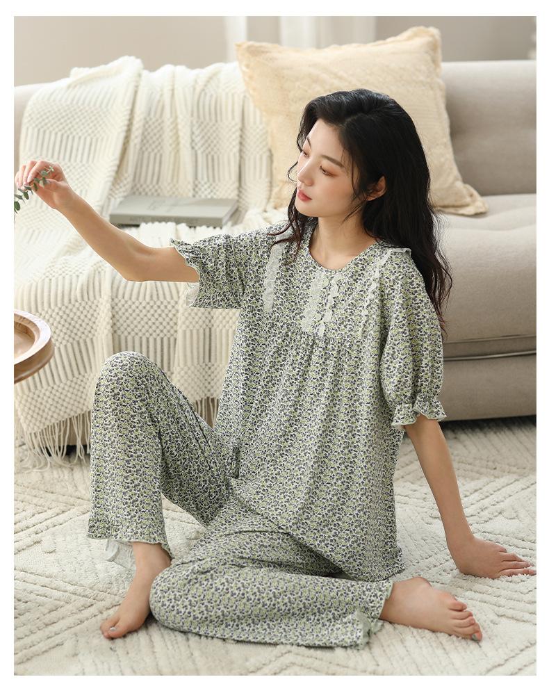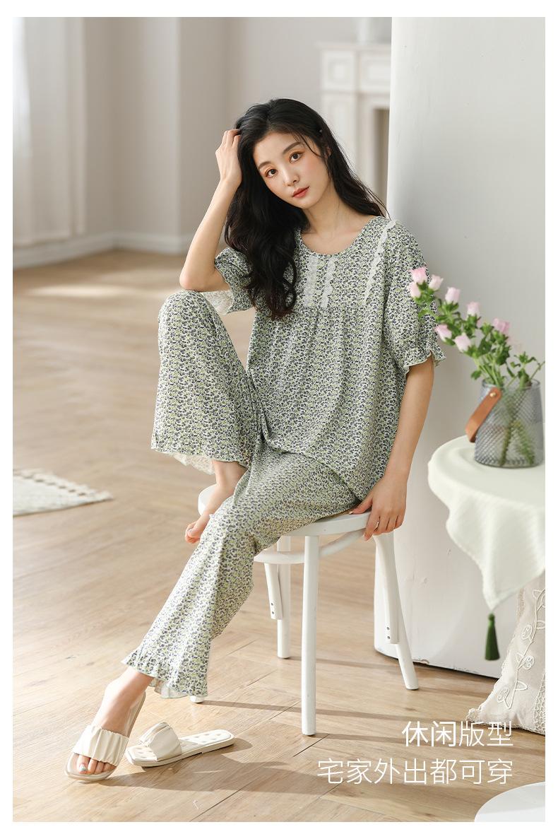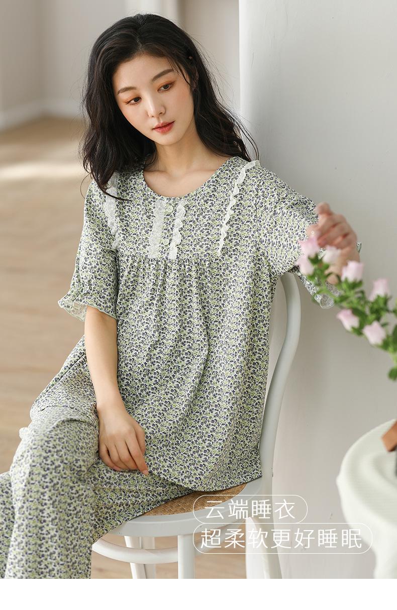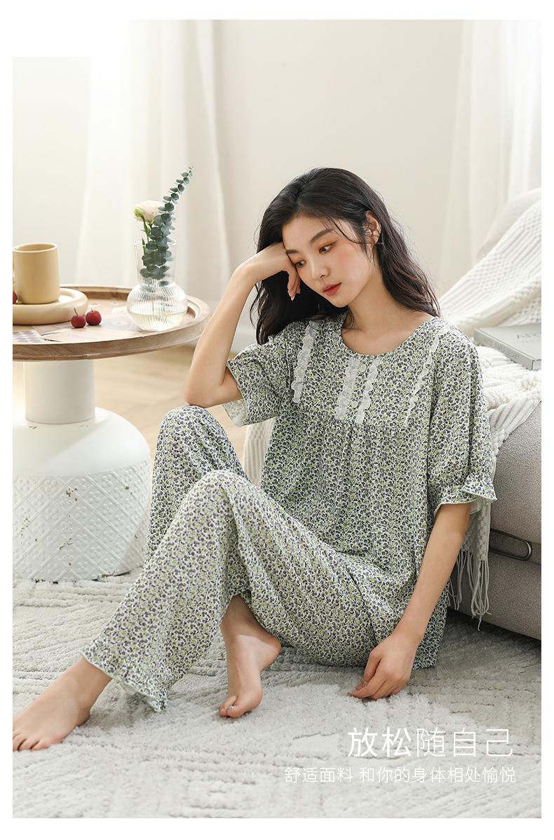 Pijama de algodón de verano para mujer, pantalón de manga corta, informal, cómodo y agradable para la piel, ropa de exterior para el hogar para madres de mediana edad.
