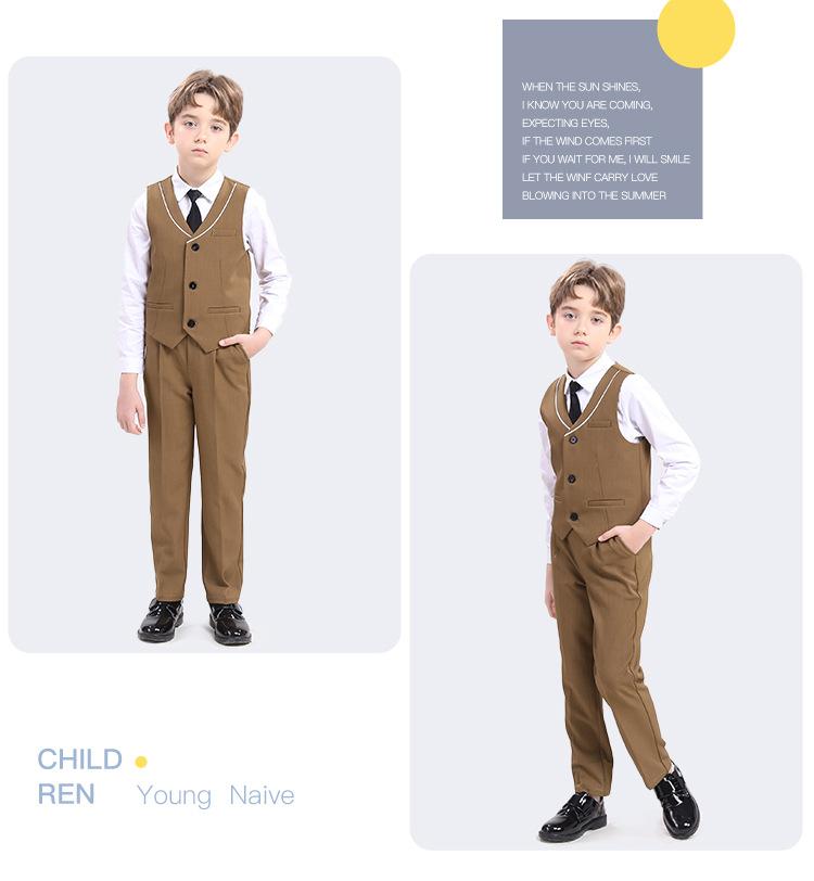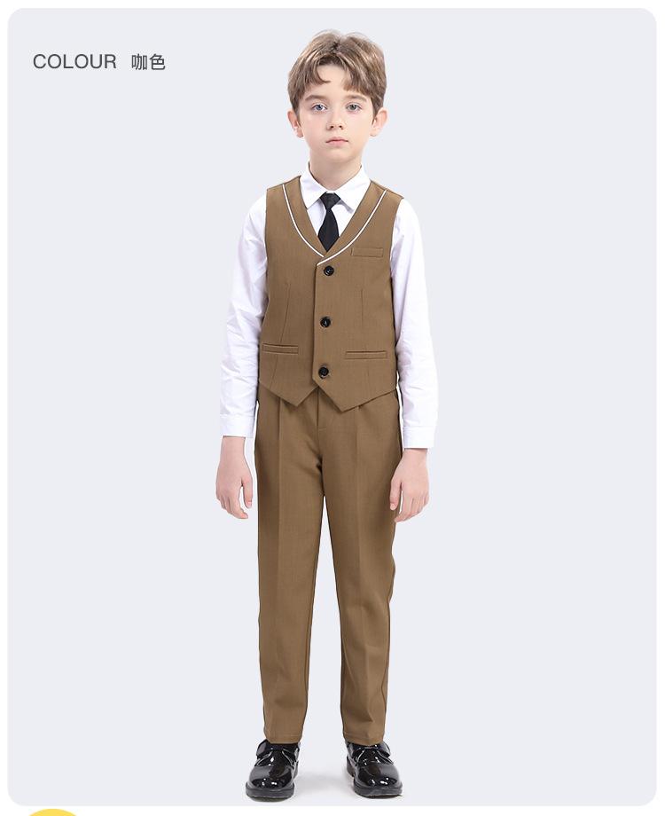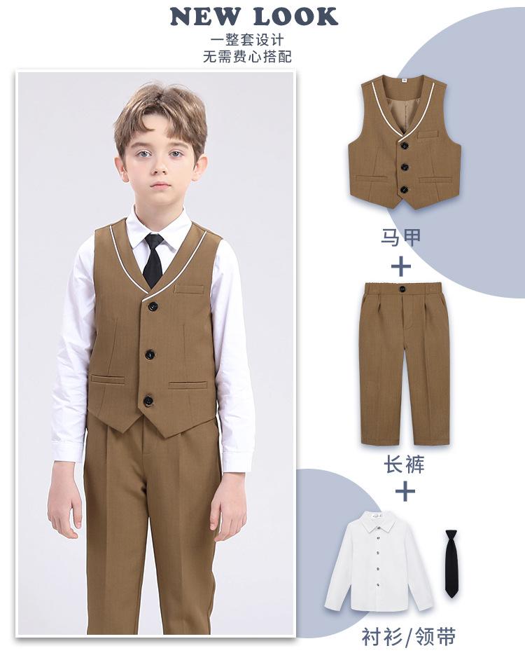 brown 3-piece set (waistcoat, trousers and tie), brown 4-piece (short-sleeved vest pants tie), brown 4-piece s...