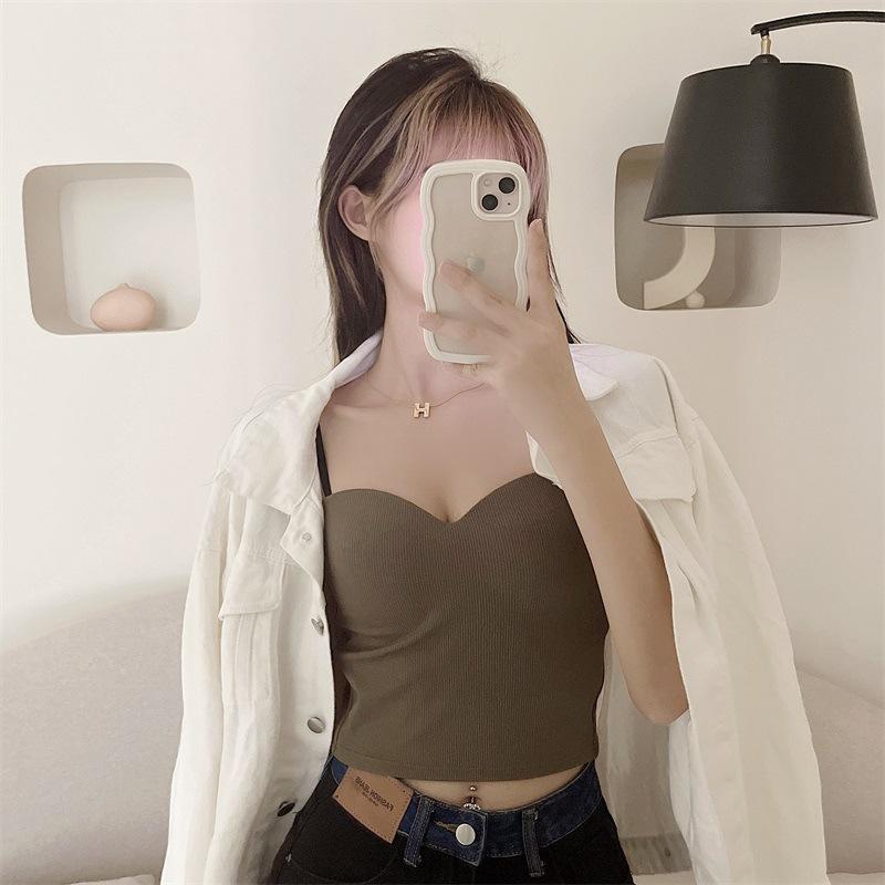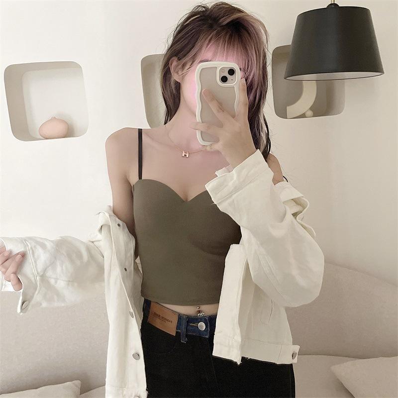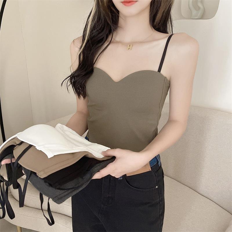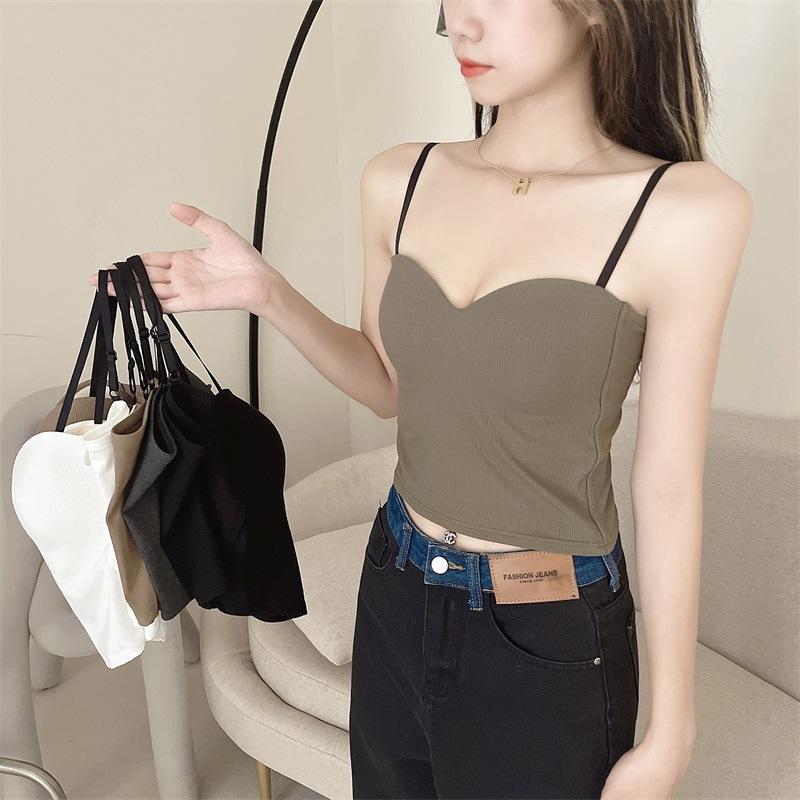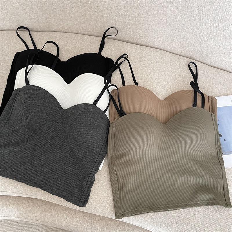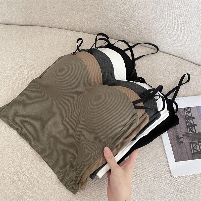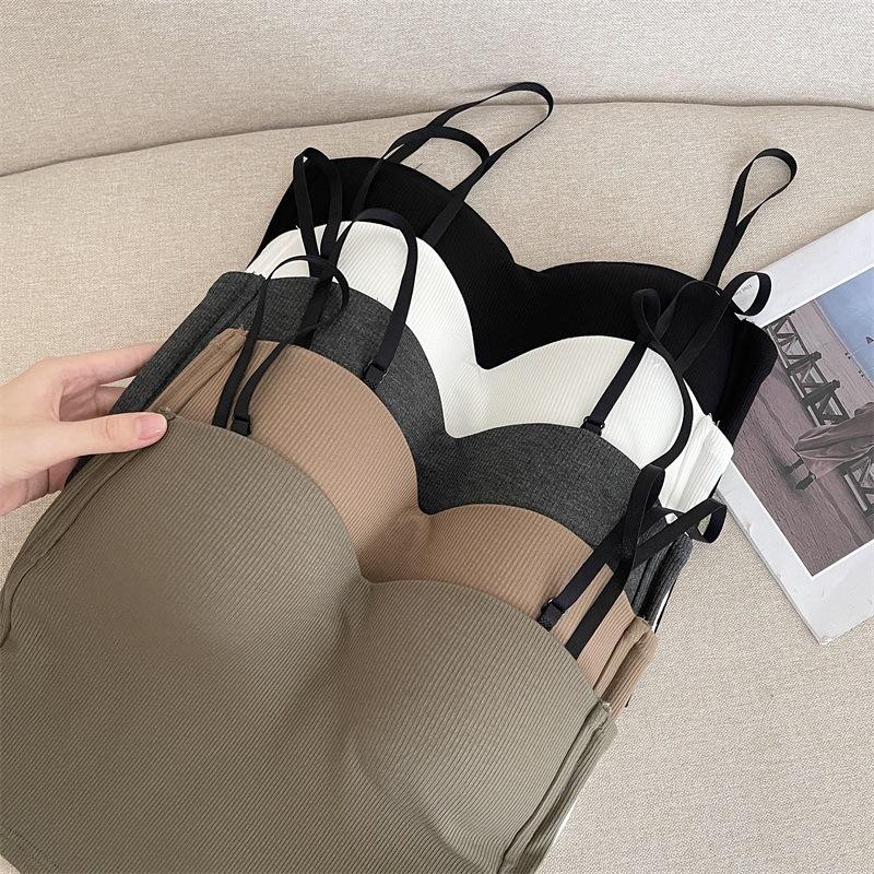 Camisola de color sólido para mujer, ajustable, de una pieza, con almohadilla fija en el pecho, ropa interior cómoda, prenda exterior que combina con todo.