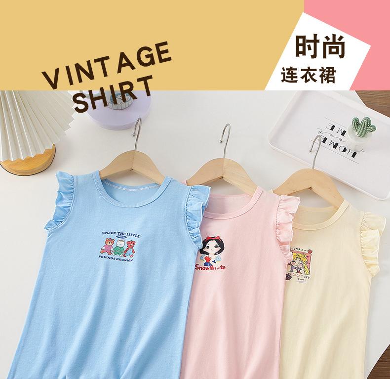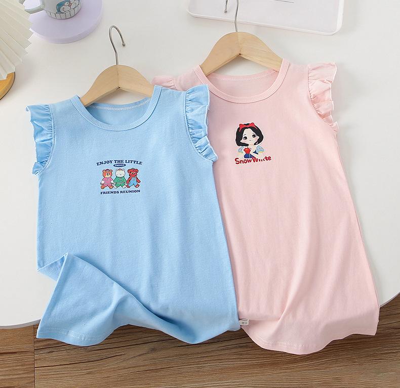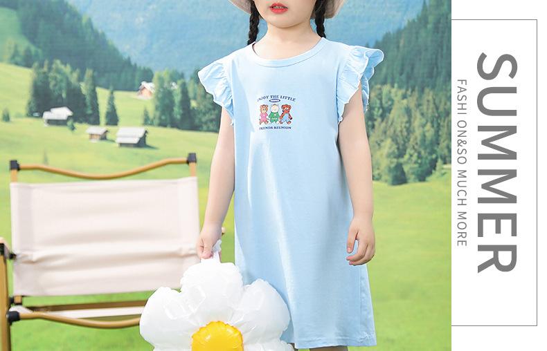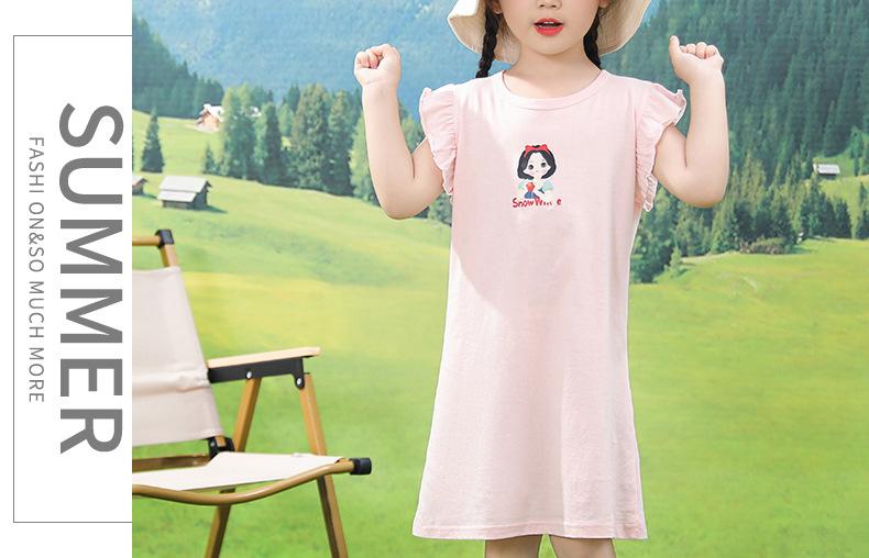 Vestido de Verano para Niñas Nuevo Estilo Ropa para Niños Falda de Manga Corta para Niños Vestido Camiseta Larga de Verano para Niña 2025