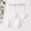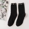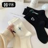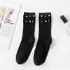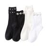 Otoño Nuevos Calcetines de Media Caña para Mujer con Cuentas de Estrella, Calcetines Modernos y Únicos, Color Sólido Blanco y Negro, Estilo Liso, Estilo Preppy con Perlas