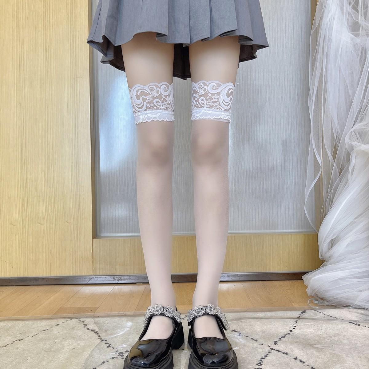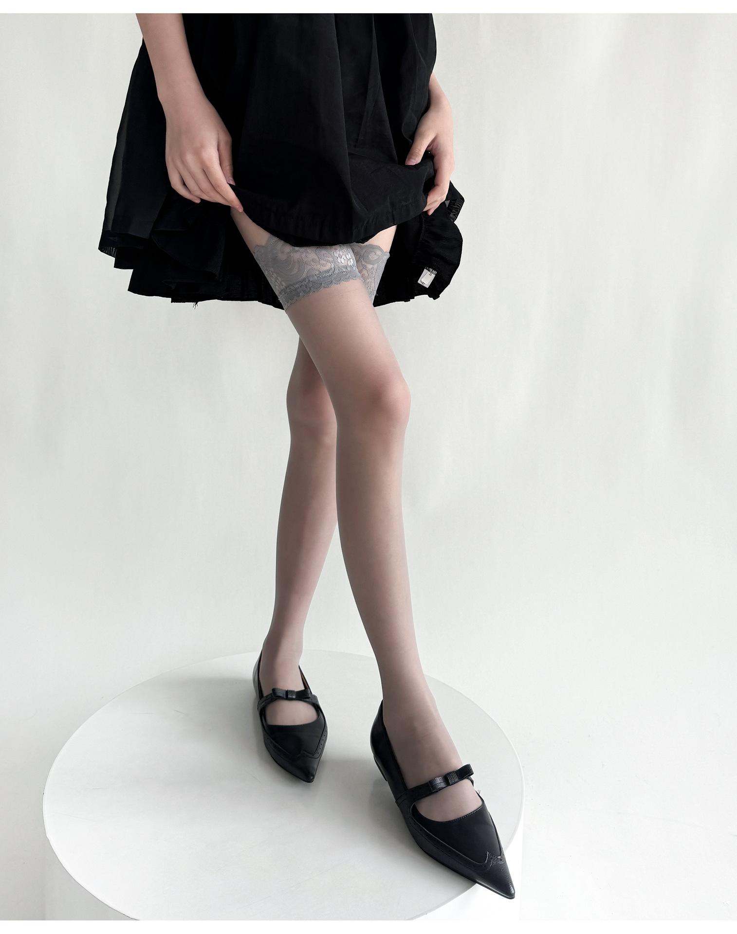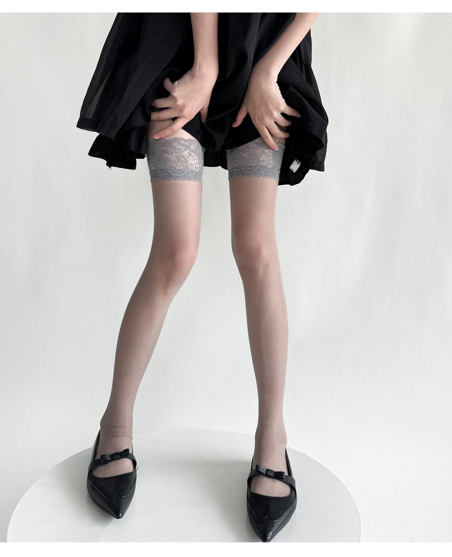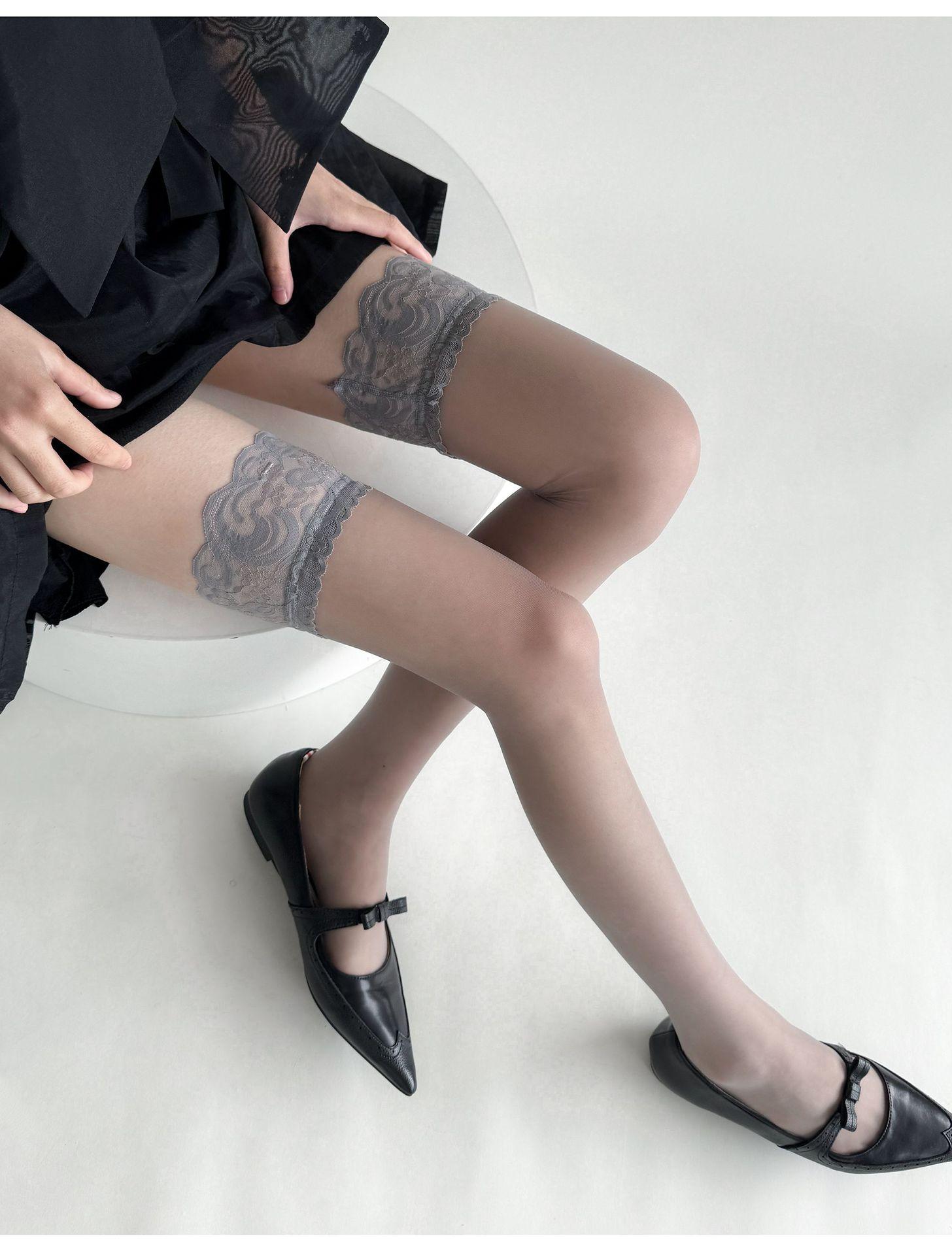 Calcetines altos de encaje puro y carnoso ultrafinos de primavera y verano para mujer, calcetines negros sexys adelgazantes hasta la rodilla grises