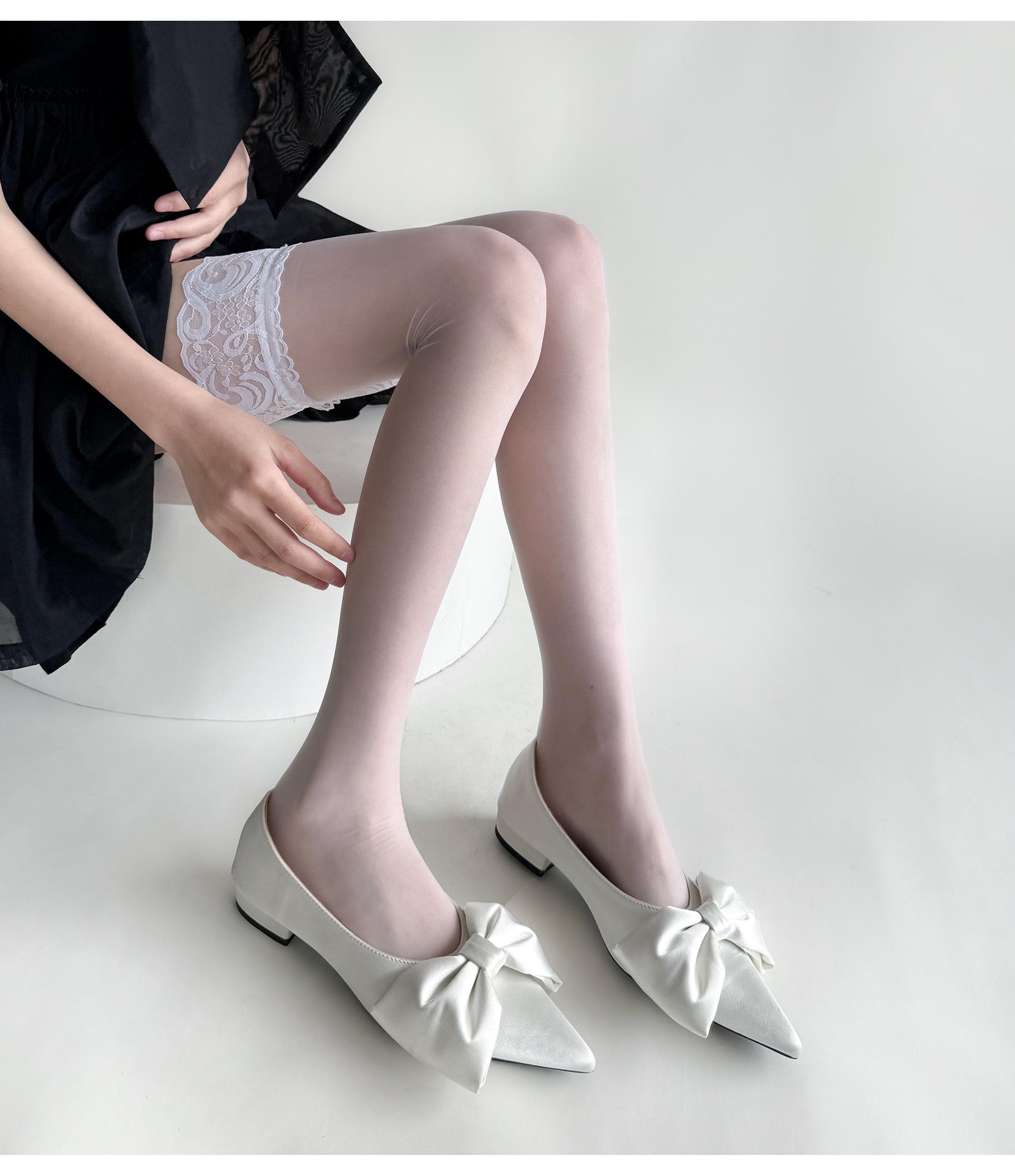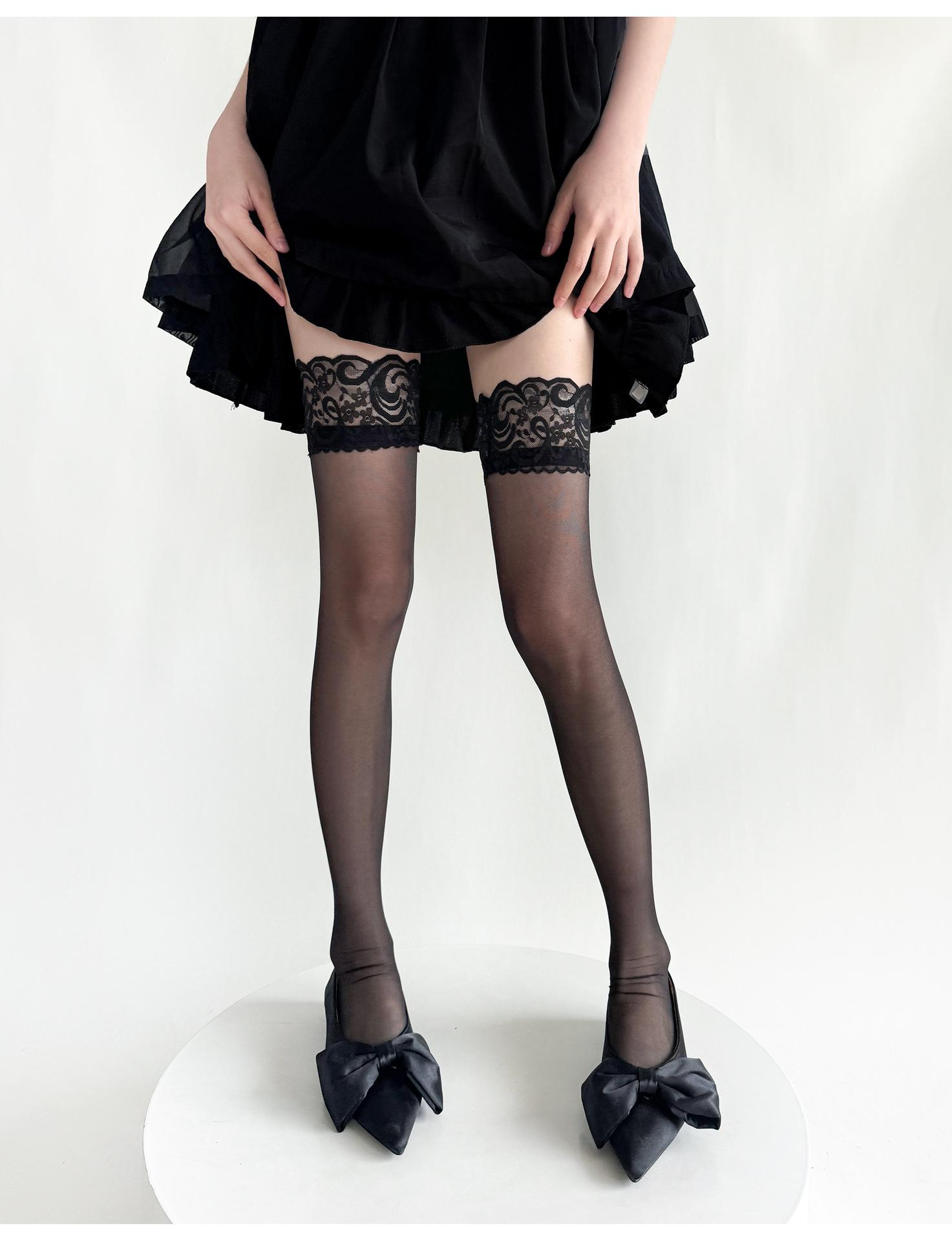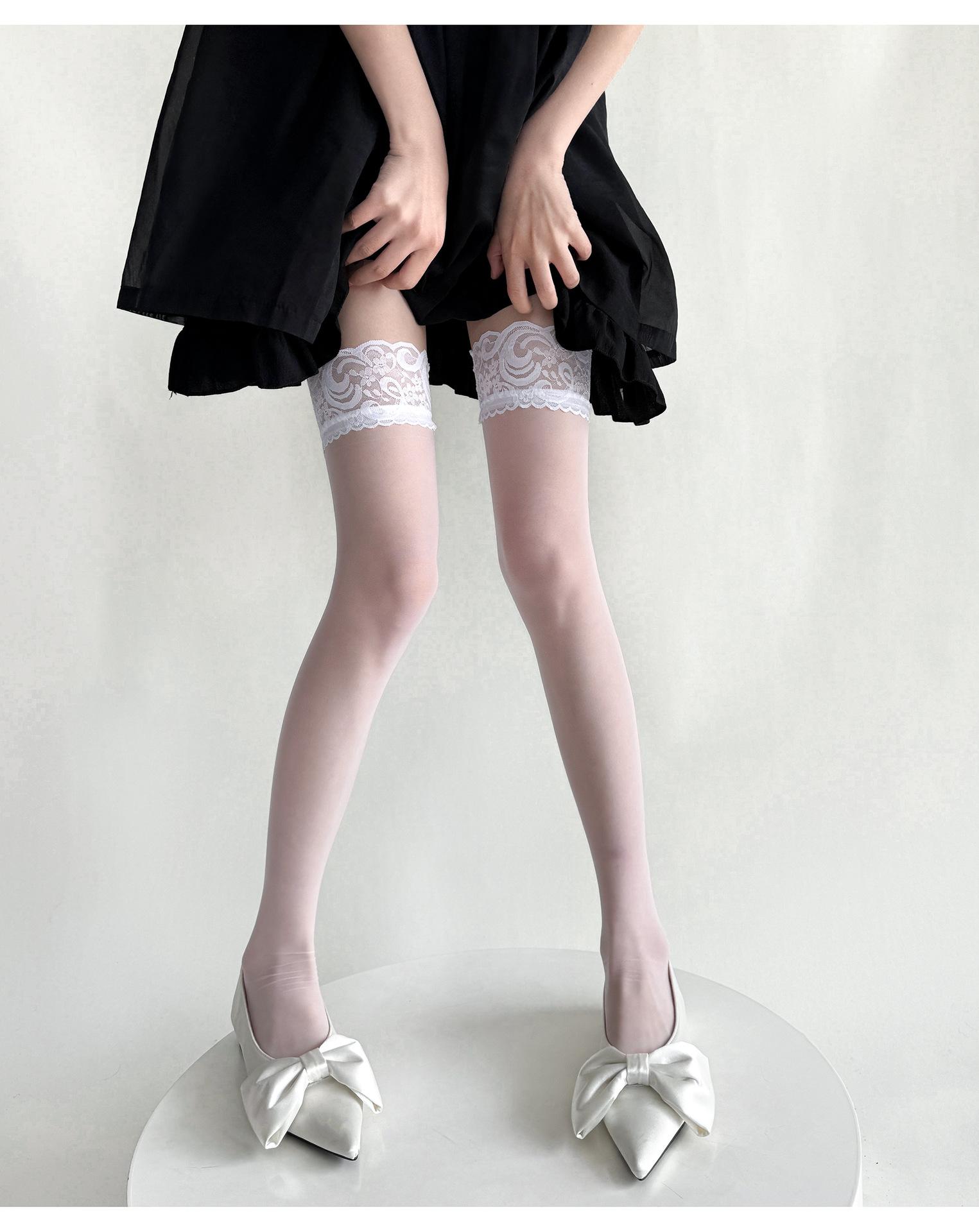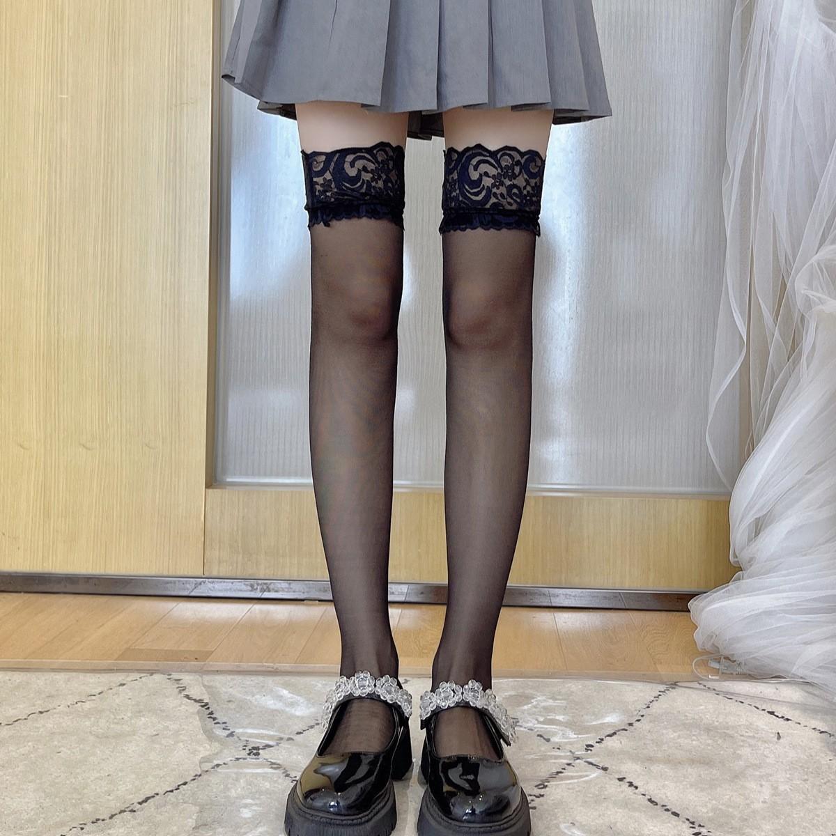 Calcetines altos de encaje puro y carnoso ultrafinos de primavera y verano para mujer, calcetines negros sexys adelgazantes hasta la rodilla grises
