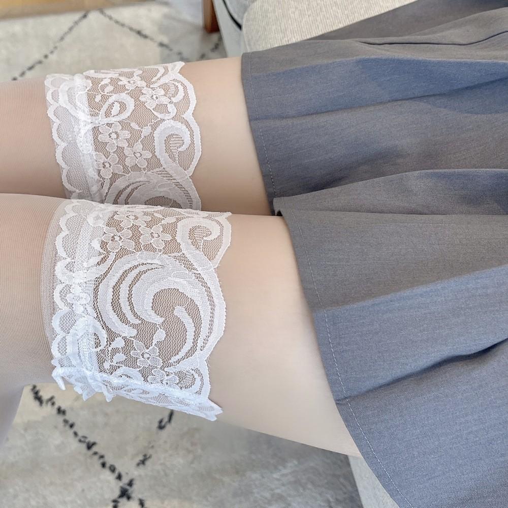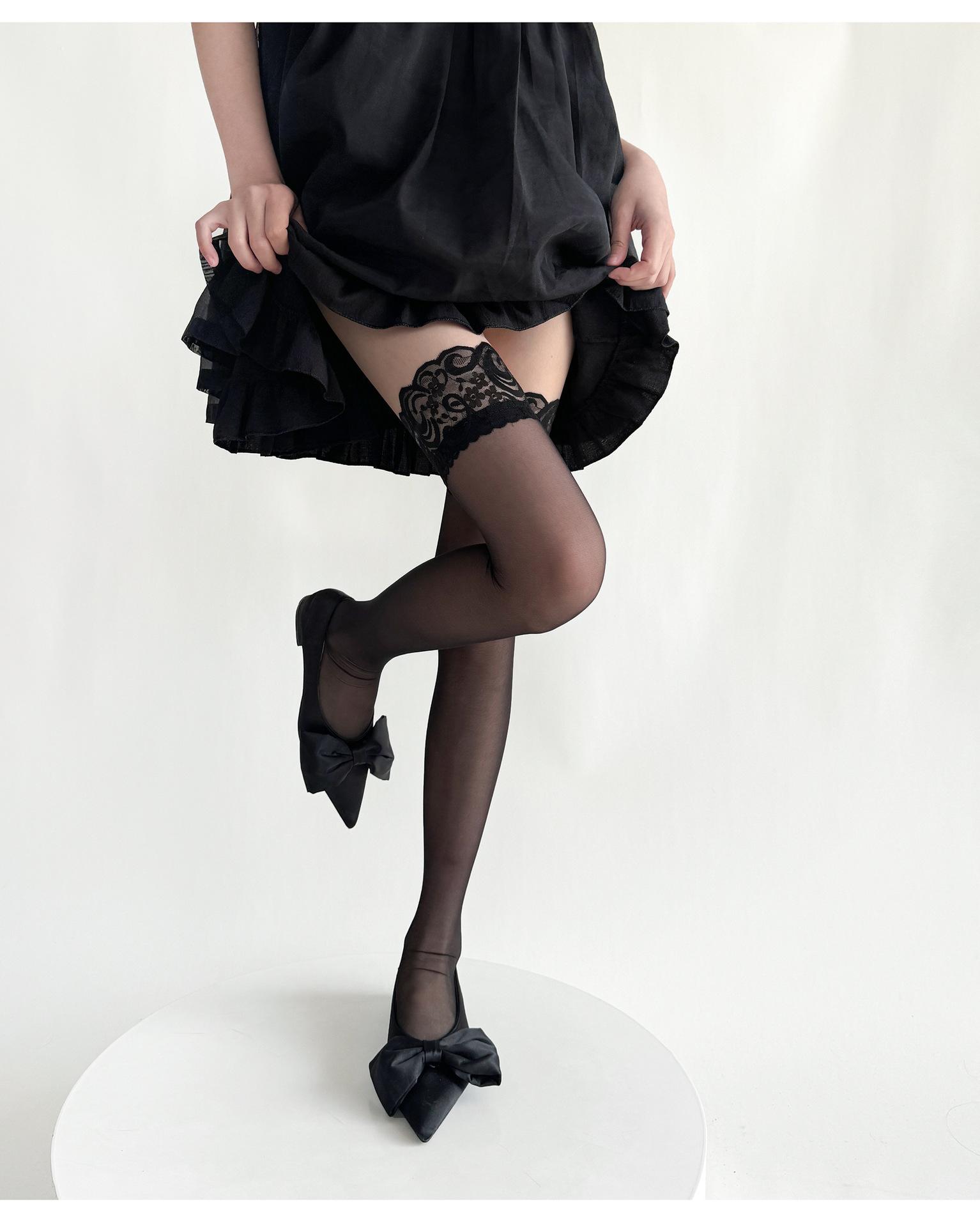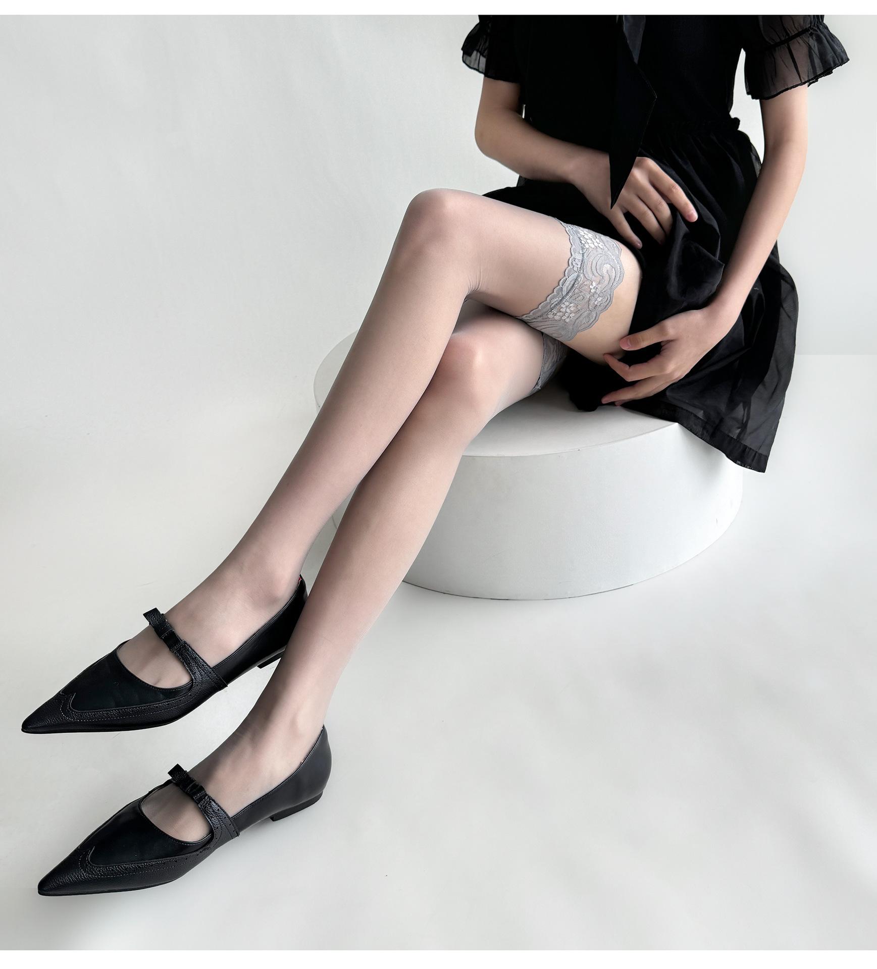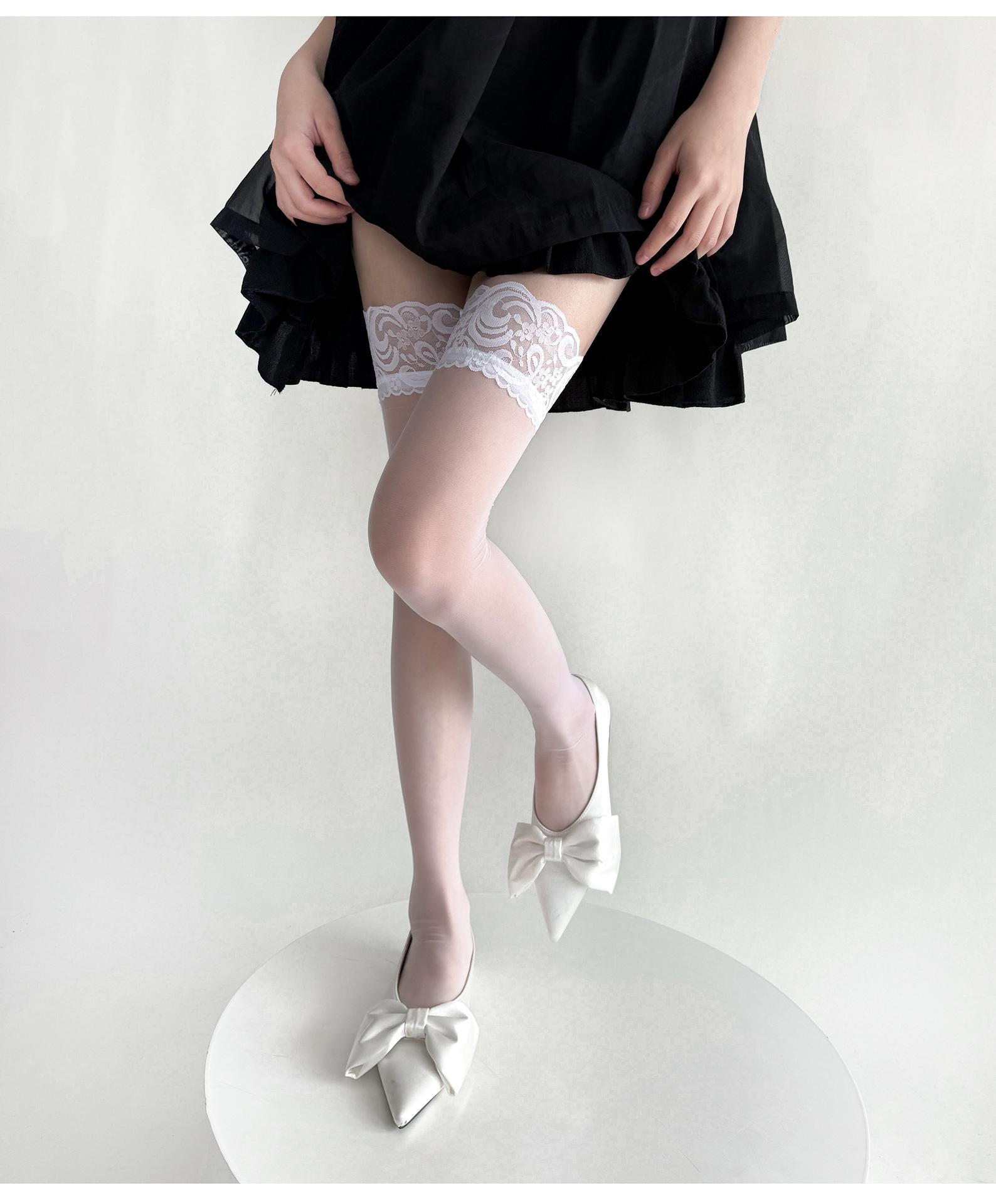 Calcetines altos de encaje puro y carnoso ultrafinos de primavera y verano para mujer, calcetines negros sexys adelgazantes hasta la rodilla grises