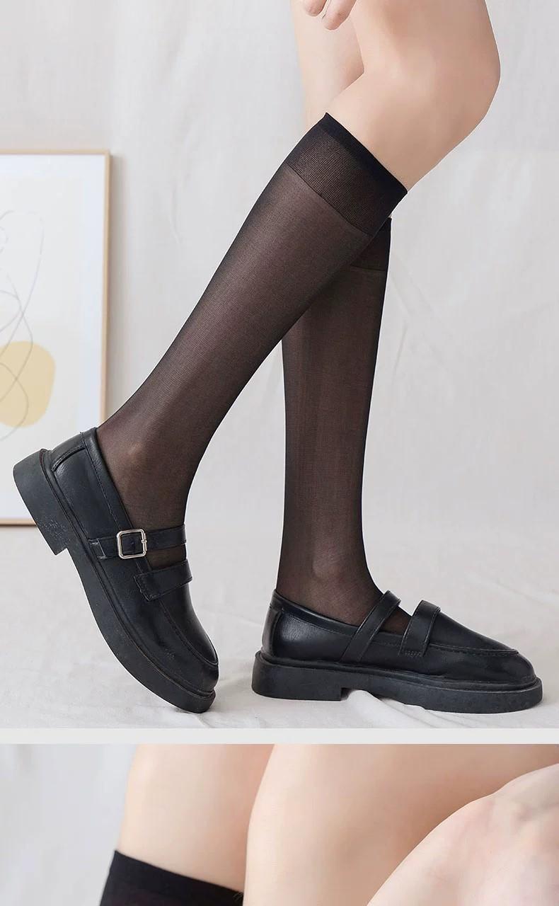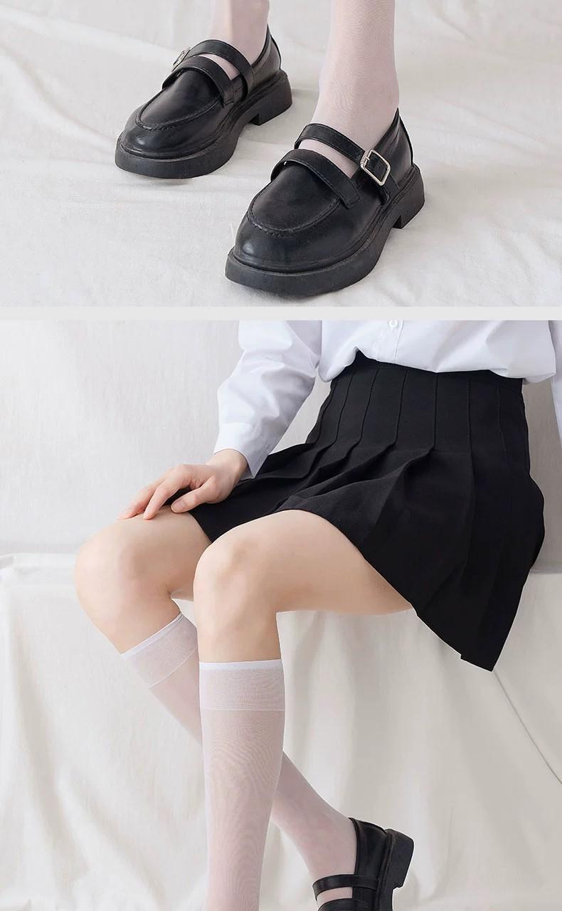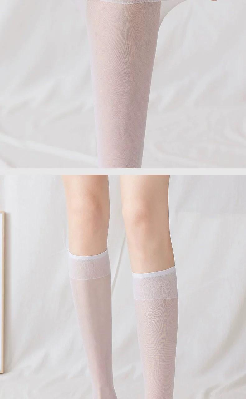 Calcetines blancos de verano para mujer, con protección solar, por encima de la rodilla, medias JK, calcetines blancos finos y frescos hasta media pantorrilla.
