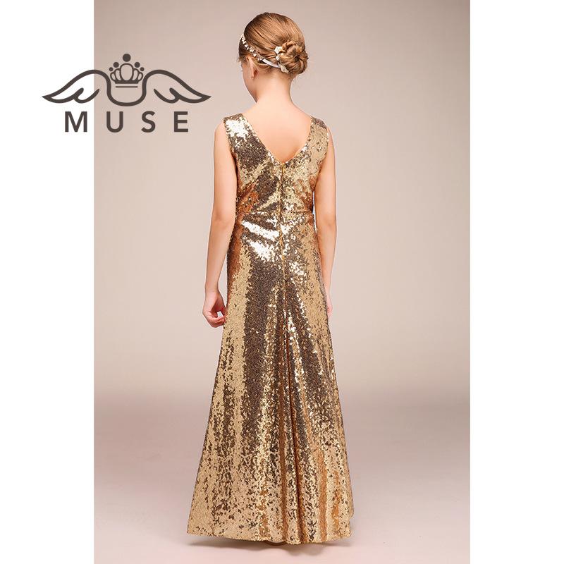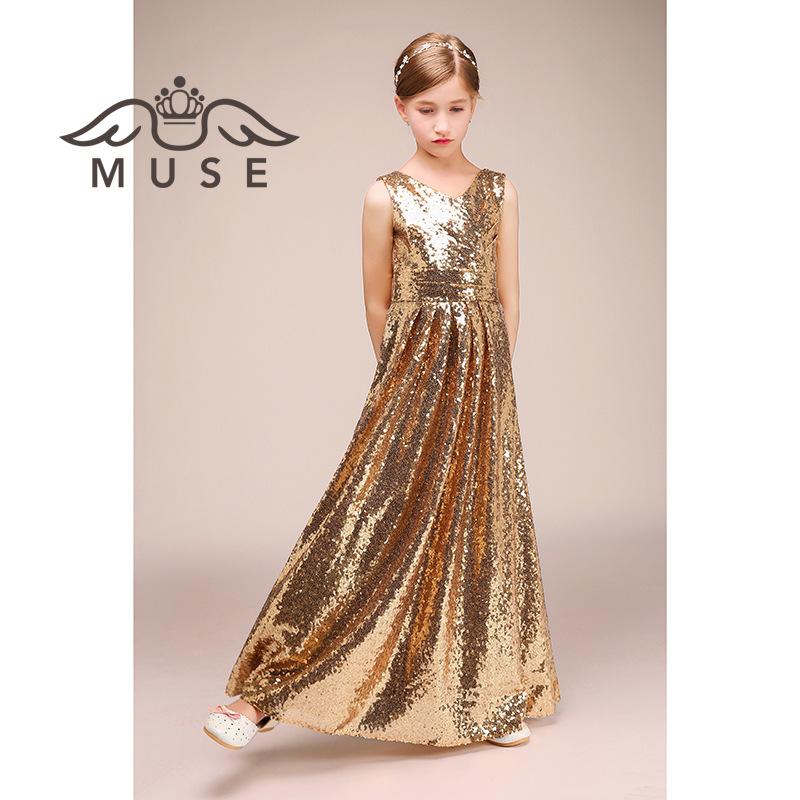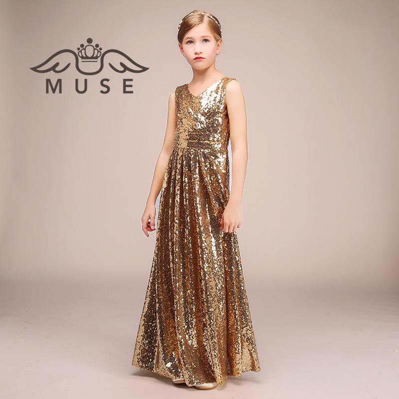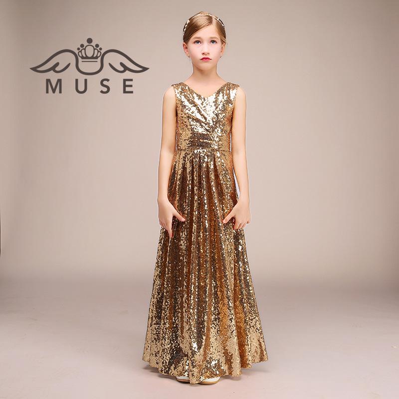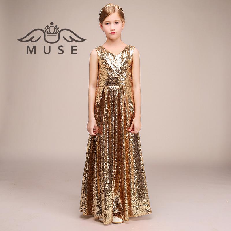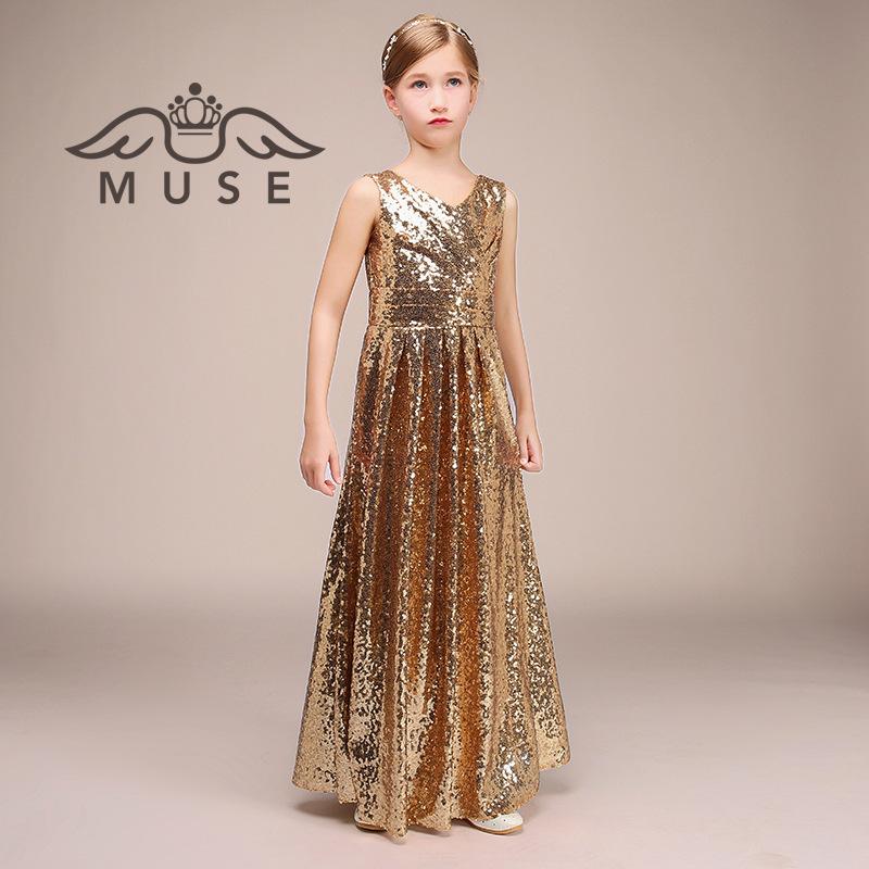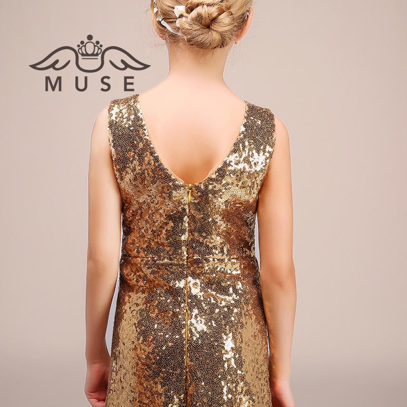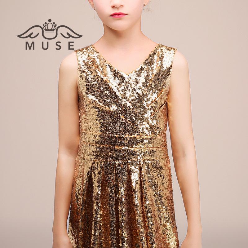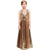 Disfraz para Niña Vestido de Princesa Vestido de Noche Vestido para Escenario Pasarela Anfitrión Vestido de Lentejuelas Doradas