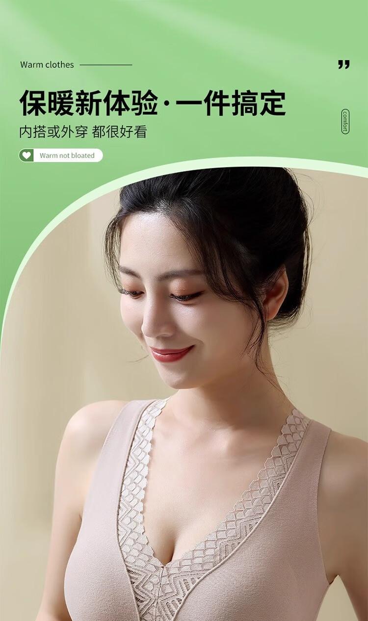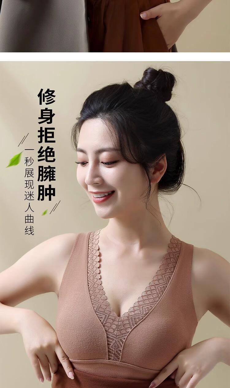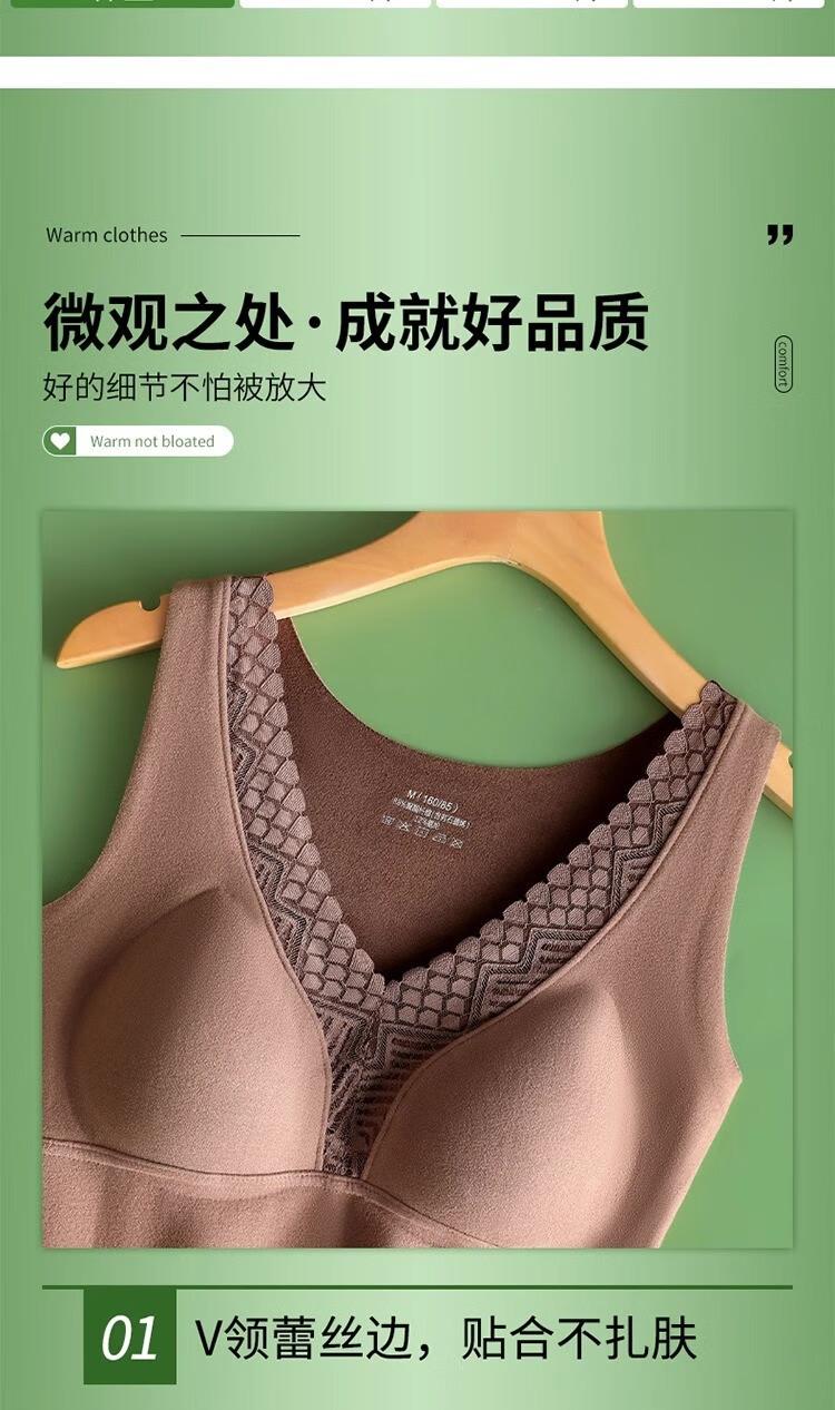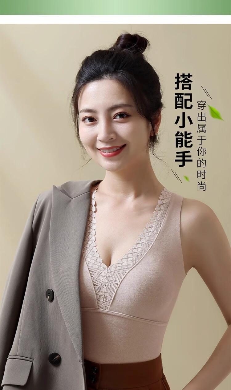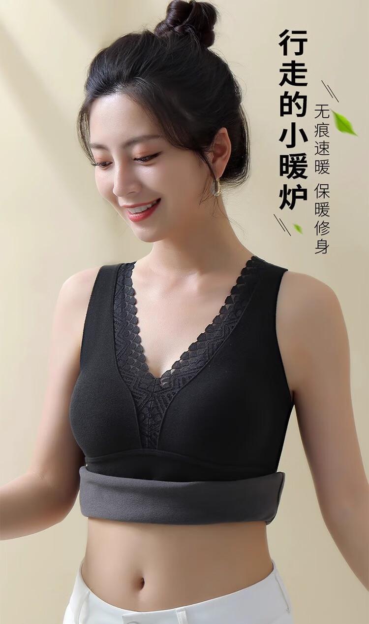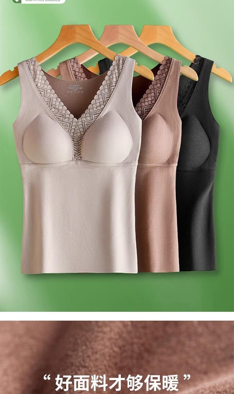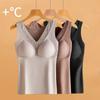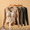 Ropa interior térmica de terciopelo para mujer, chaleco de cuello en V con almohadilla en el pecho, otoño e invierno, forro polar grueso, almacenamiento de calor interno, camisa base