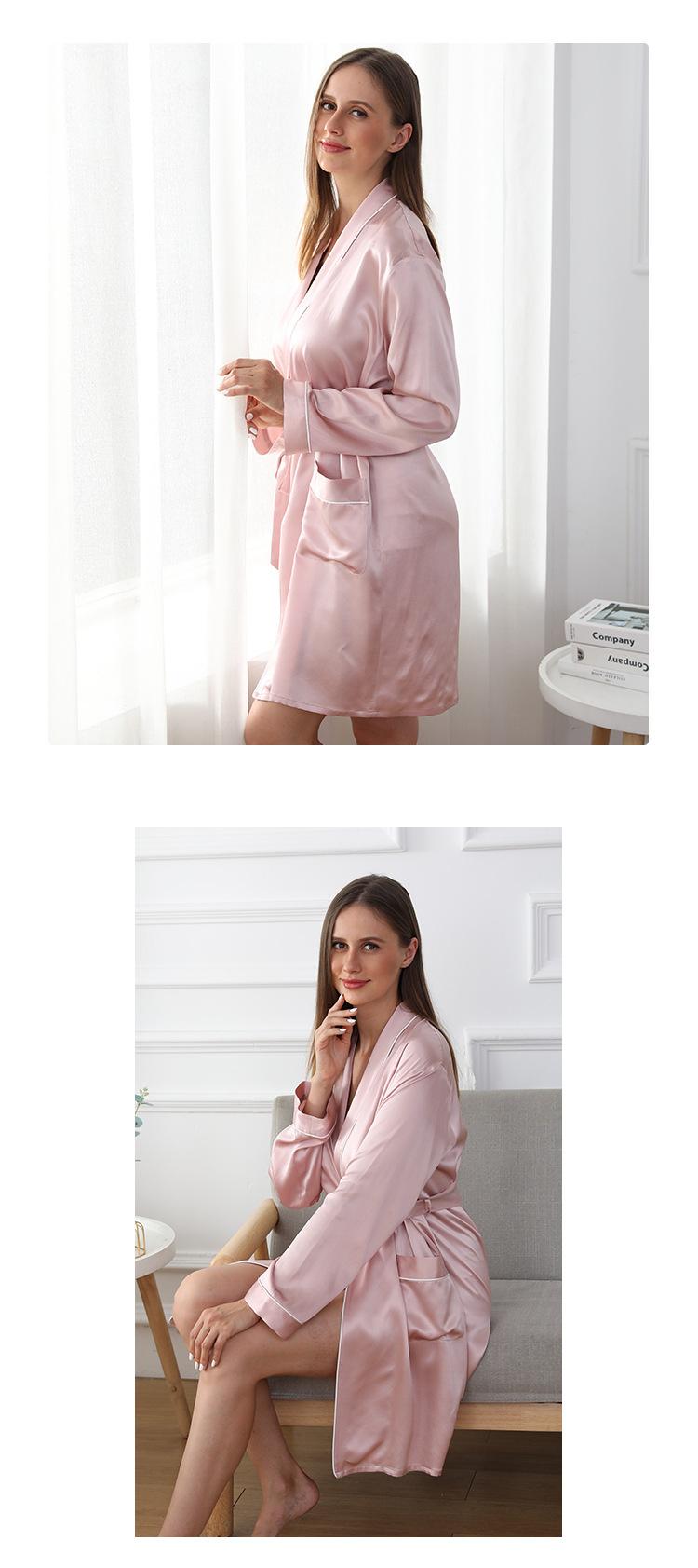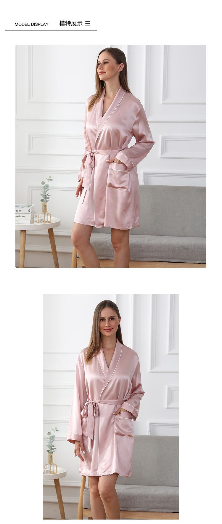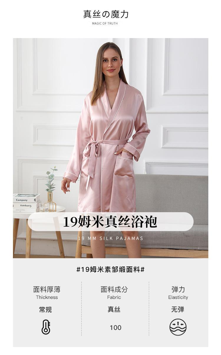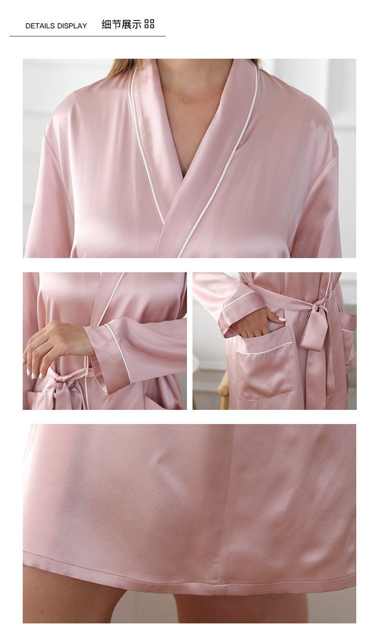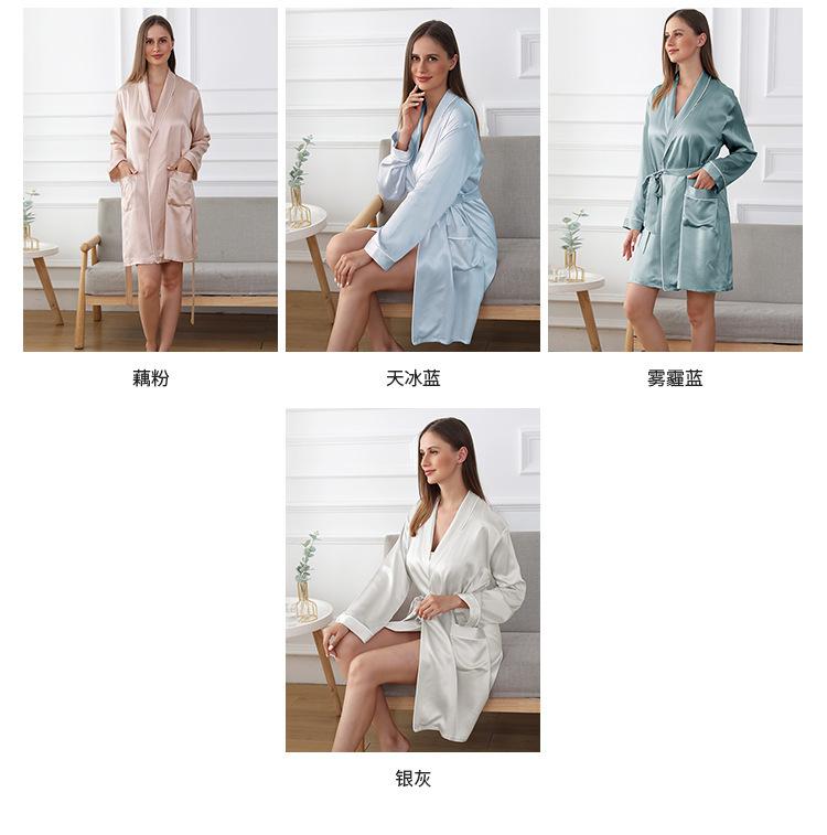 Bata de Seda para Mujer Primavera y Otoño Nuevo Producto 100% Seda de Morera Sexy Ropa de Casa Pijama Cintura Bata de Noche de Alta Gama Carrera Matutina