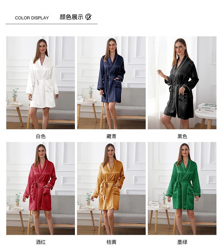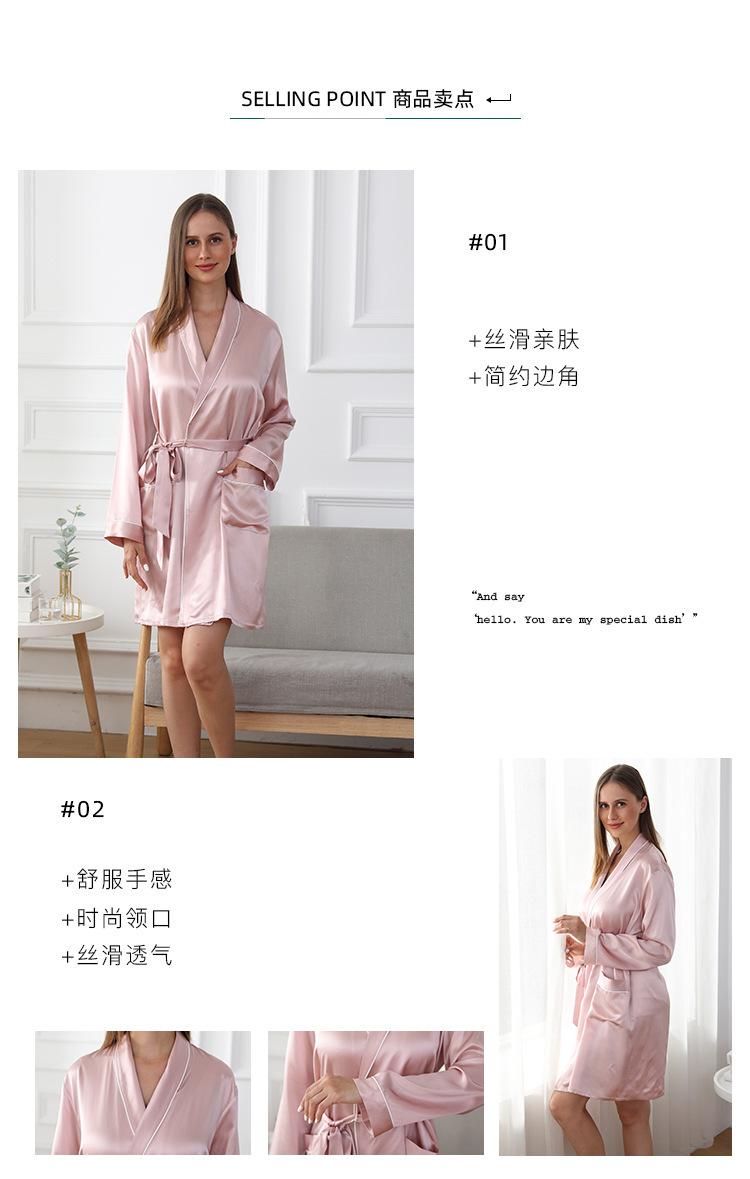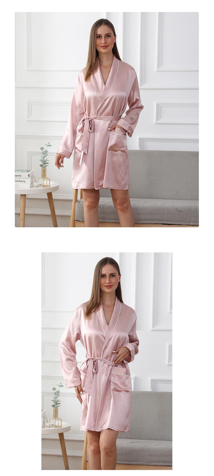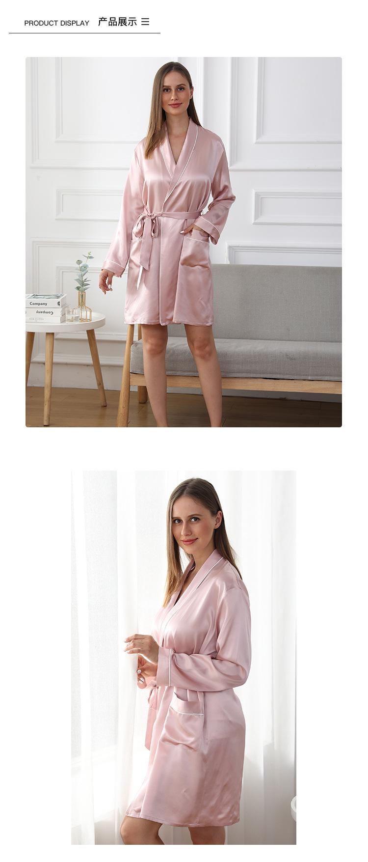 Bata de Seda para Mujer Primavera y Otoño Nuevo Producto 100% Seda de Morera Sexy Ropa de Casa Pijama Cintura Bata de Noche de Alta Gama Carrera Matutina