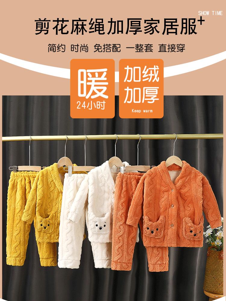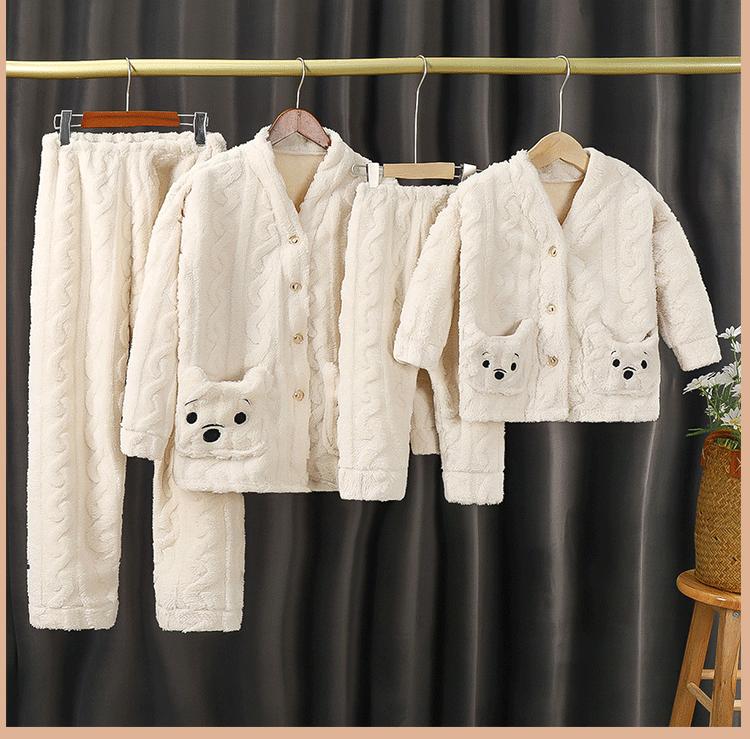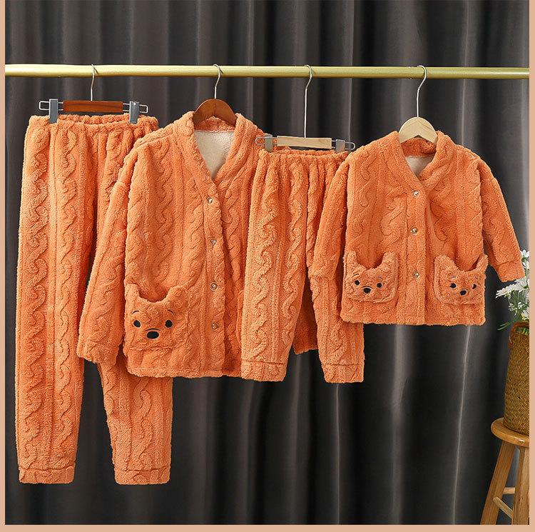 Pijamas de franela para padres e hijos, para niños y niñas, forro polar coral grueso, ropa de casa para bebés, traje de invierno