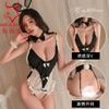 Nuevo traje de sirvienta sexy de encaje de malla transparente con lazo lencería sexy uniforme de mujer traje de sirvienta