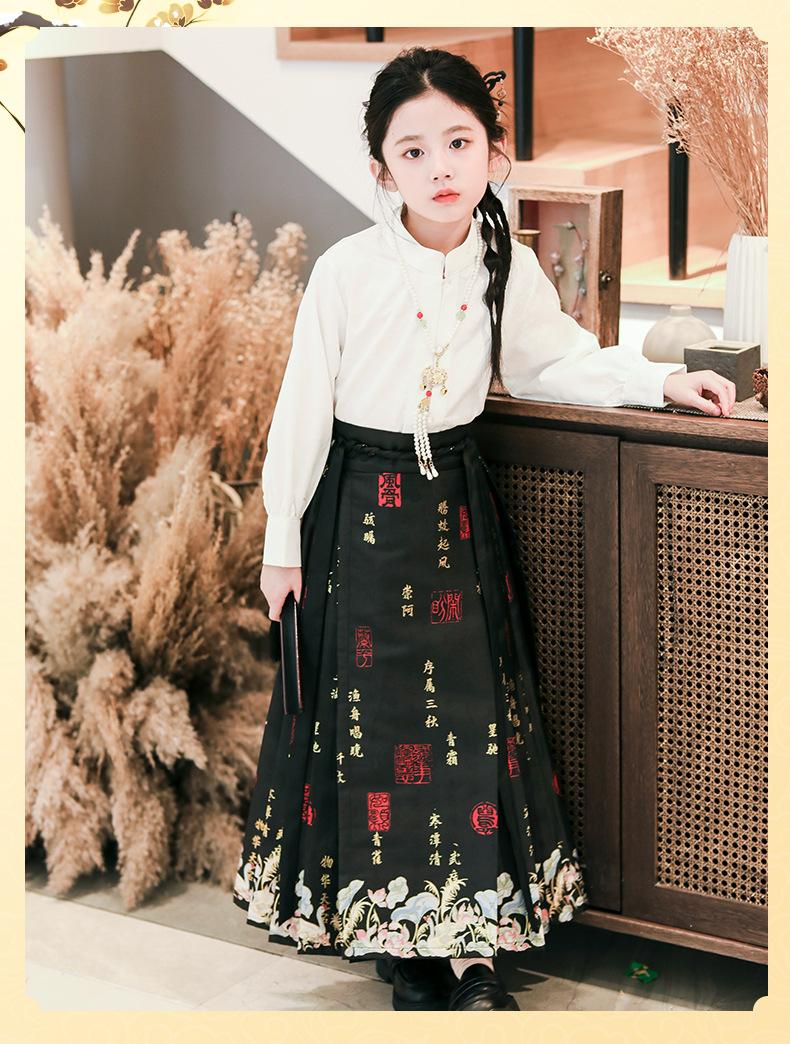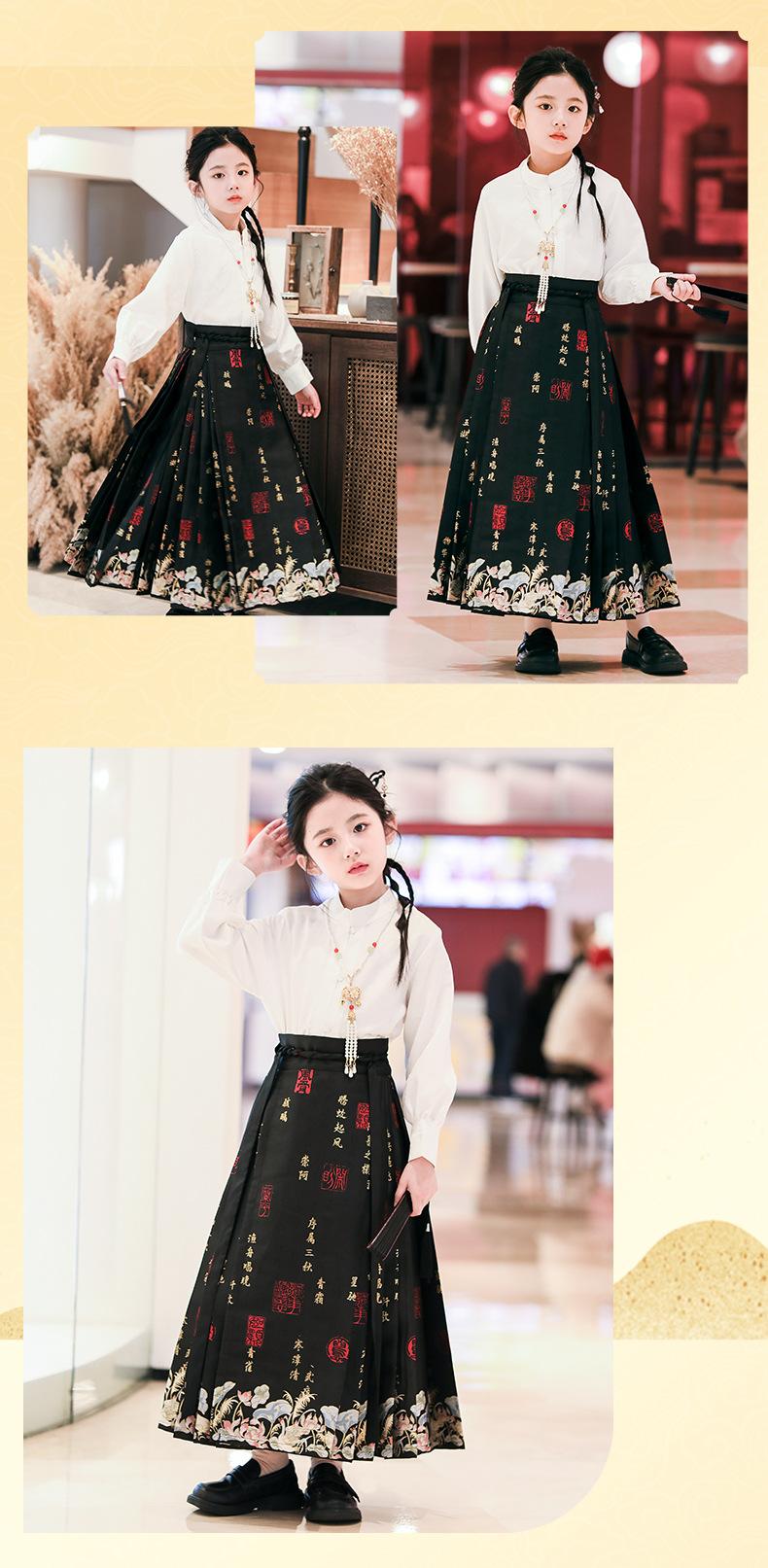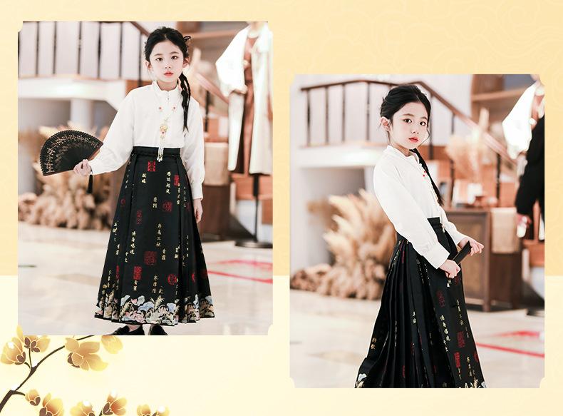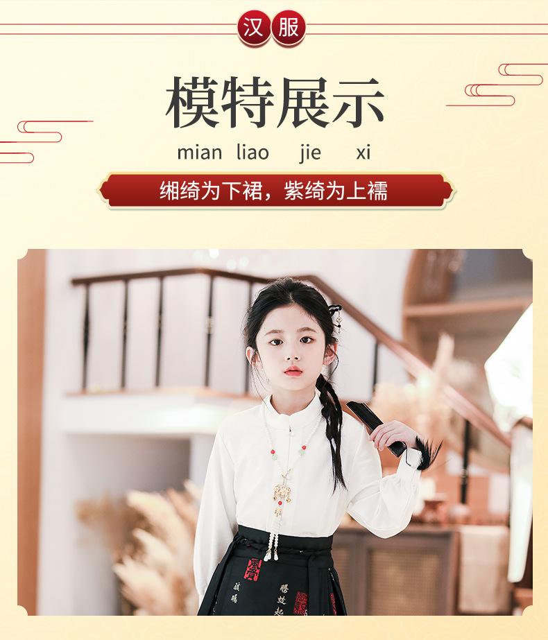 2024 Primavera y Otoño nuevo hanfu de alta gama para niñas estilo chino traje Tang nuevo estilo chino vestido cara de caballo traje antiguo ropa de actuación al por mayor