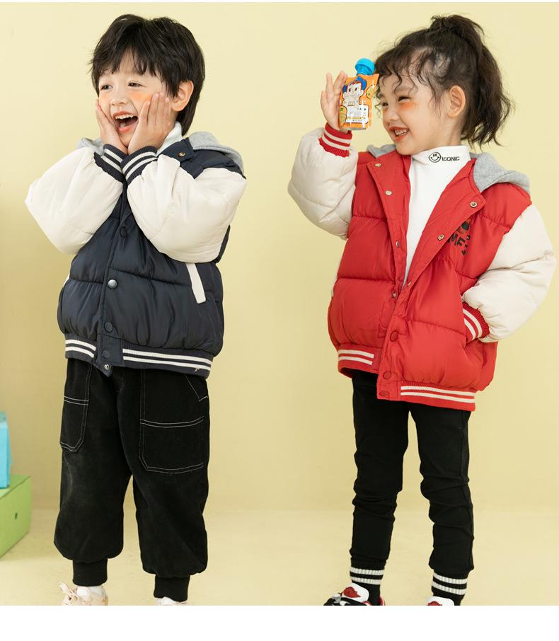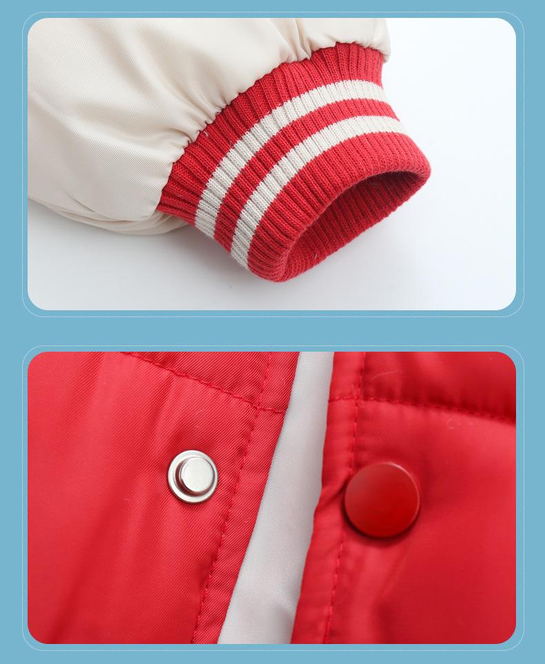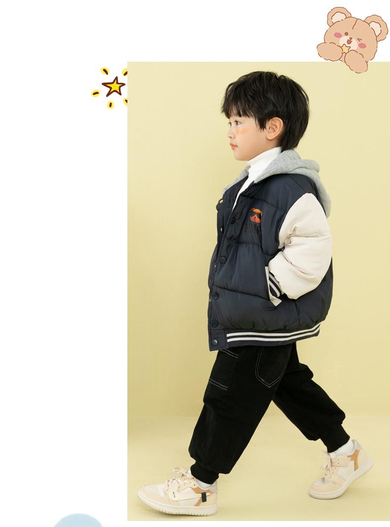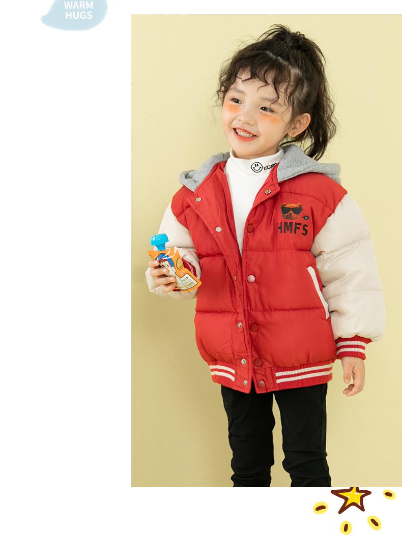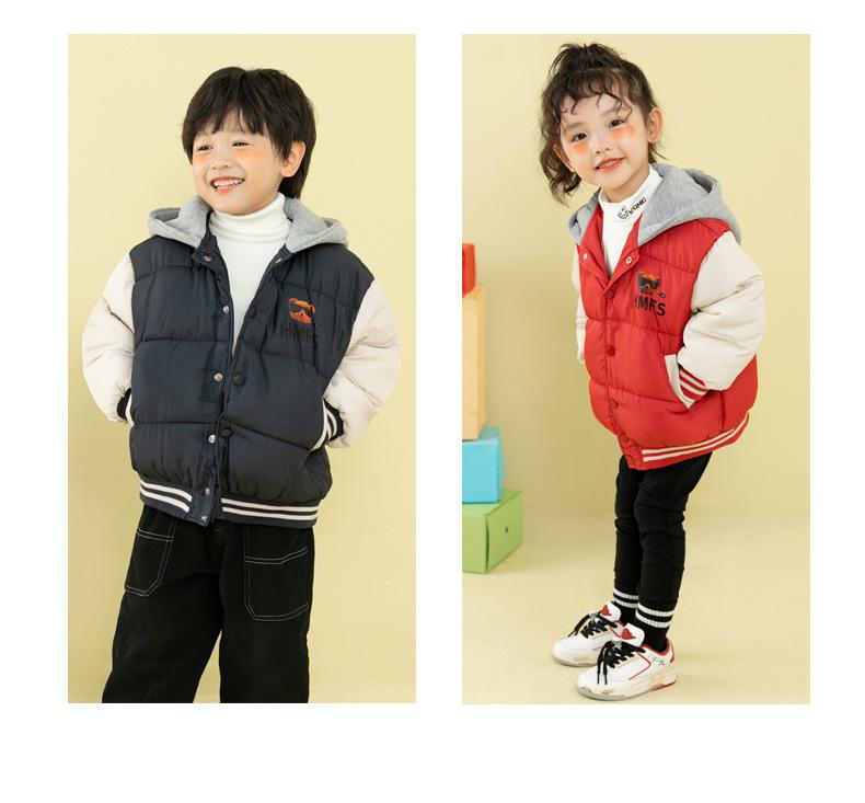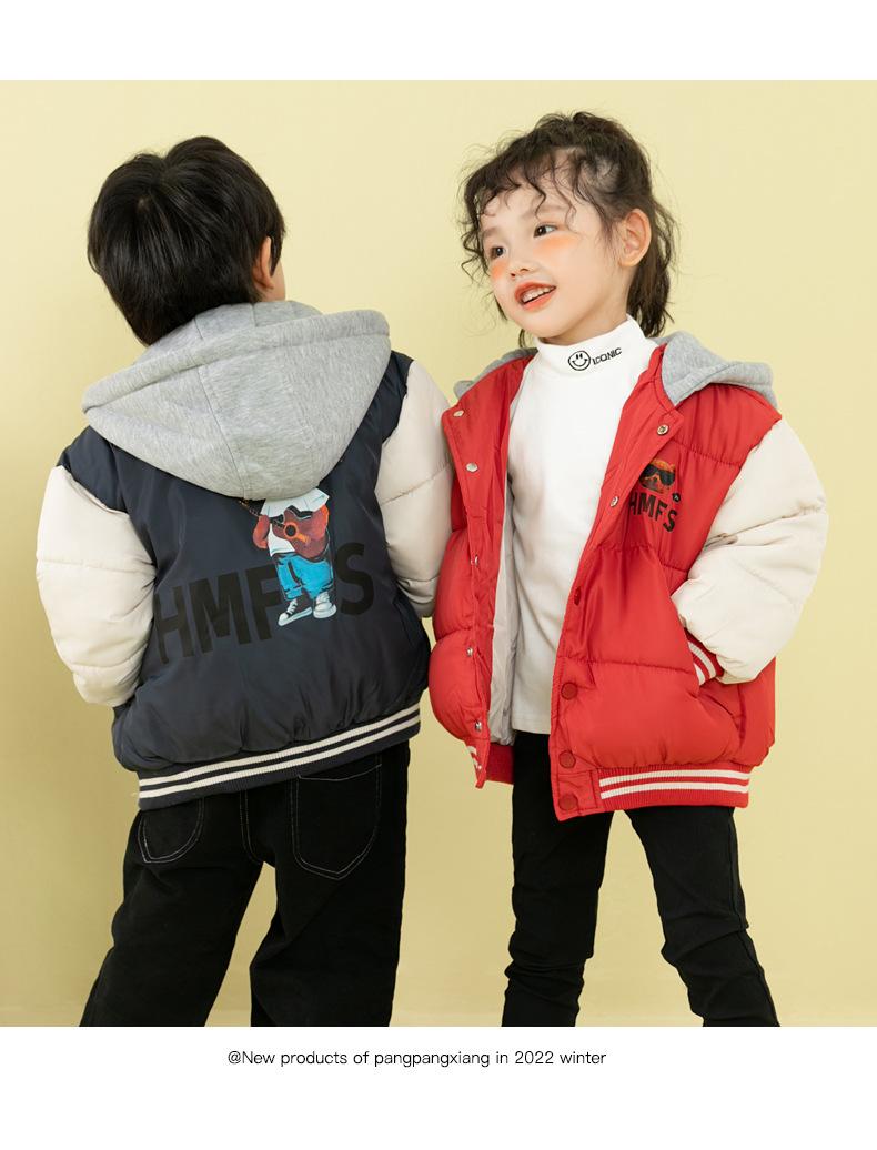 Ropa de invierno para niños y niñas, nueva, para niños pequeños y medianos, chaqueta acolchada de algodón con capucha y estampado, chaqueta acolchada de algodón, uniforme de béisbol