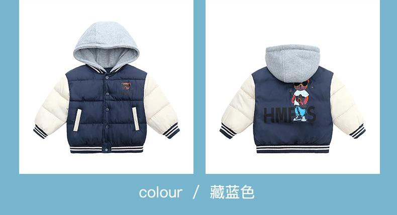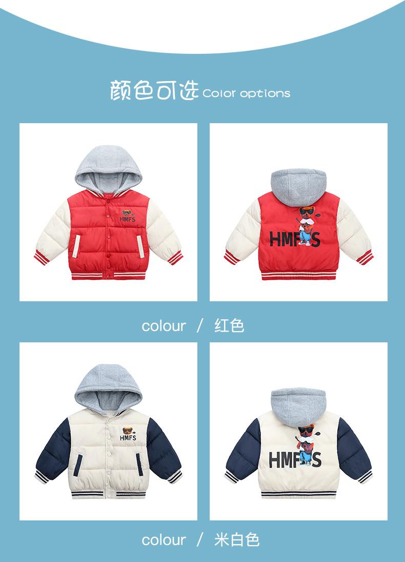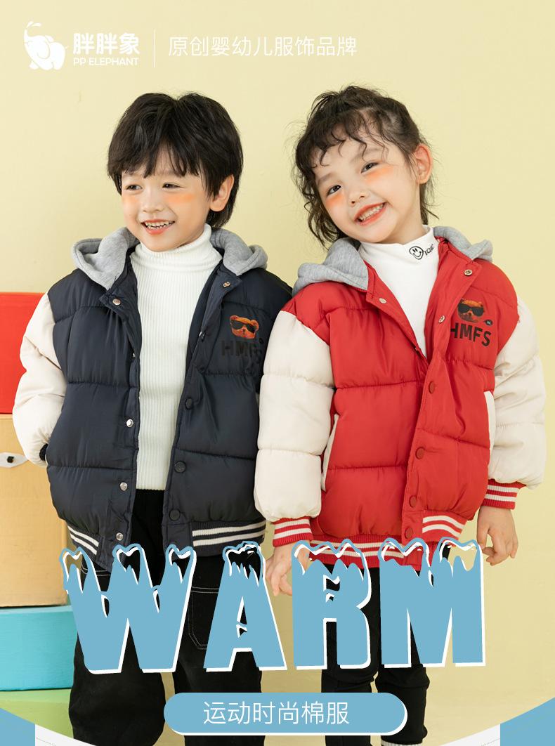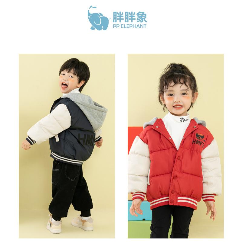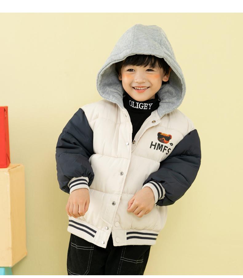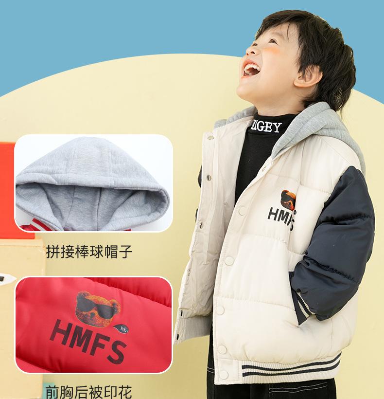 Ropa de invierno para niños y niñas, nueva, para niños pequeños y medianos, chaqueta acolchada de algodón con capucha y estampado, chaqueta acolchada de algodón, uniforme de béisbol