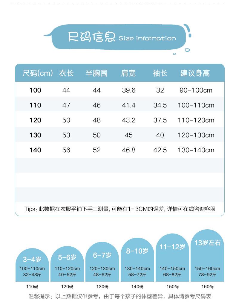 Children (3~8 years old, 100 ~ 140cm)