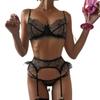 Suministro transfronterizo Comercio exterior europeo y americano Lencería sexy para mujer Ropa interior sexy de encaje con perspectiva Conjunto de tres piezas Venta al por mayor de fábrica
