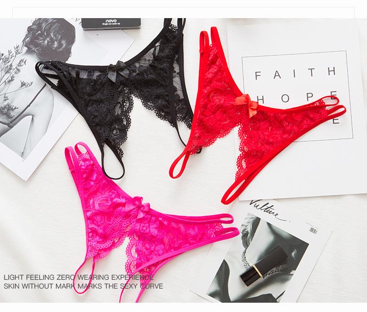 Ropa interior sexy para mujer Encaje Transparente Sin costuras Estilo entrepierna abierta Tanga Calado Caliente Cintura baja Ropa interior sexy