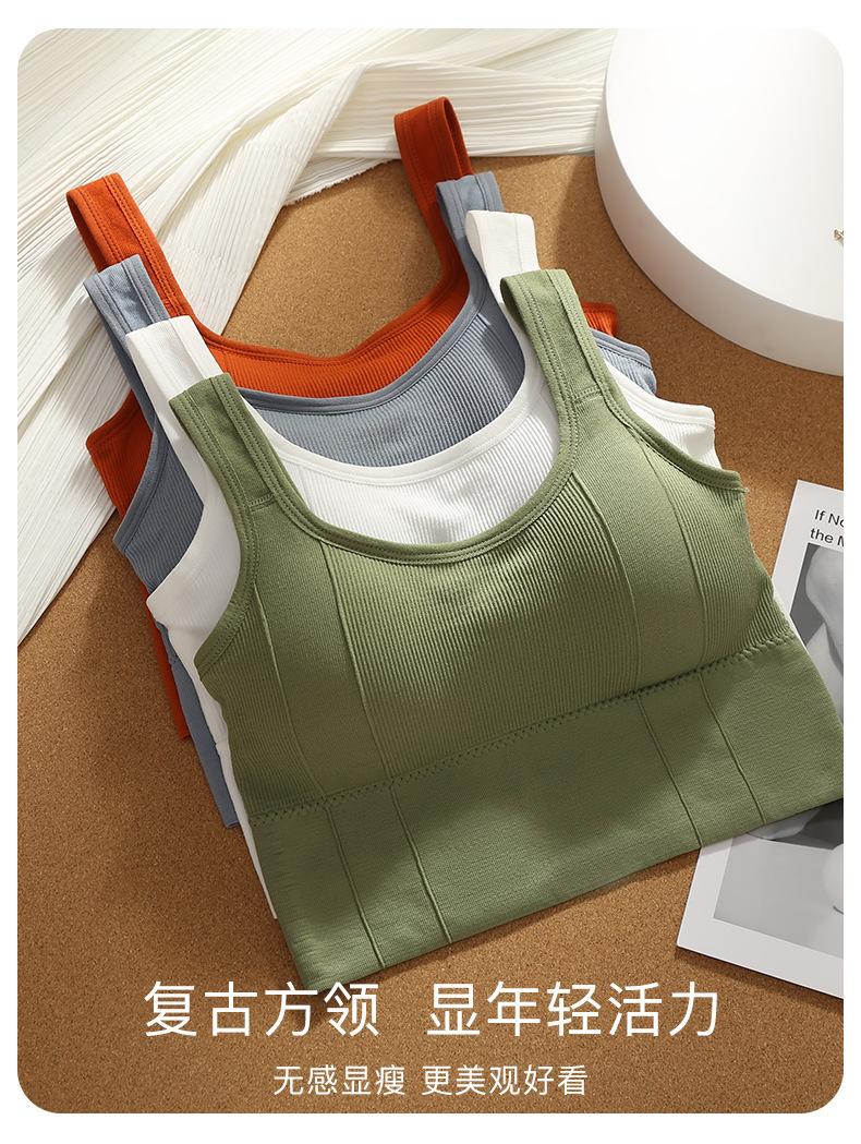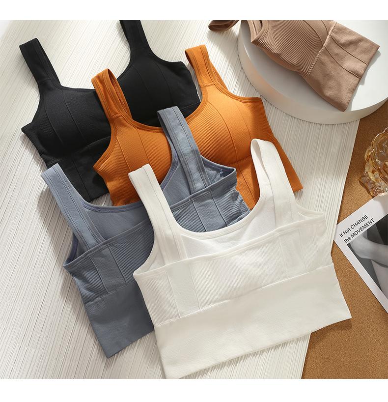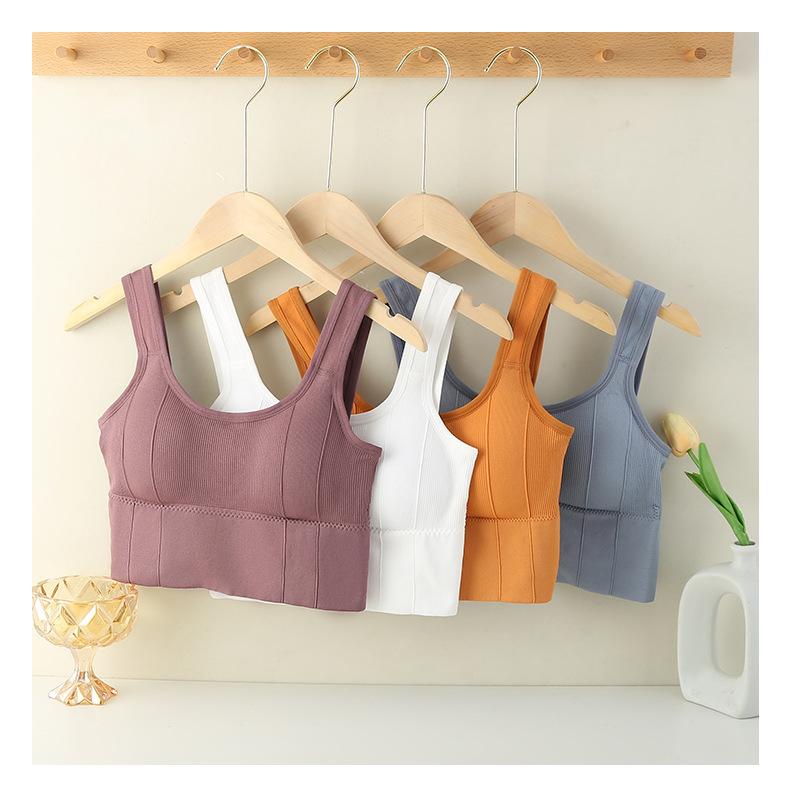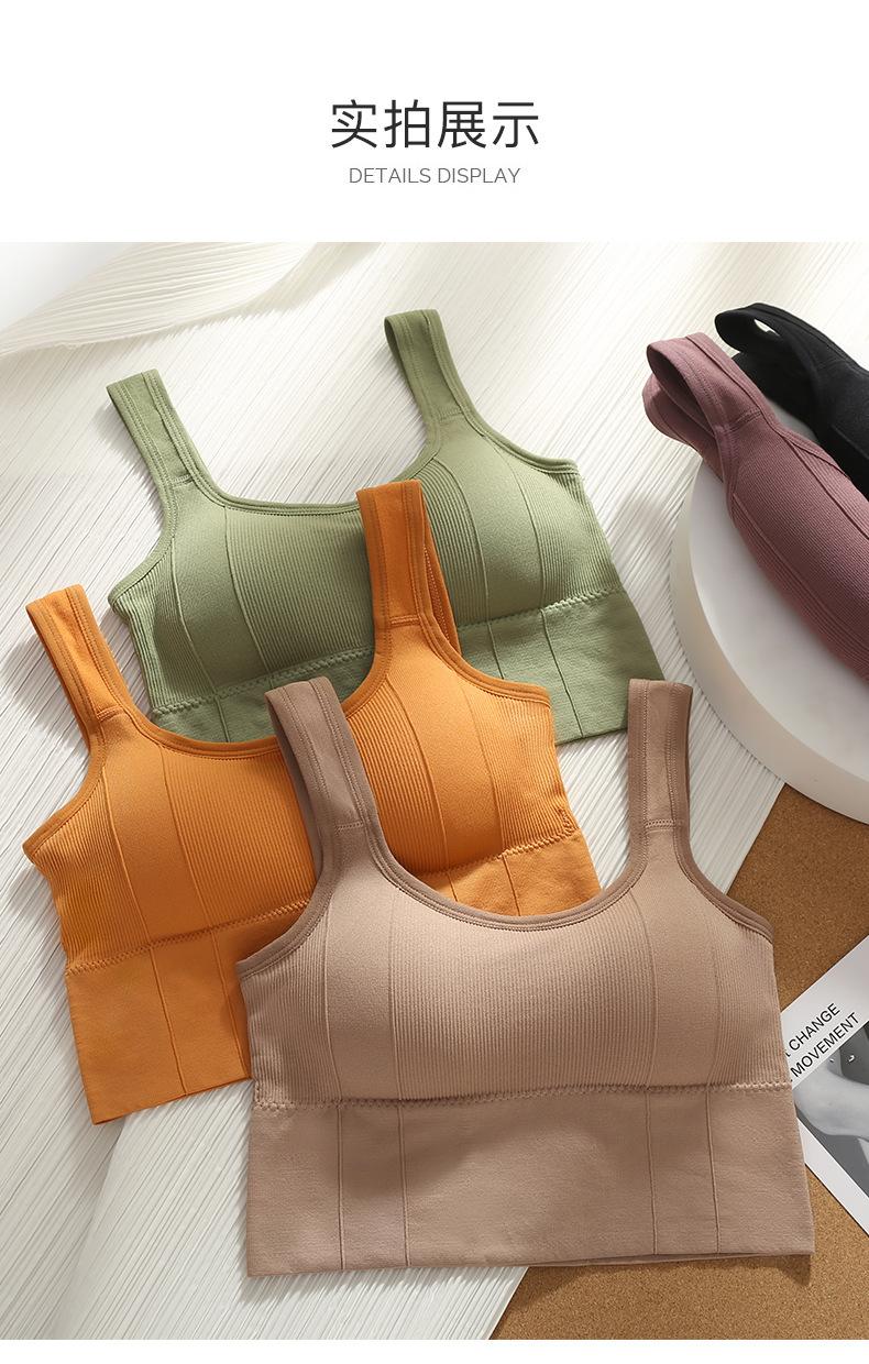 Camisola de color sólido con espalda descubierta, ropa interior para mujer, sin costuras, deportiva, para el pecho, con base de yoga, top de tubo, sujetador inalámbrico para dormir