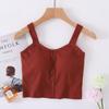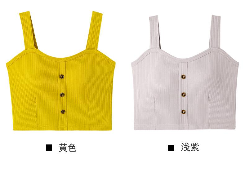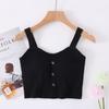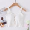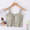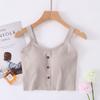 Chaleco de verano para mujer con cinturón de algodón, copa acolchada, de una pieza, con botones cortos y tirantes anchos, cintura alta y ombligo pequeño.