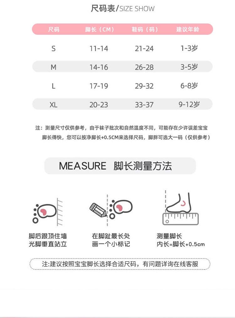 S code (recommended foot length 11-14CM shoe size 18-24 yards), M code (recommended foot length 14-16CM shoe s...