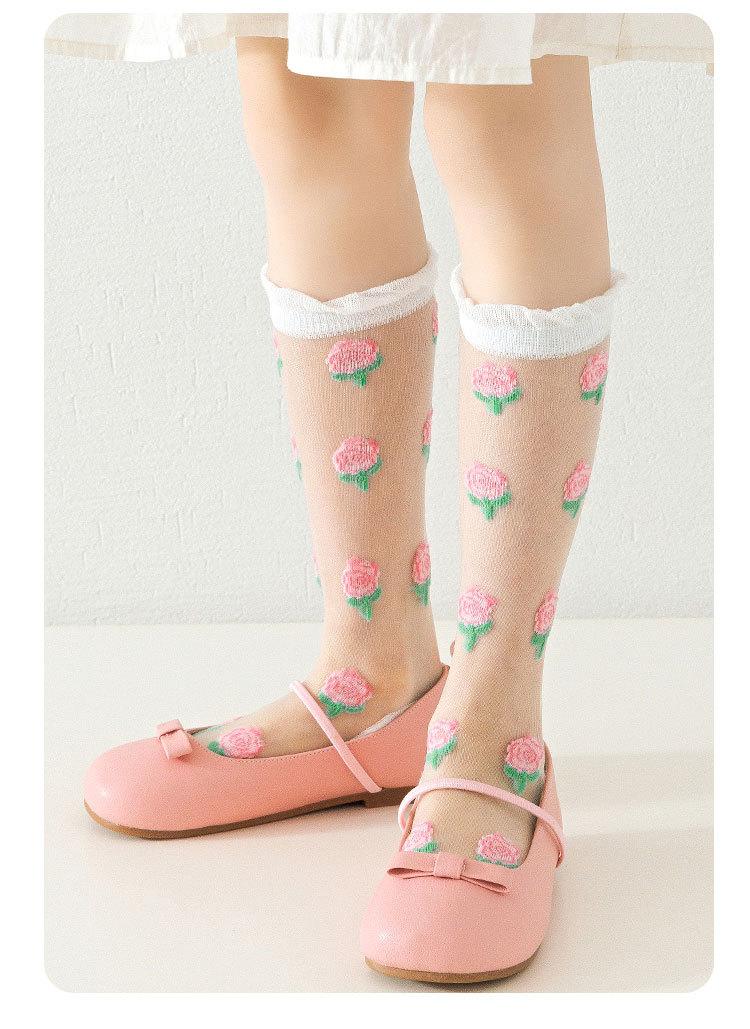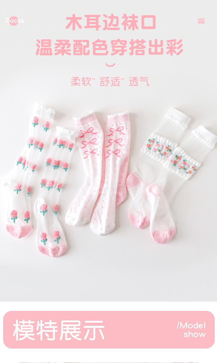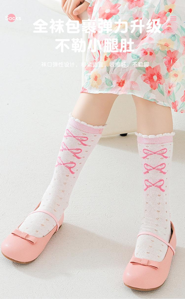 Calcetines de verano para niña, de seda de vidrio, finos, con lazo de encaje, para bebé, coreanos, largos, tipo tubo
