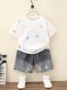Ropa Nueva para Bebé Transfronteriza Ropa para Niños Verano Delgada Algodón Puro Manga Corta Shorts Set de Camiseta Set de Ropa para Bebé