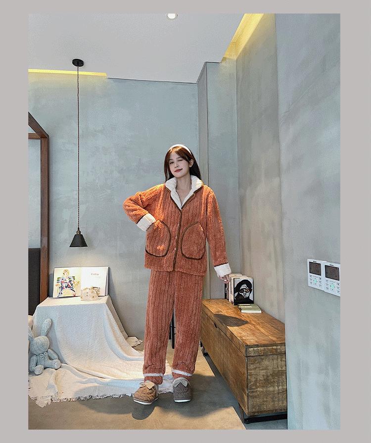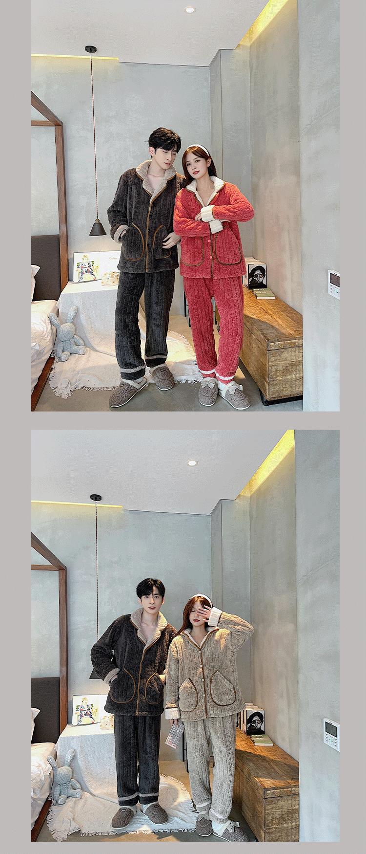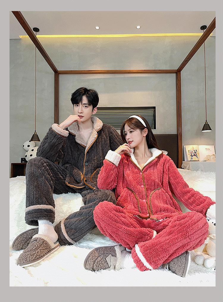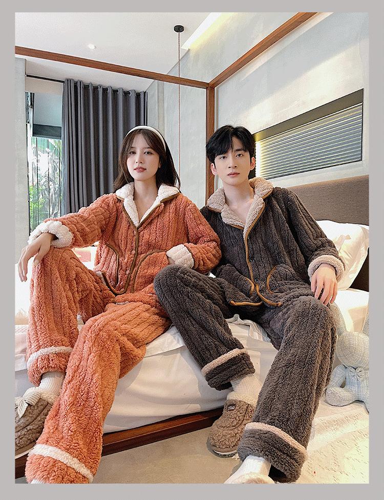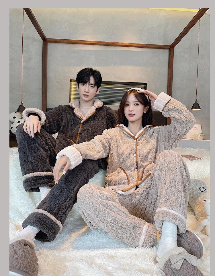 Pijamas de pareja para mujer, otoño e invierno, cómodos, de algodón y terciopelo, forrados con vellón grueso, tallas grandes, para hombre, traje cálido de invierno, ropa de casa