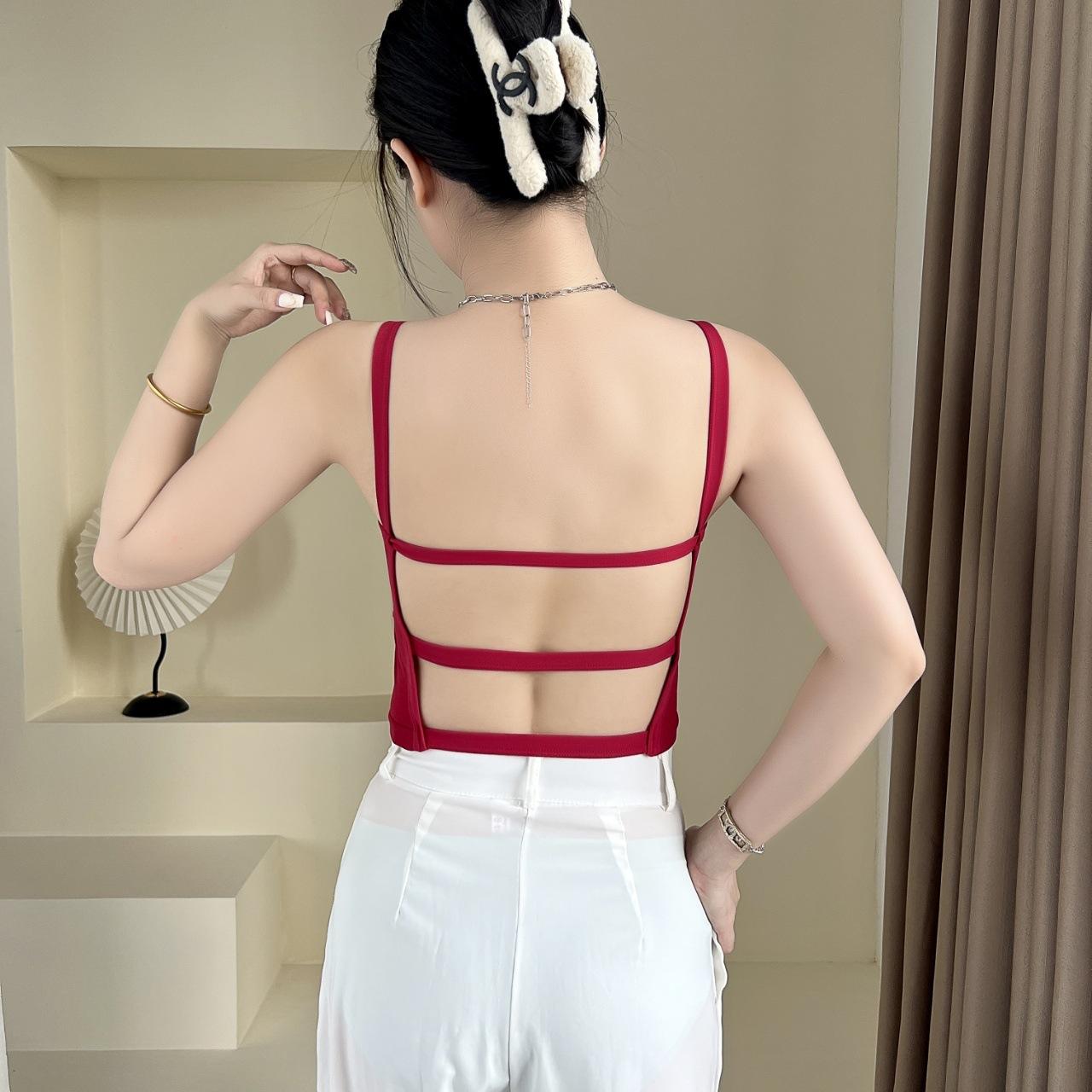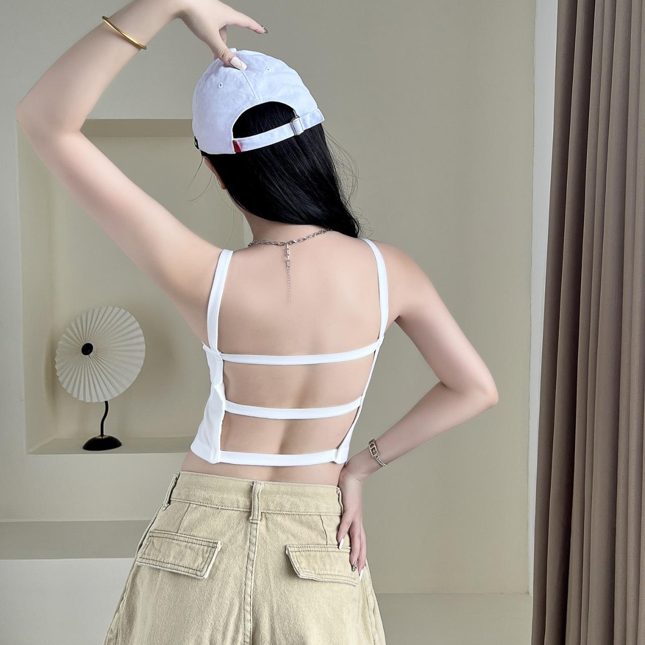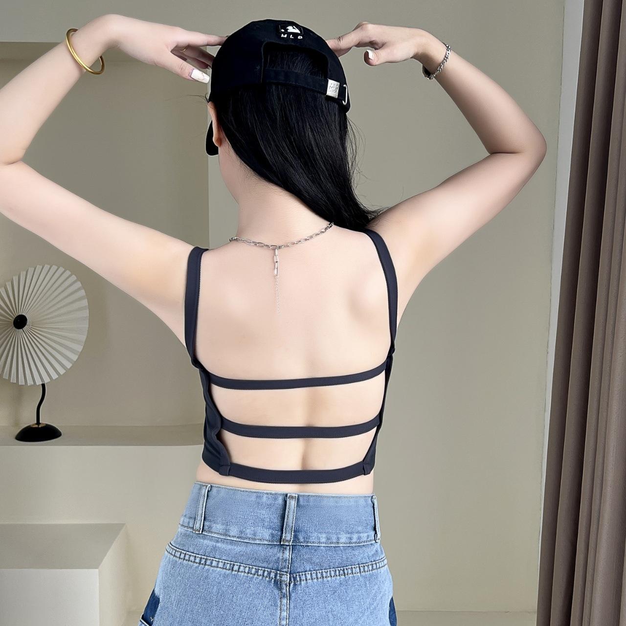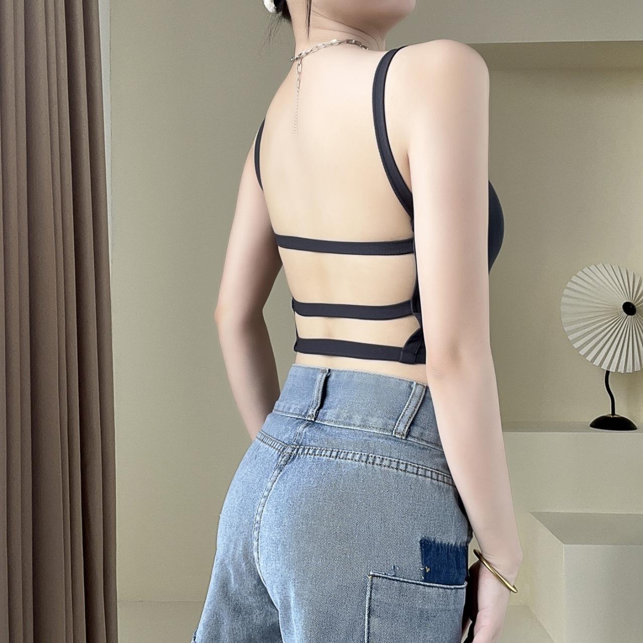 Camisola sexy con espalda descubierta para chica sexy, ropa interior de verano para mujer, corta cruzada con almohadilla en el pecho, top de moda