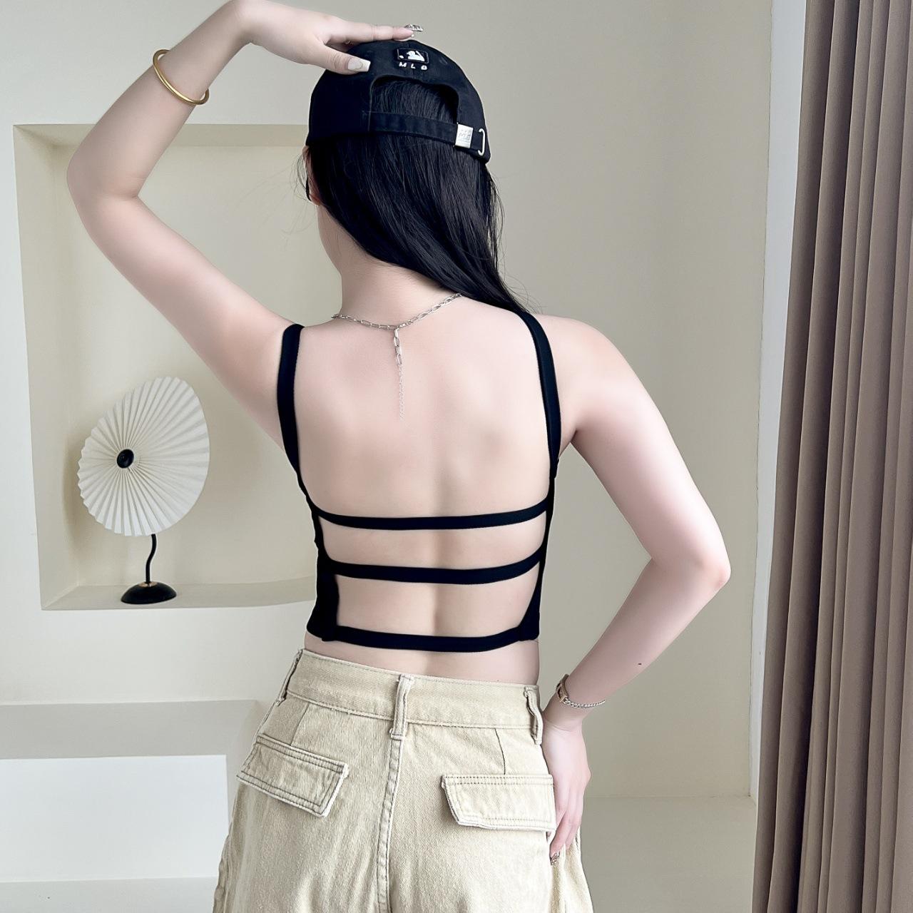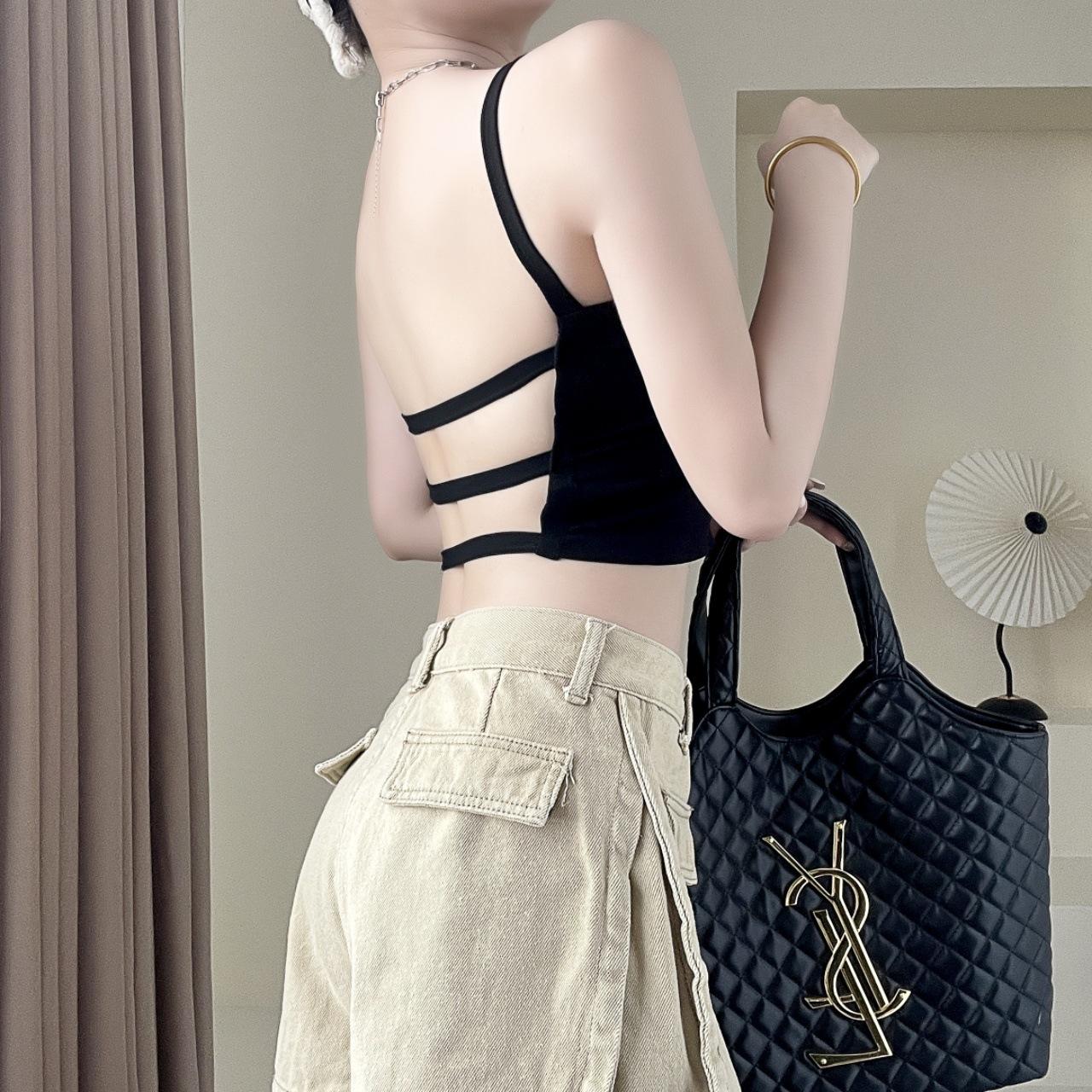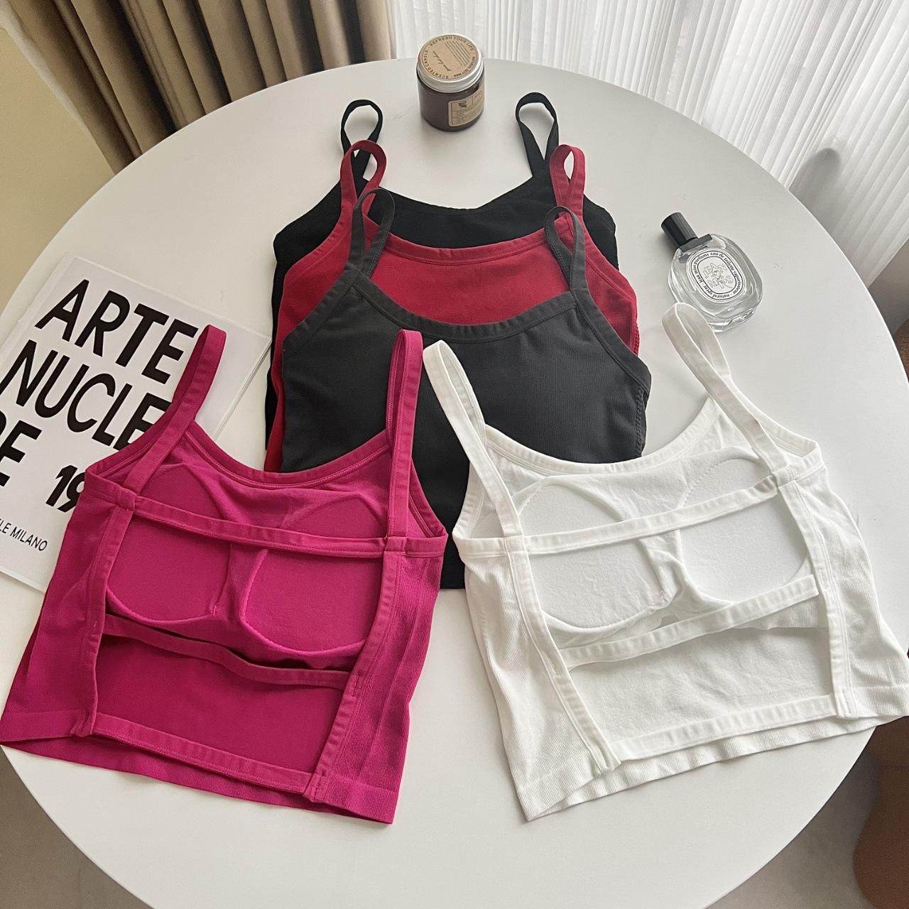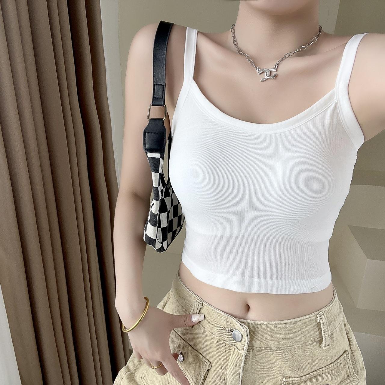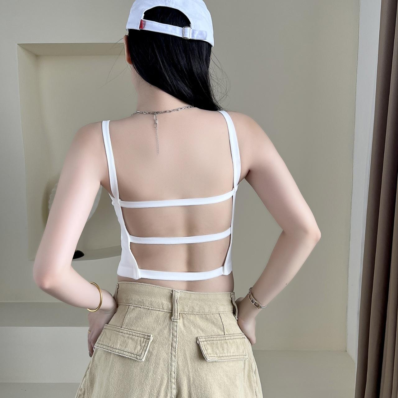 Camisola sexy con espalda descubierta para chica sexy, ropa interior de verano para mujer, corta cruzada con almohadilla en el pecho, top de moda