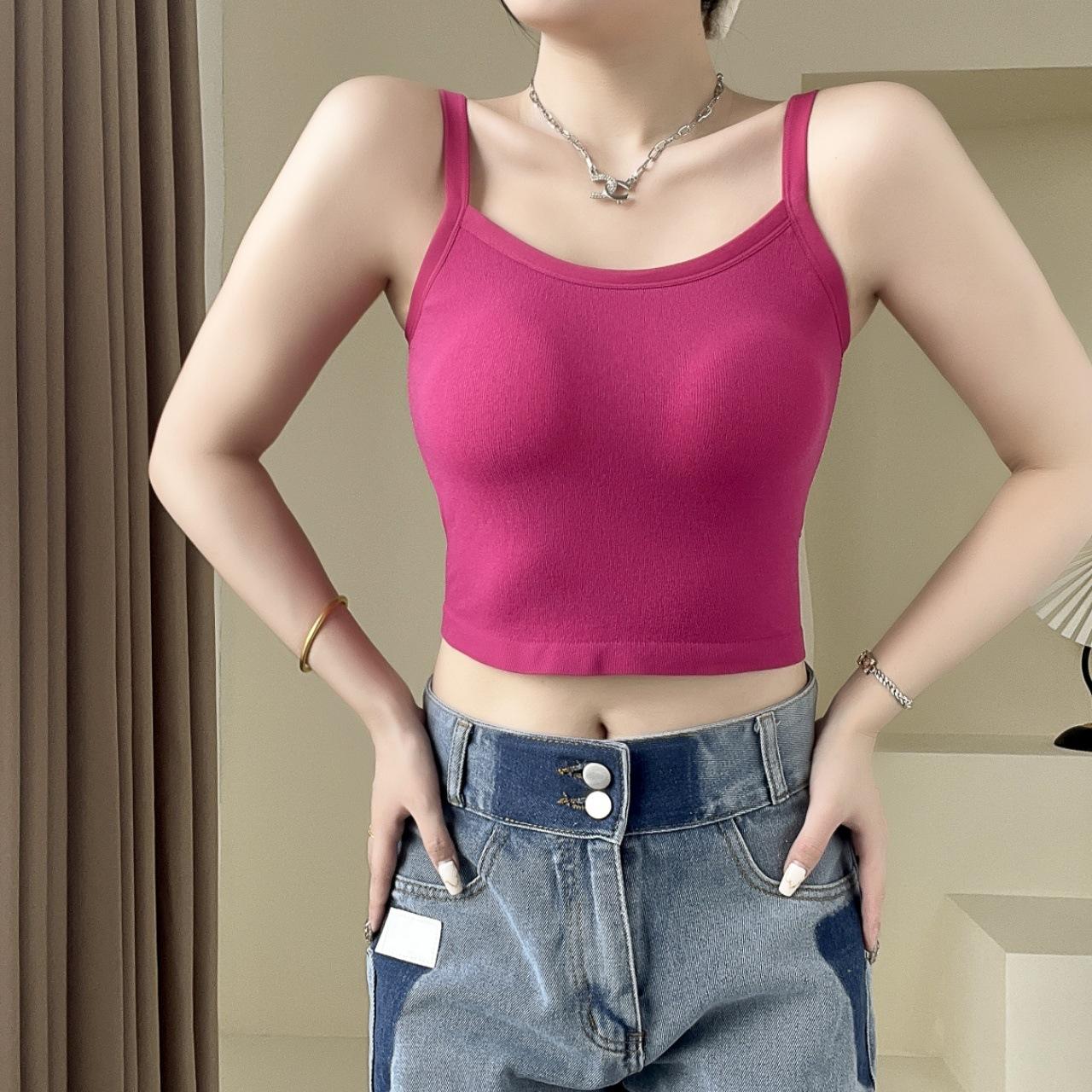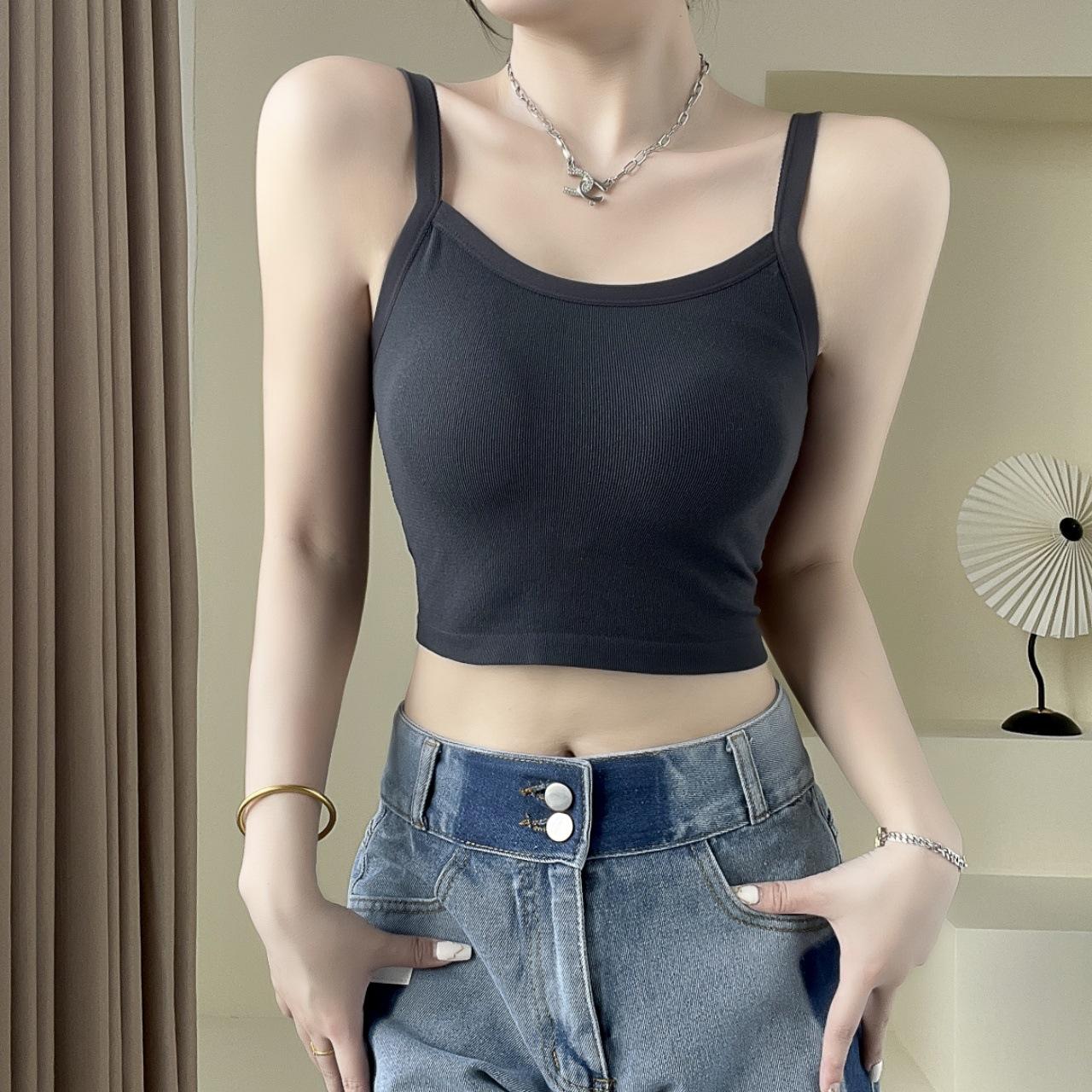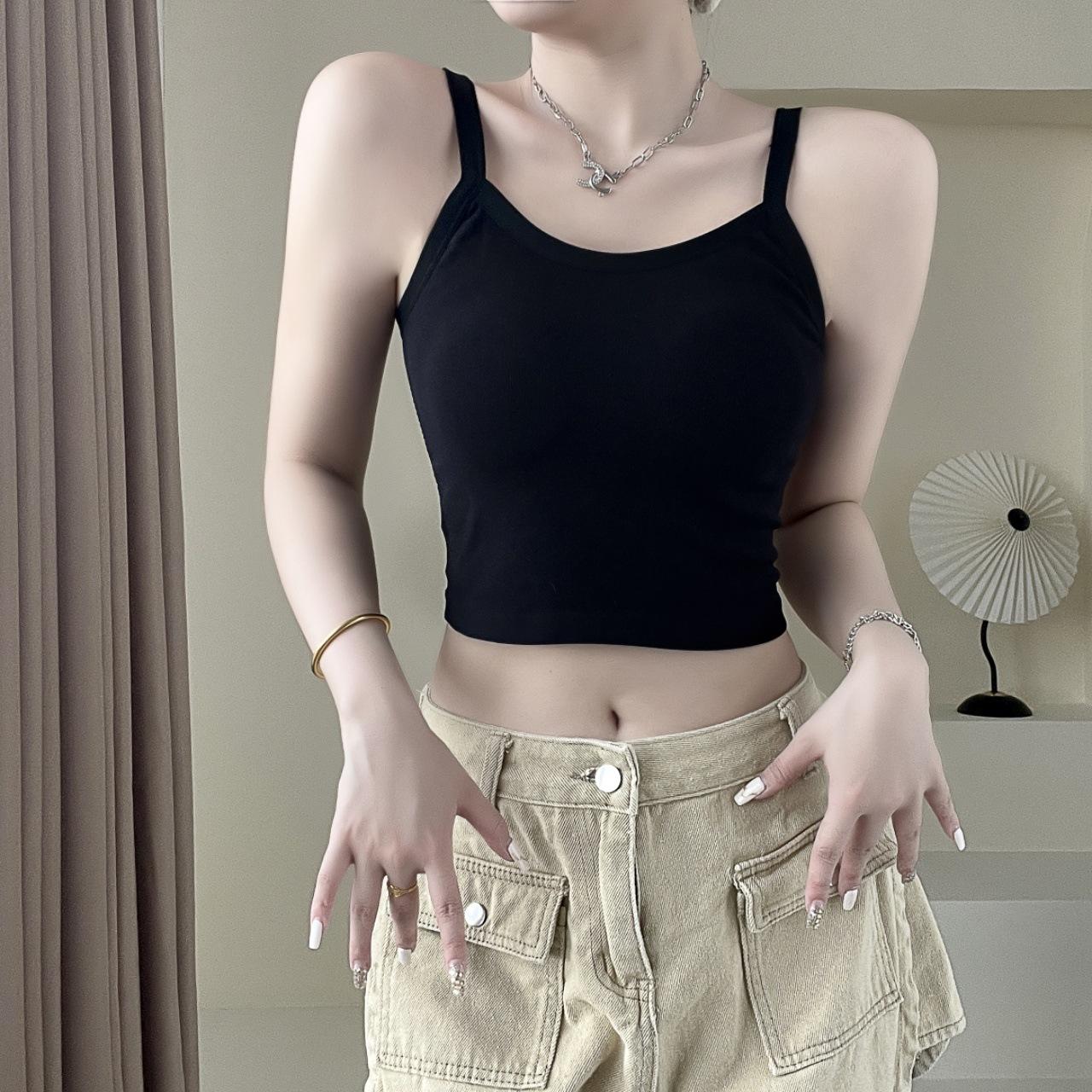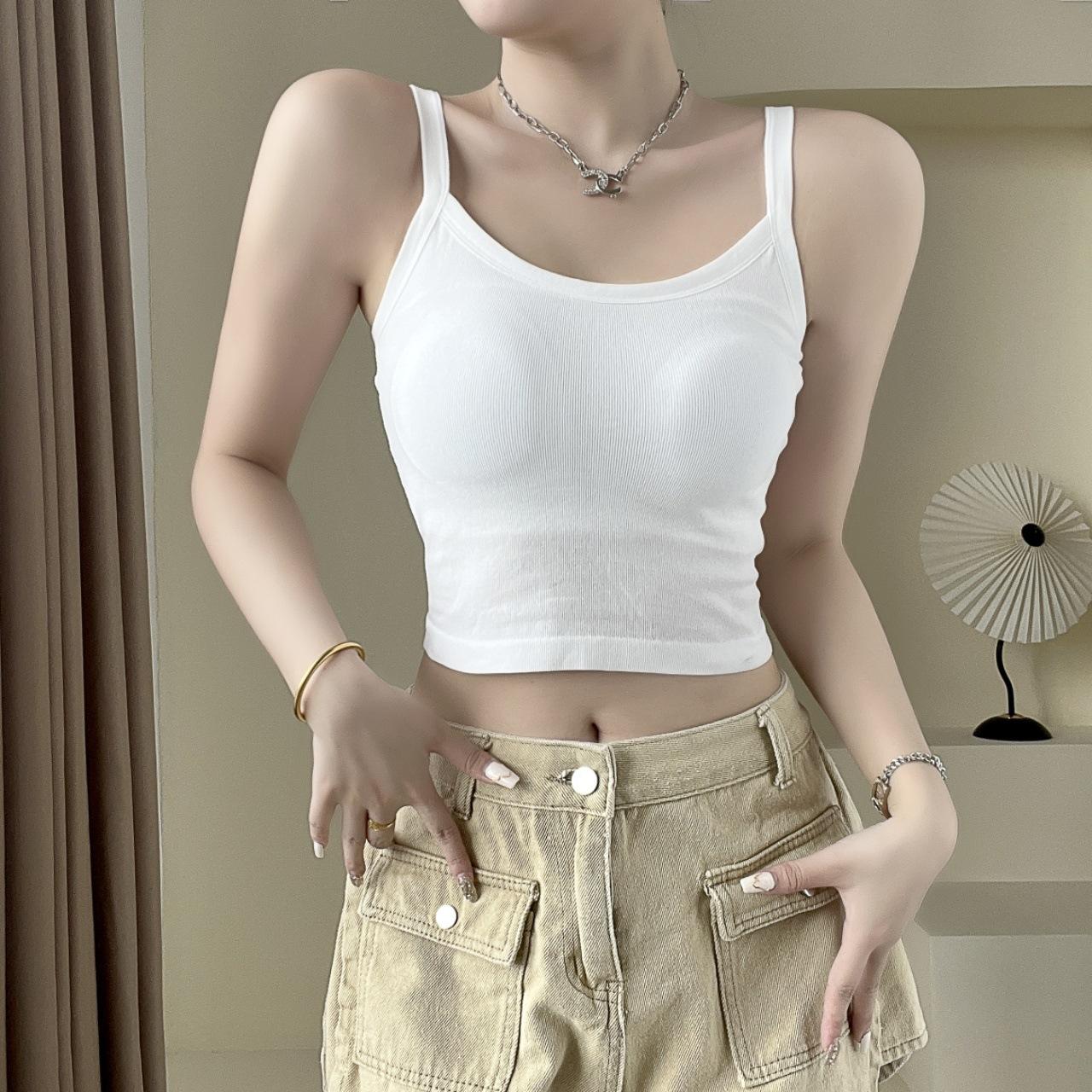Camisola sexy con espalda descubierta para chica sexy, ropa interior de verano para mujer, corta cruzada con almohadilla en el pecho, top de moda