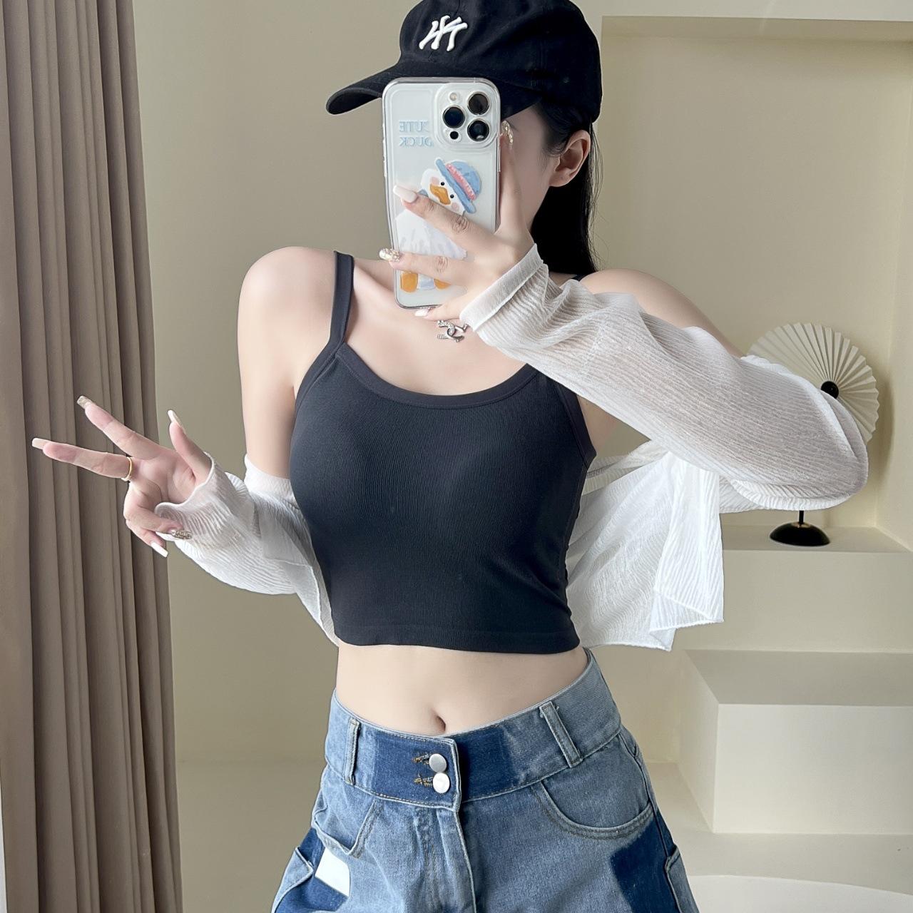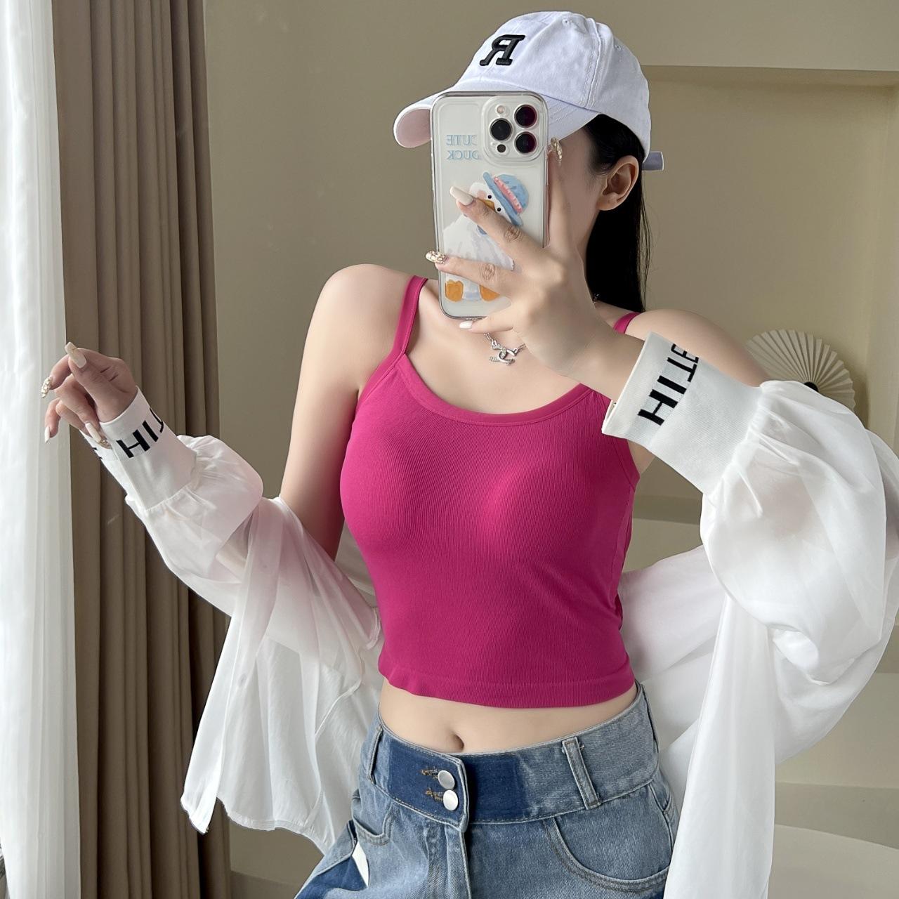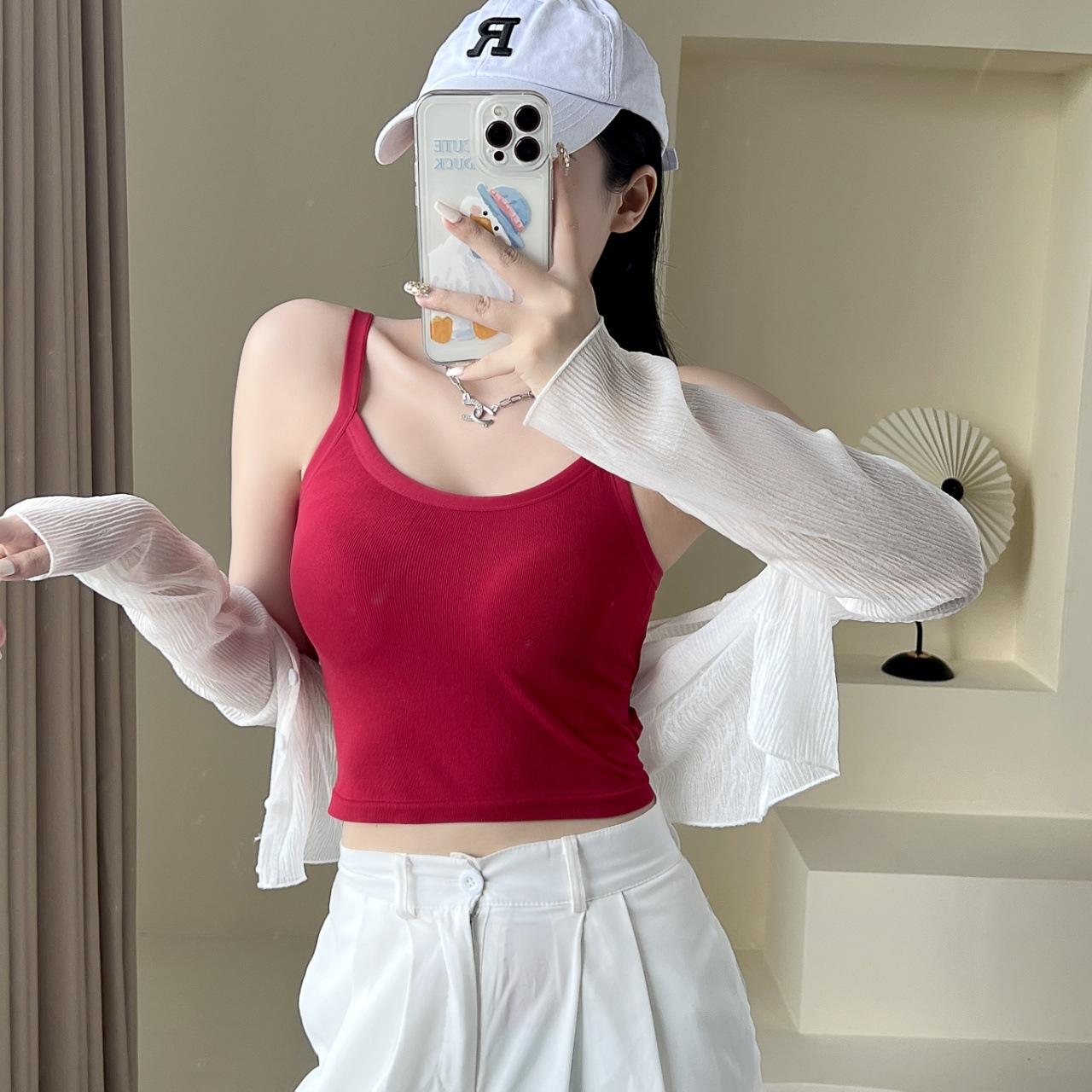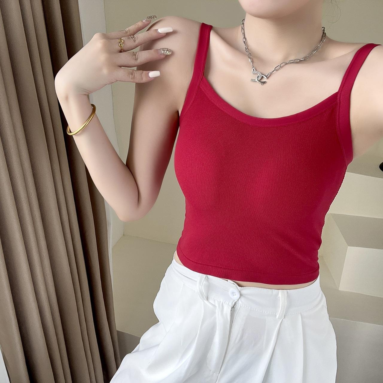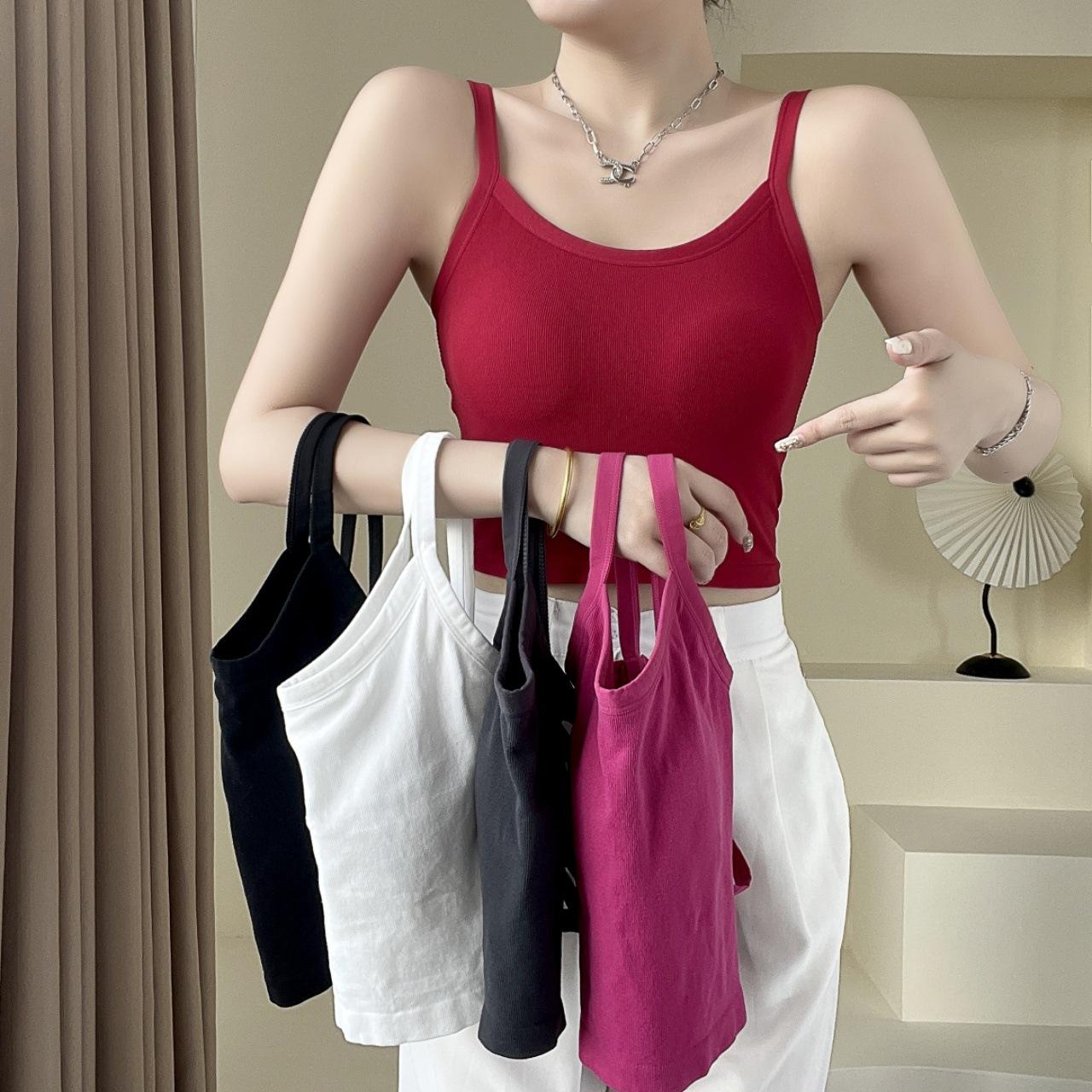 Camisola sexy con espalda descubierta para chica sexy, ropa interior de verano para mujer, corta cruzada con almohadilla en el pecho, top de moda