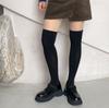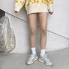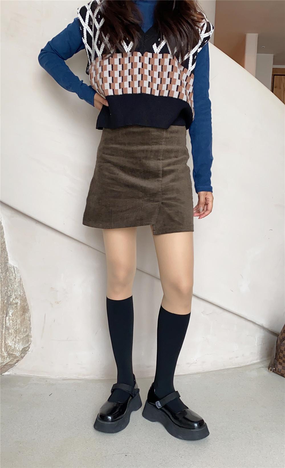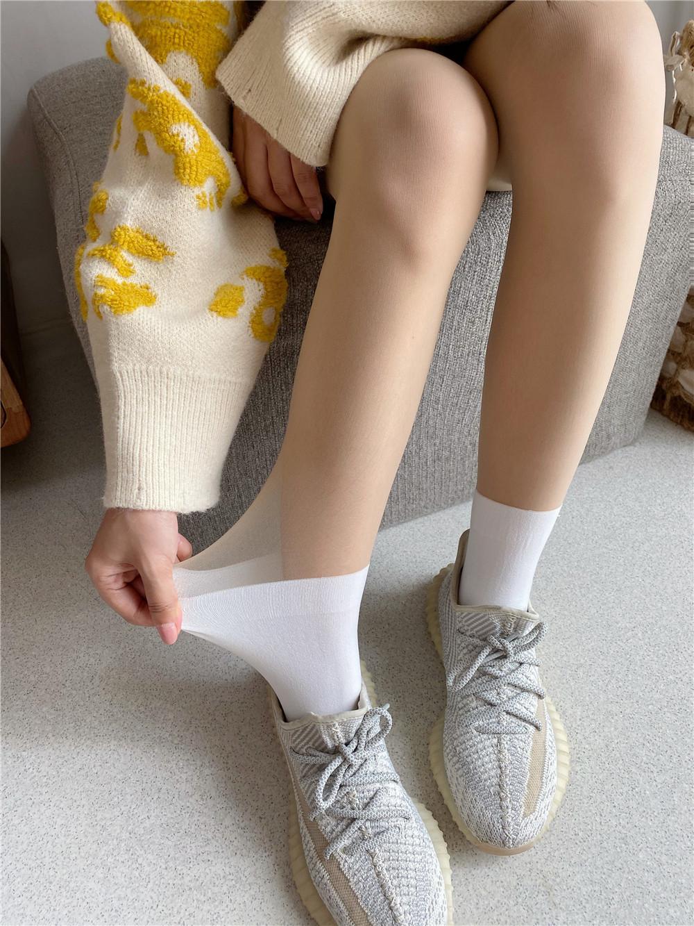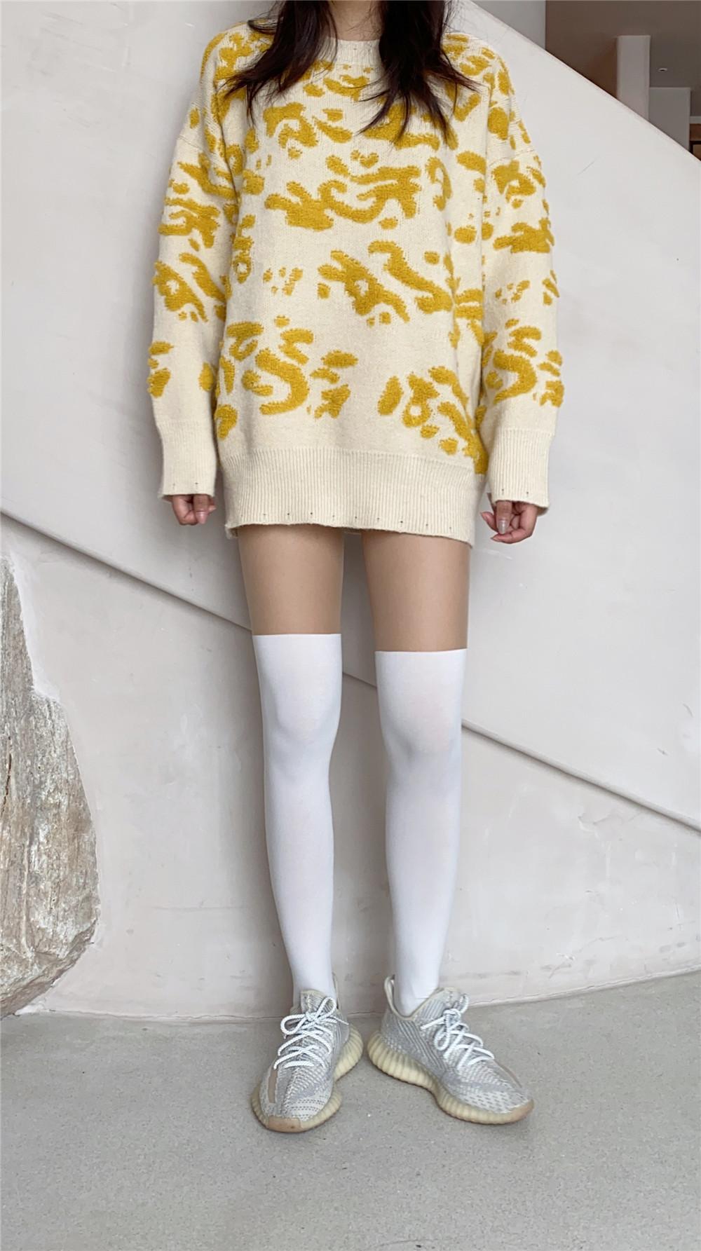 La altura de los calcetines empalmados es de unos 22 cm. Esta nueva altura de otoño-invierno es sorprendentemente versátil y su efecto en las piernas es admirable.