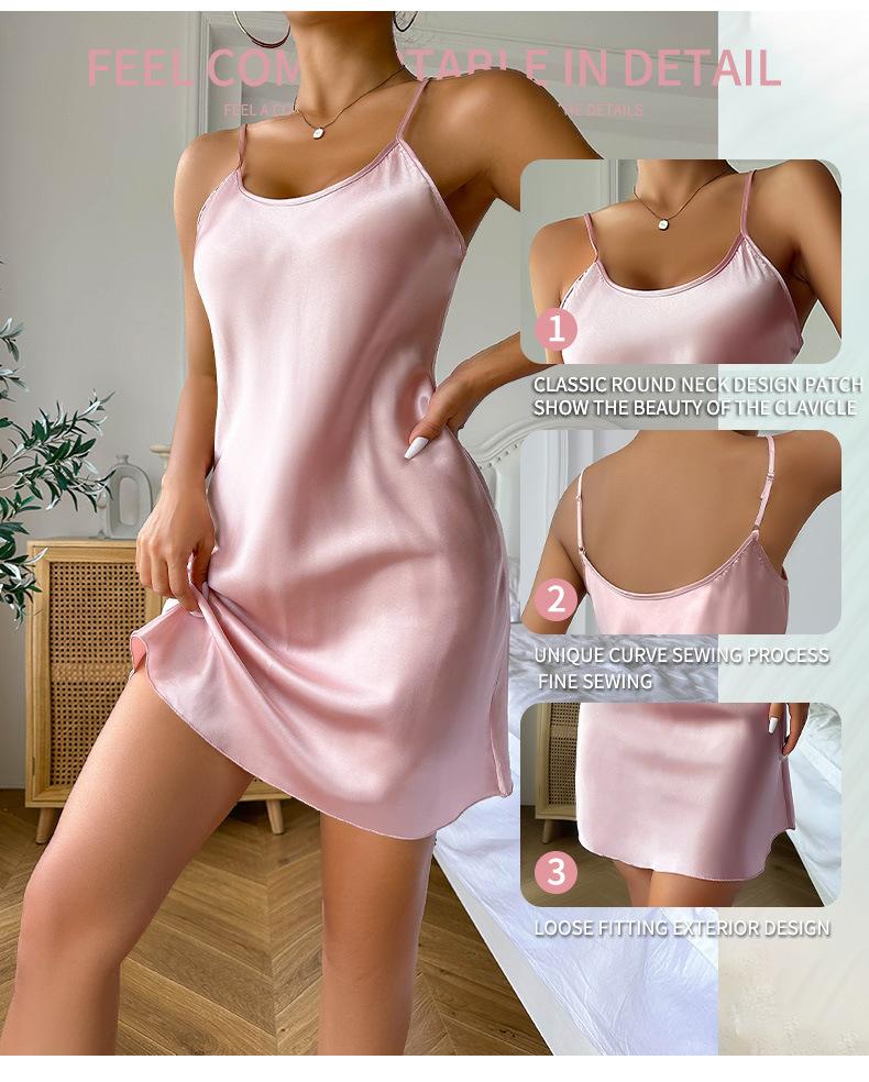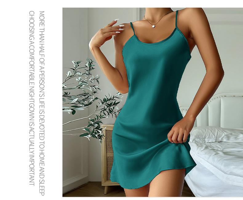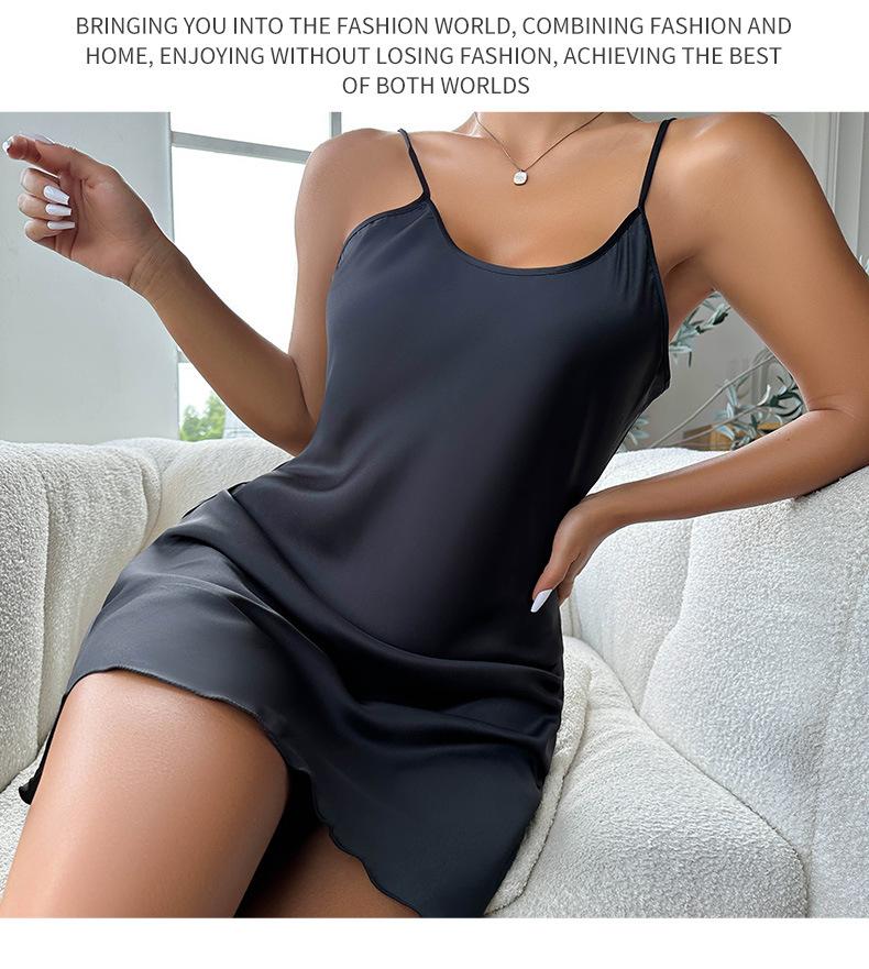 Camisón de seda helada de verano para mujer, sexy, sin espalda, con estampado de leopardo, falda lencero, para usar en casa, fina, transpirable, de color sólido