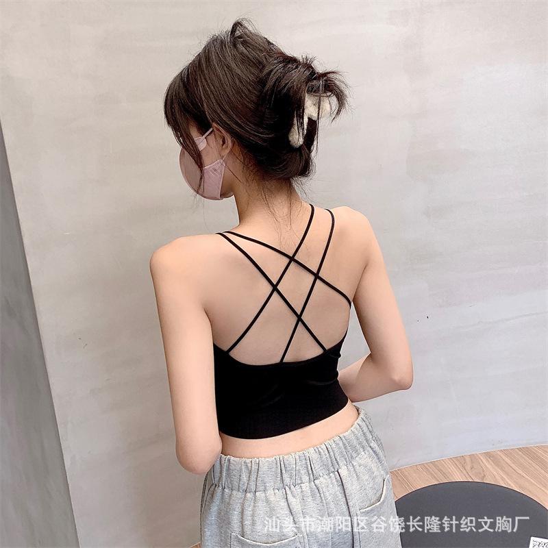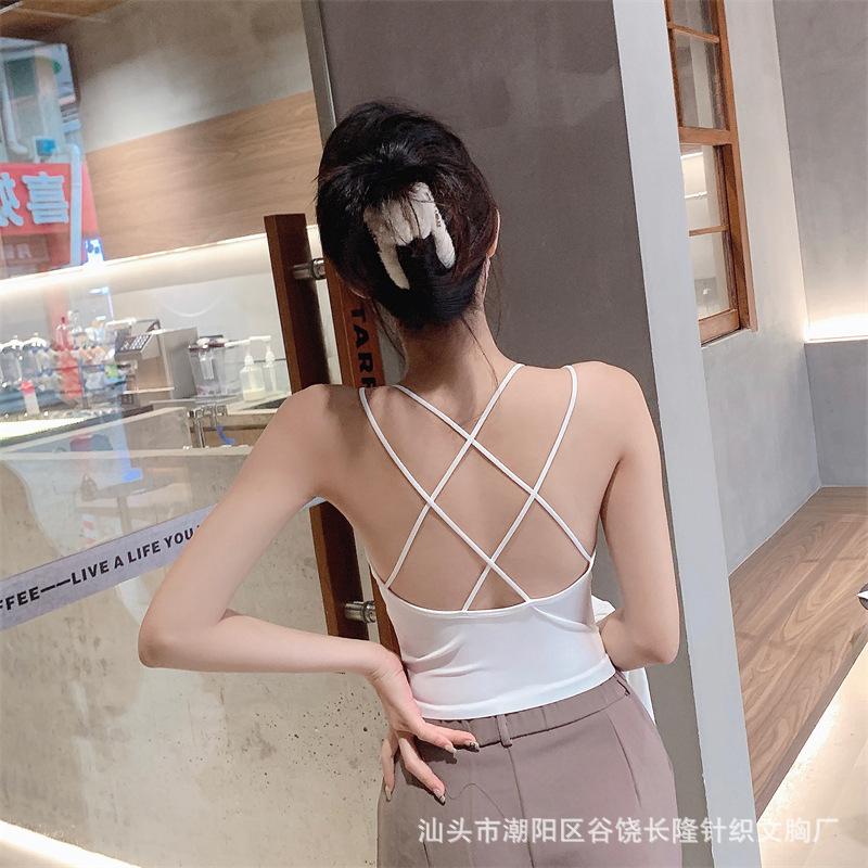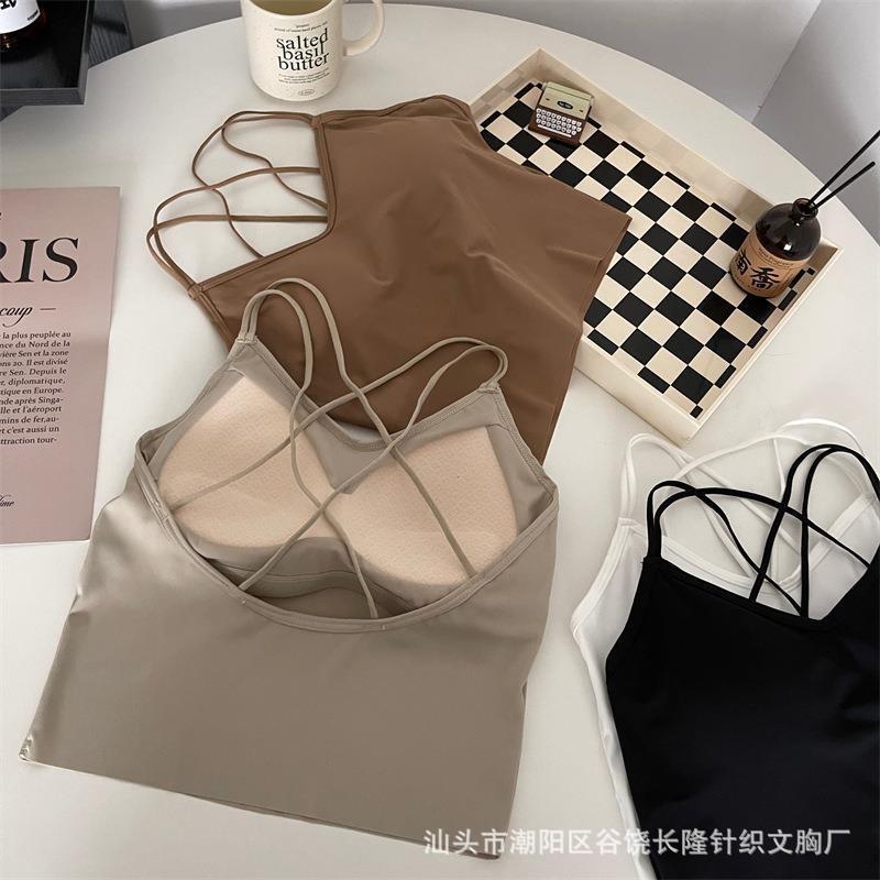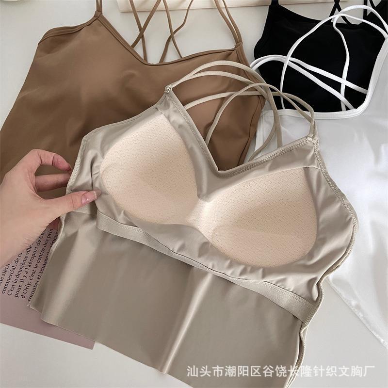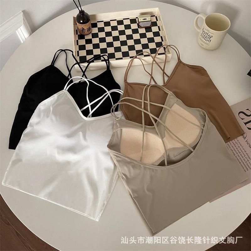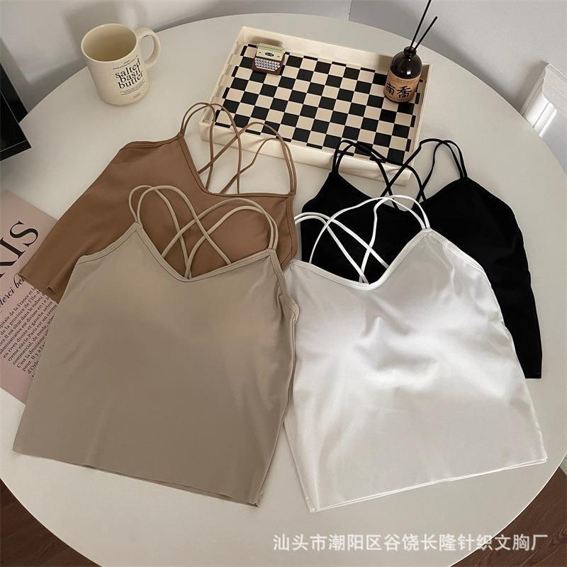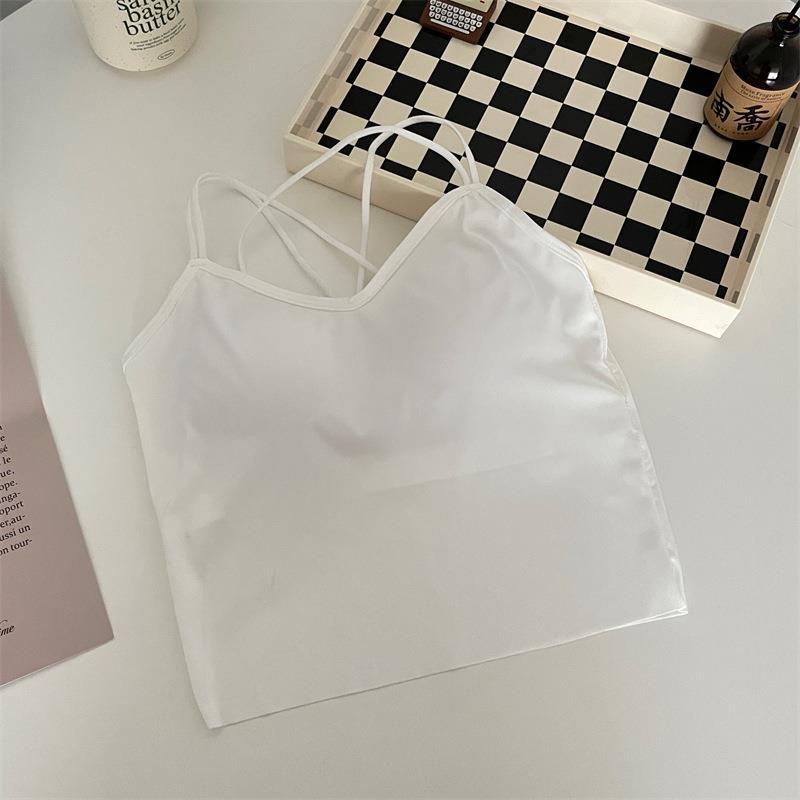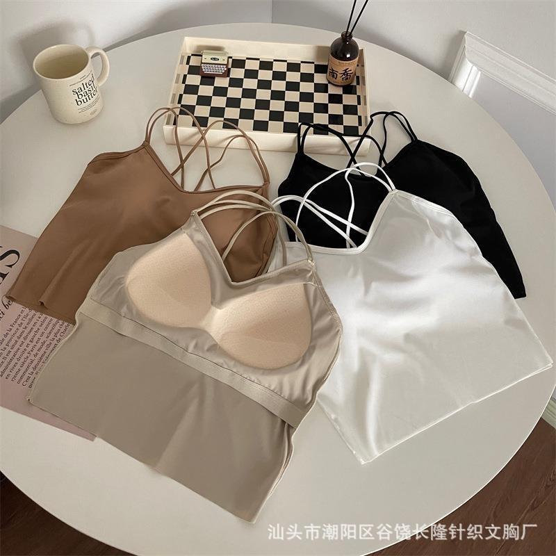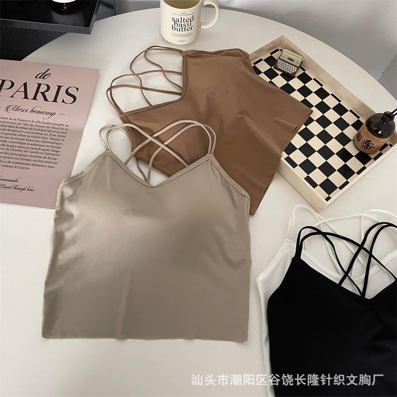 Camisola de verano de látex con posavasos fijo de seda helada con espalda cruzada y diseño sin espalda, ropa exterior interior para mujer