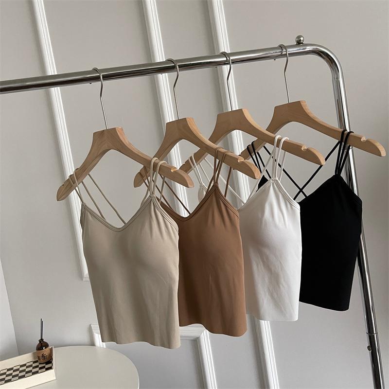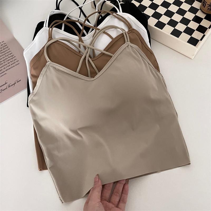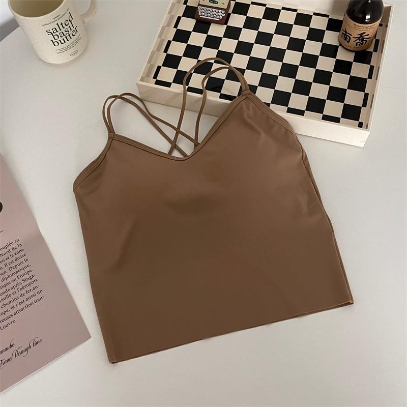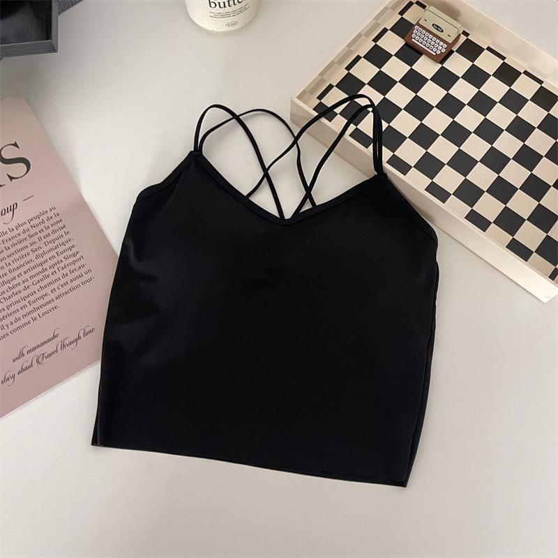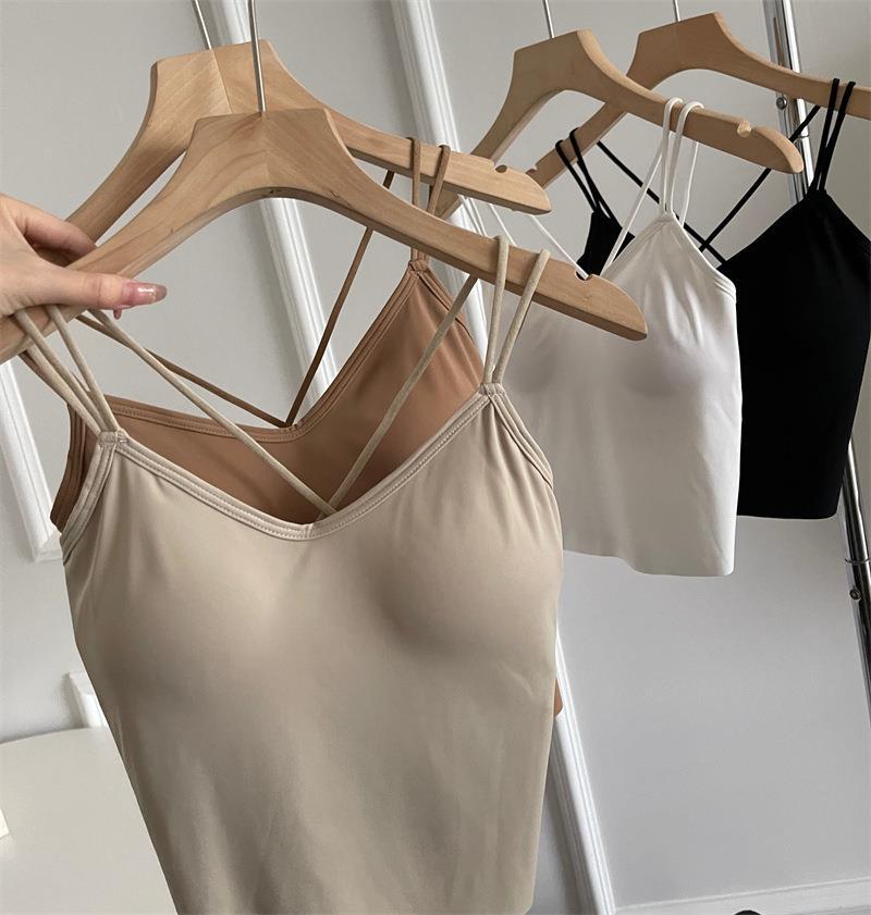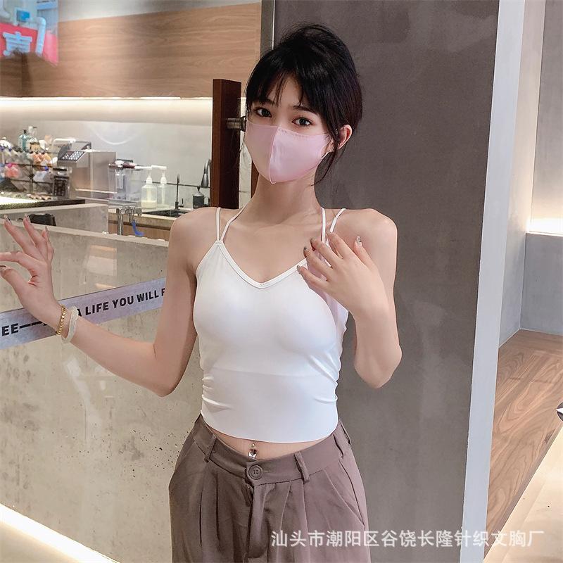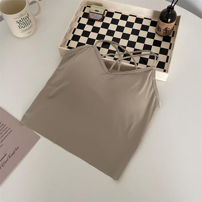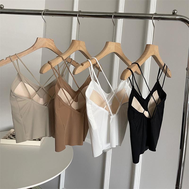 Camisola de verano de látex con posavasos fijo de seda helada con espalda cruzada y diseño sin espalda, ropa exterior interior para mujer