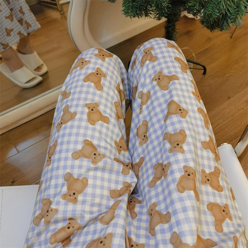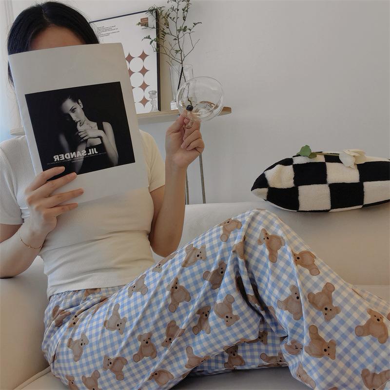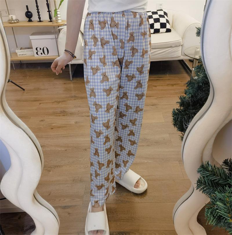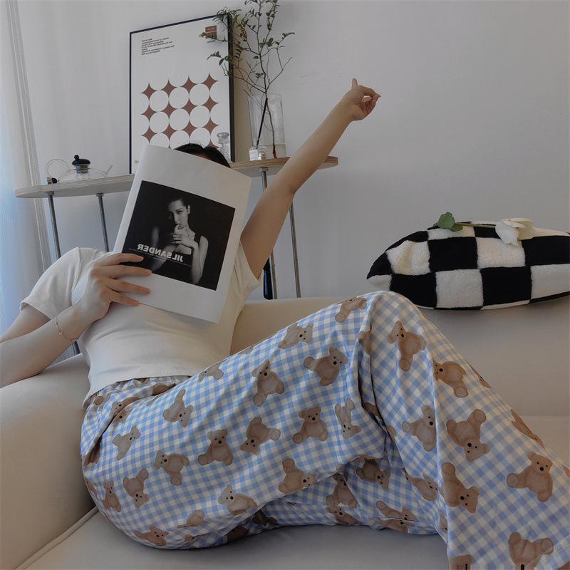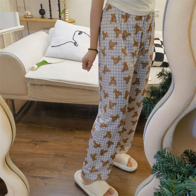 Pantalones para caminar primavera y otoño estilo coreano ins pantalones de pijama de mujer de dibujos animados sueltos casuales de verano en casa pantalones largos casuales se pueden usar al aire libre