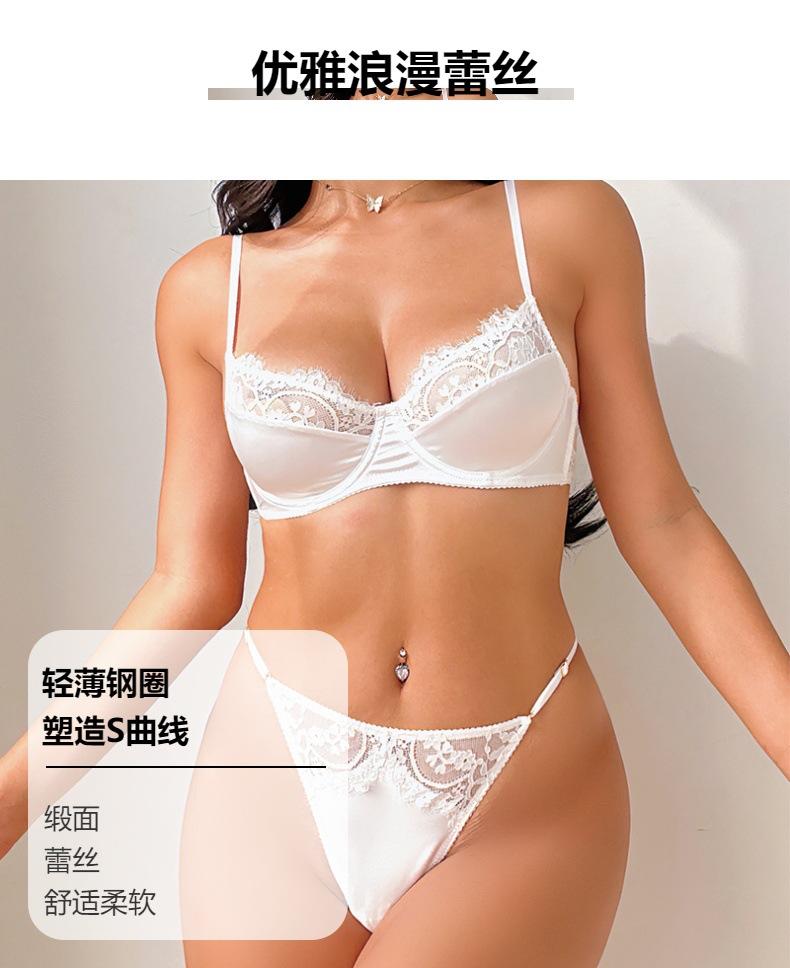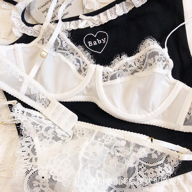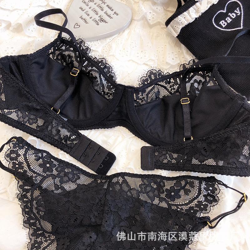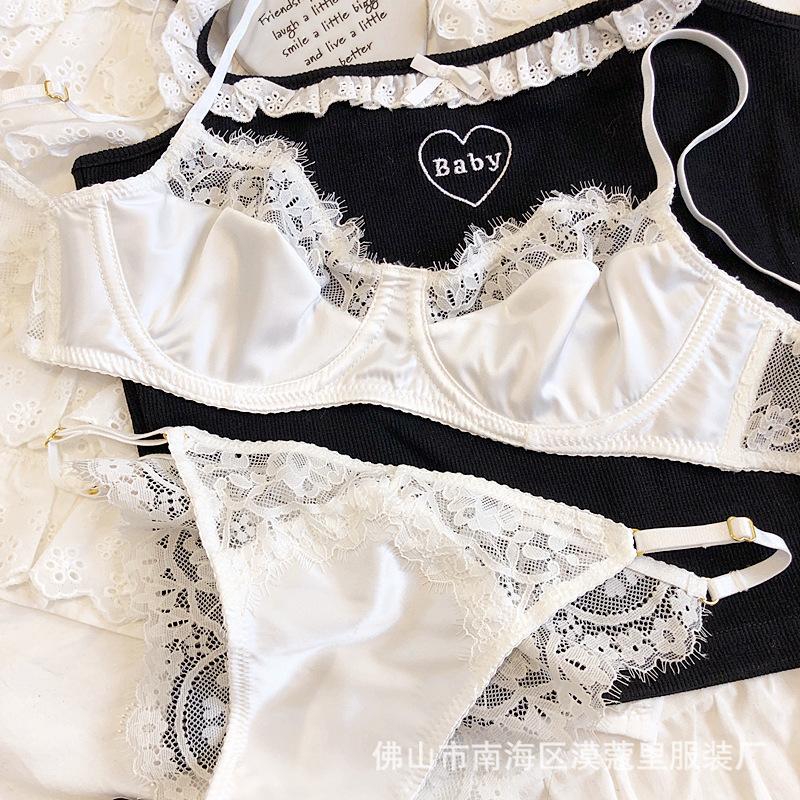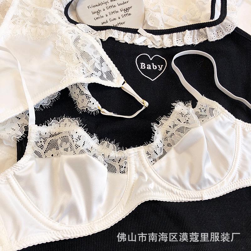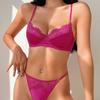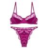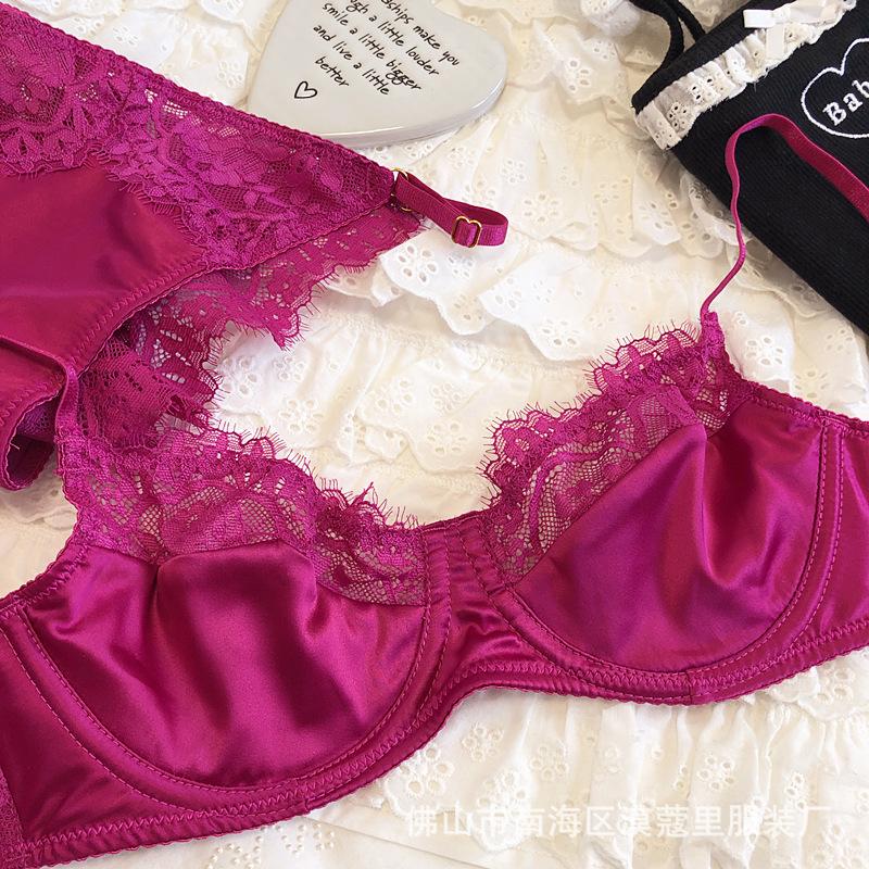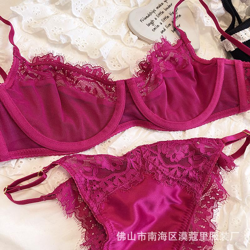 Ropa interior de encaje francés pecho pequeño recogido para mostrar grande encaje con puntadas de satén sexy deseo puro ultradelgado conjunto de brasier rojo