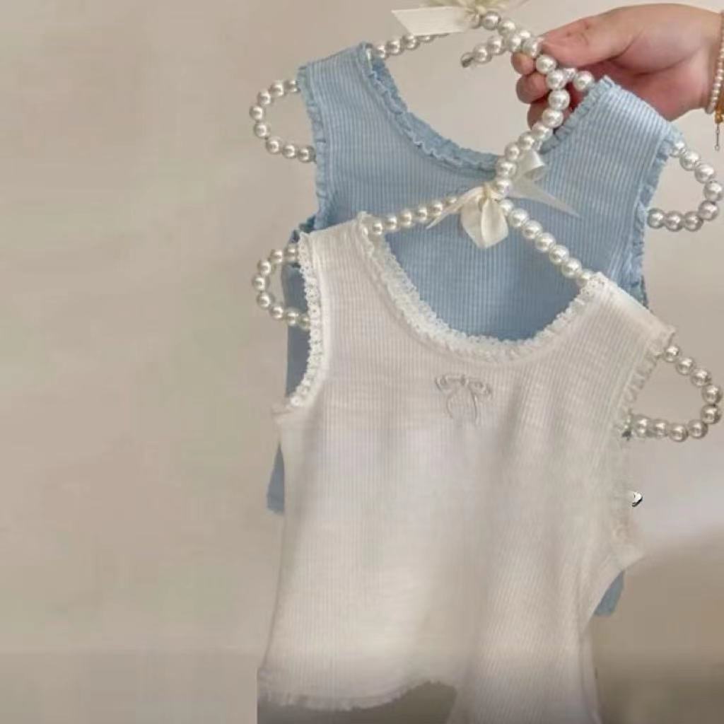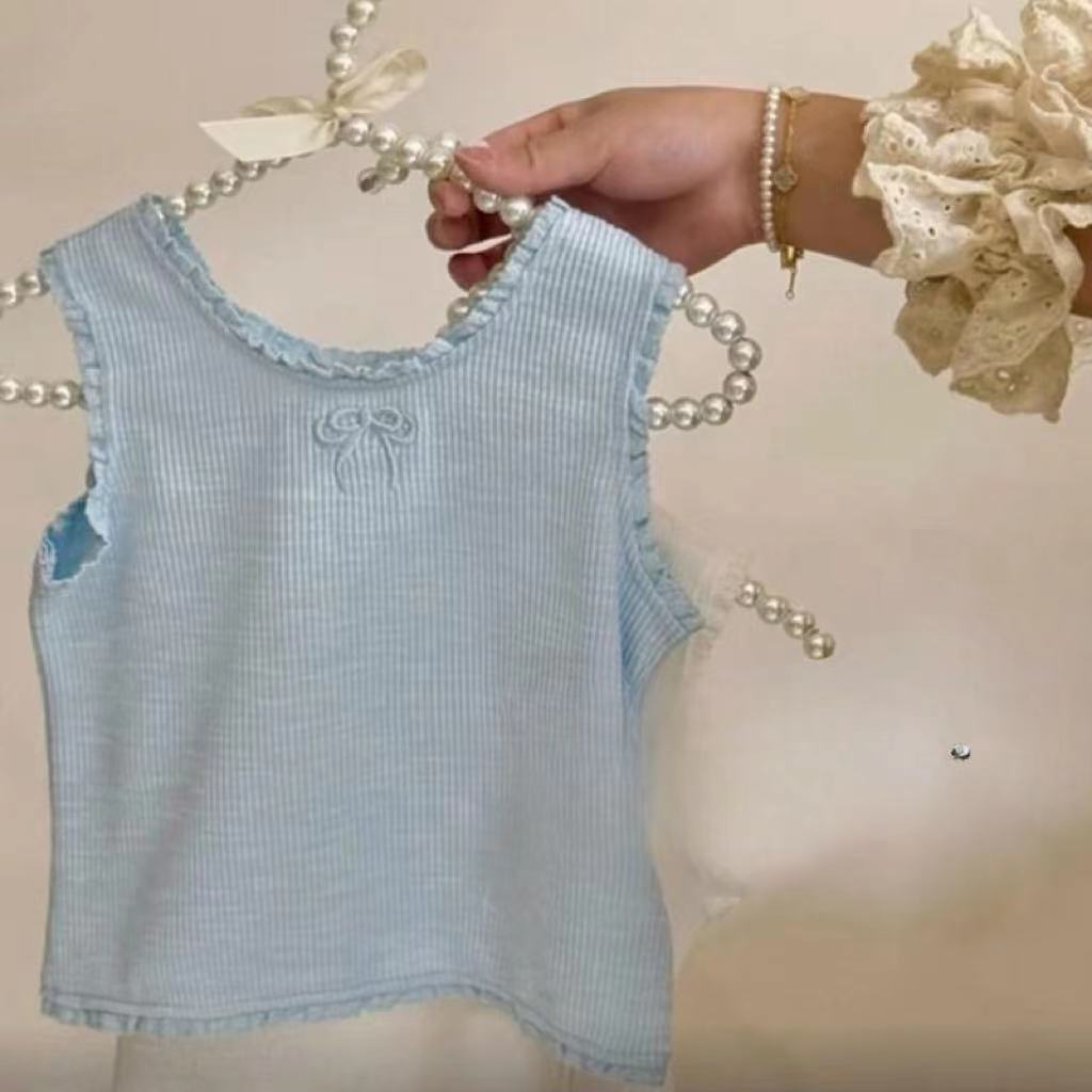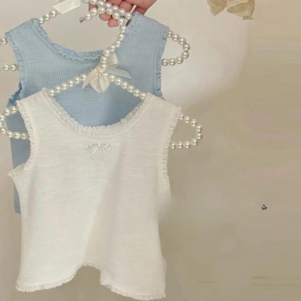 Chaleco de verano para niñas, estilo occidental, para bebés, con personalidad infantil, estilo coreano moderno, top interior de encaje con lazo dulce
