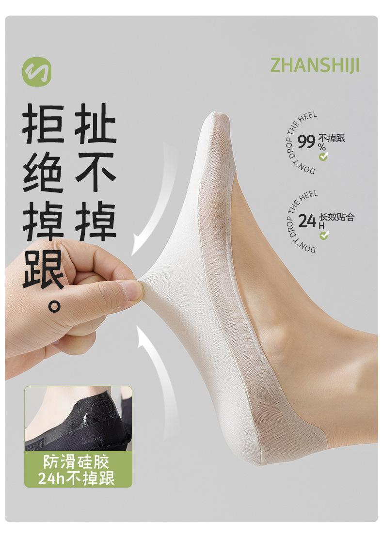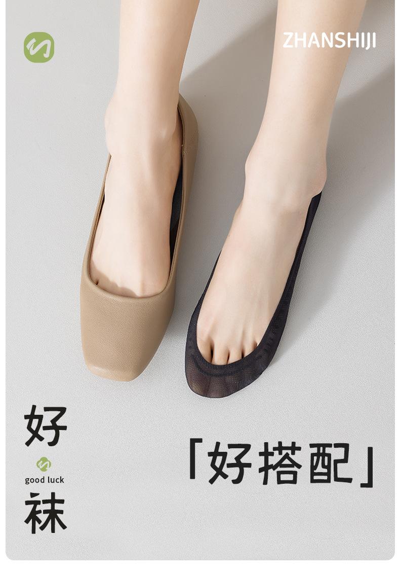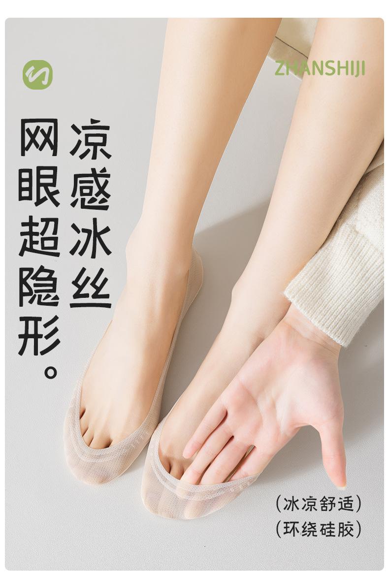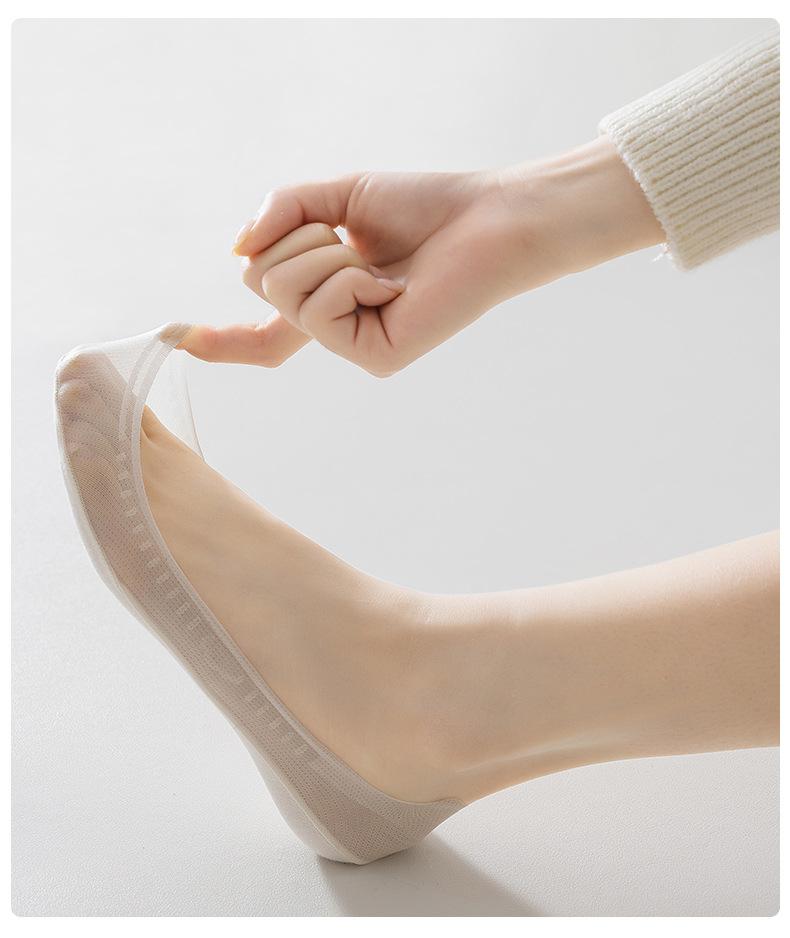 Calcetines de Malla de Seda de Hielo Calcetines de Barco para Mujer Verano Finos Fondo de Algodón Puro Boca Baja Silicona Antideslizante No se Caen Calcetines Invisibles de Verano