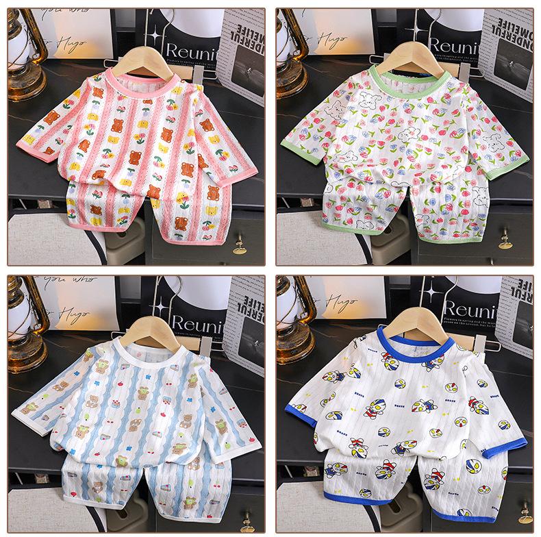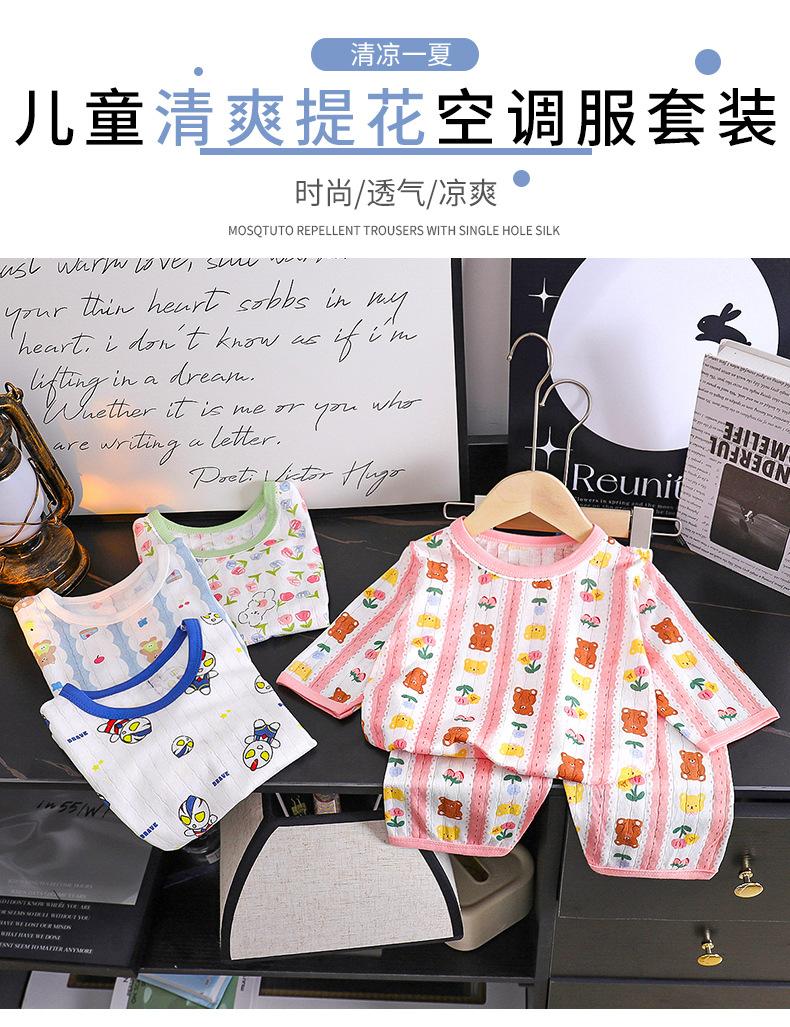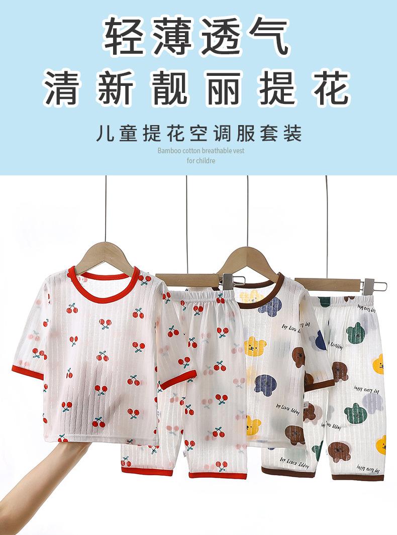 Conjunto de Pijama para Niños Algodón Puro Verano Nuevo Ropa para Niños Ropa para el Hogar para Niñas Ropa Fina para Aire Acondicionado Ropa para Niños al Por Mayor