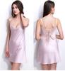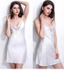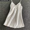 Pijama de seda con tirantes para mujer al por mayor de fábrica, camisón sexy con escote en V profundo, pijama de color sólido con pestañas, ropa de casa europea y americana